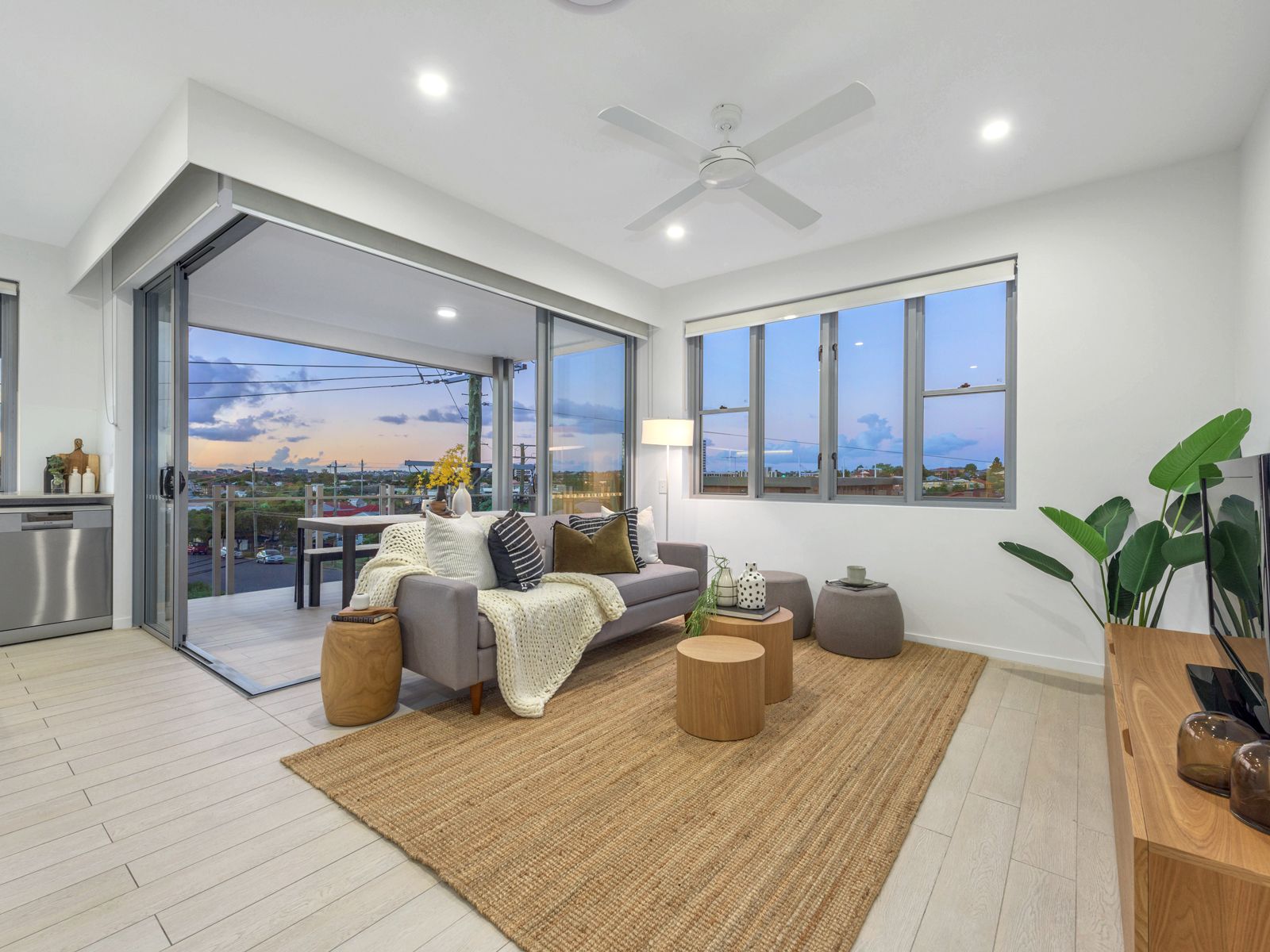 This immaculate top floor 2 bedroom, 2 bathroom apartment has a large open plan living area opening out to a balcony with stunning City views. Sonata is a highly sought after apartment complex in a great position in Coorparoo. The apartments are nearly 3 years old and have lovely contemporary interiors with limewashed floorboards in the living/dining/kitchen zones and neutral carpeted bedrooms.