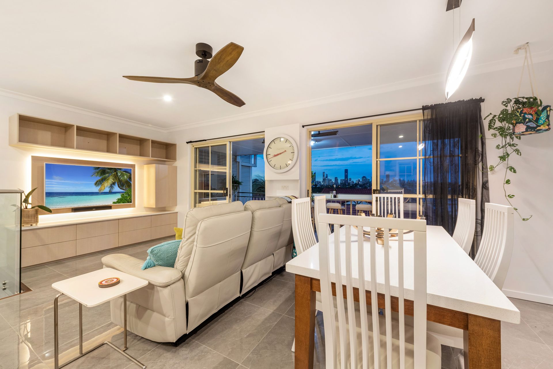 Set in an elevated position at the rear of a boutique complex, this modern home boasts an open-plan living area on the top level and orientated to capture the breezes and panoramic views of the city.
