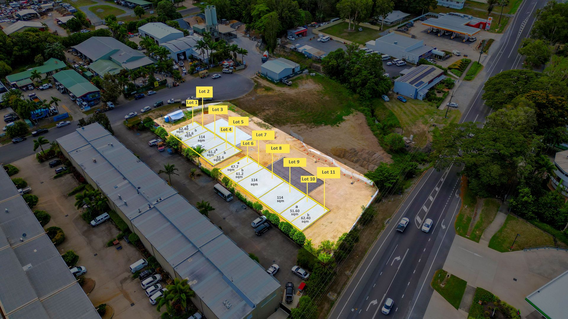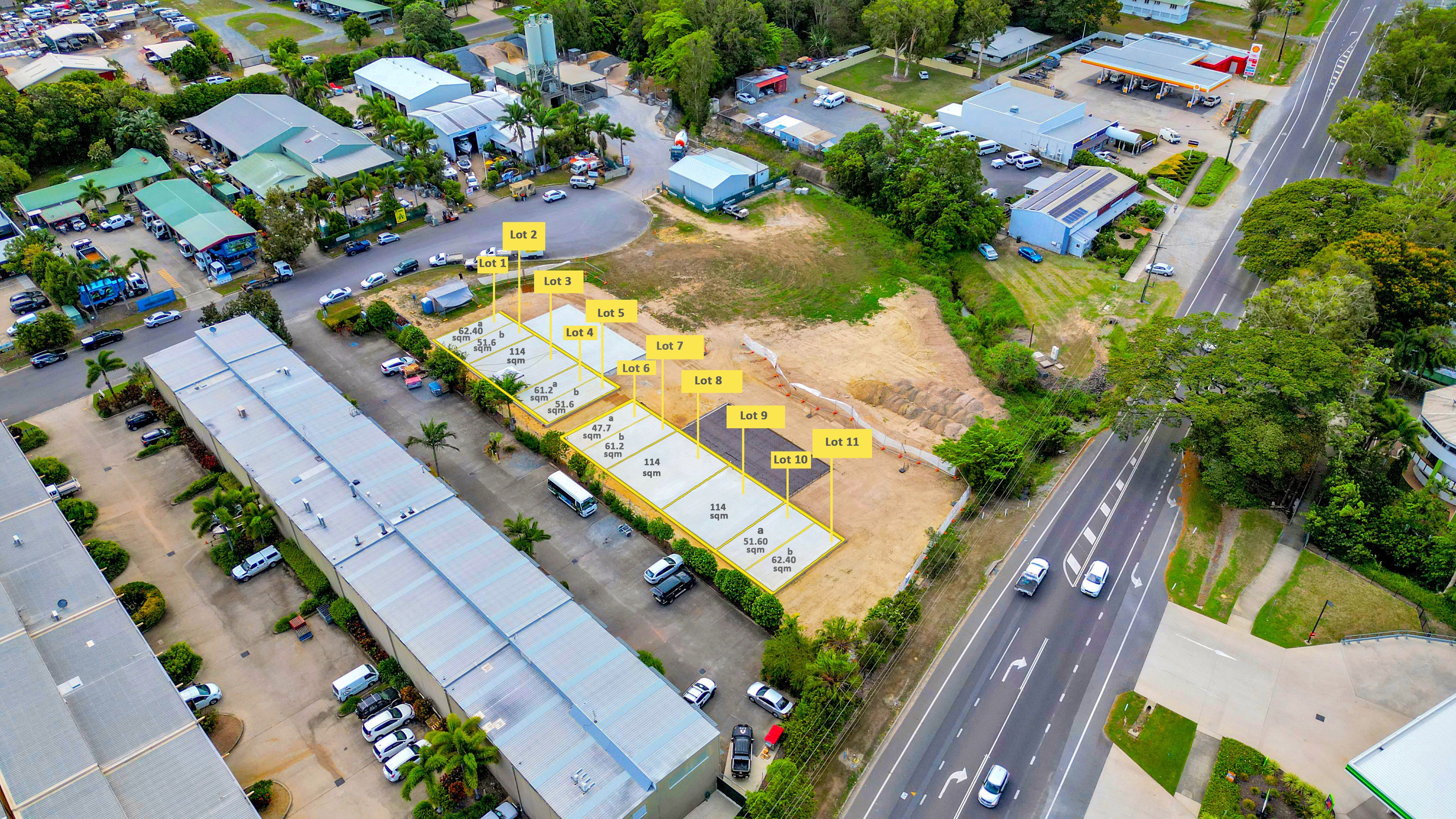 Price List: Lot 1: 67.1sqm - $295,240+gst - includes private holding yard (sqm to be confirmed) Lot 2: 46.9sqm - $154,770+gst Lot 3: 114sqm - $285,000+gst Lot 4: 67.1sqm - $221,430+gst Lot 5: 46.9sqm - $154,770+gst Lot 6: UNDER OFFER Lot 7: 64.9sqm - $214,170+gst Lot 8: 114sqm - $285,000+gst Lot 9: 114sqm - $285,000+gst Lot 10: 49.1sqm - $162,030+gst Lot 11: 64.9sqm - $324,500+gst - includes private holding yard (sqm to be confirmed)