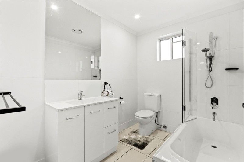 The main bathroom is fresh, functional, and family-friendly. It features a built-in bathtub, detachable showerhead, stylish tiled finishes, and contemporary lighting that adds both practicality and a touch of elegance - perfect for busy weekday mornings or relaxing evening routines.