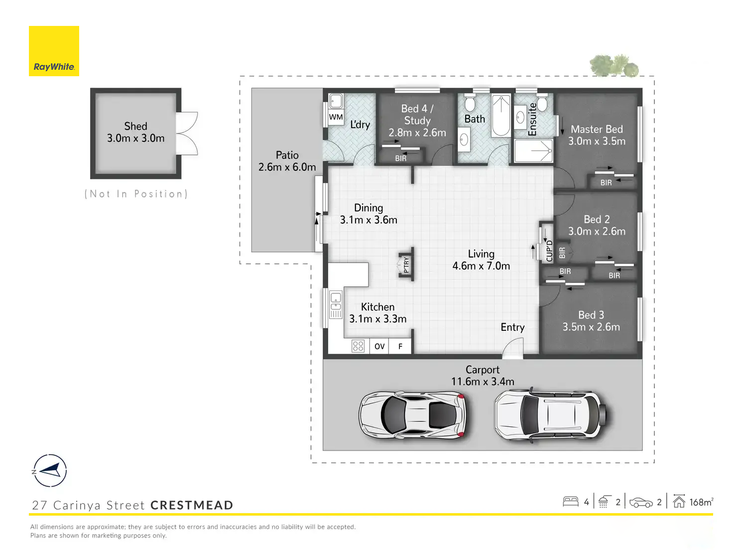 Practical features complete the package, including a double carport at the front, side access for trailers or additional vehicles, and a garden shed for all your storage needs. Plus, with a 6kW solar power system already installed, you'll enjoy long-term savings on energy bills while reducing your environmental footprint.