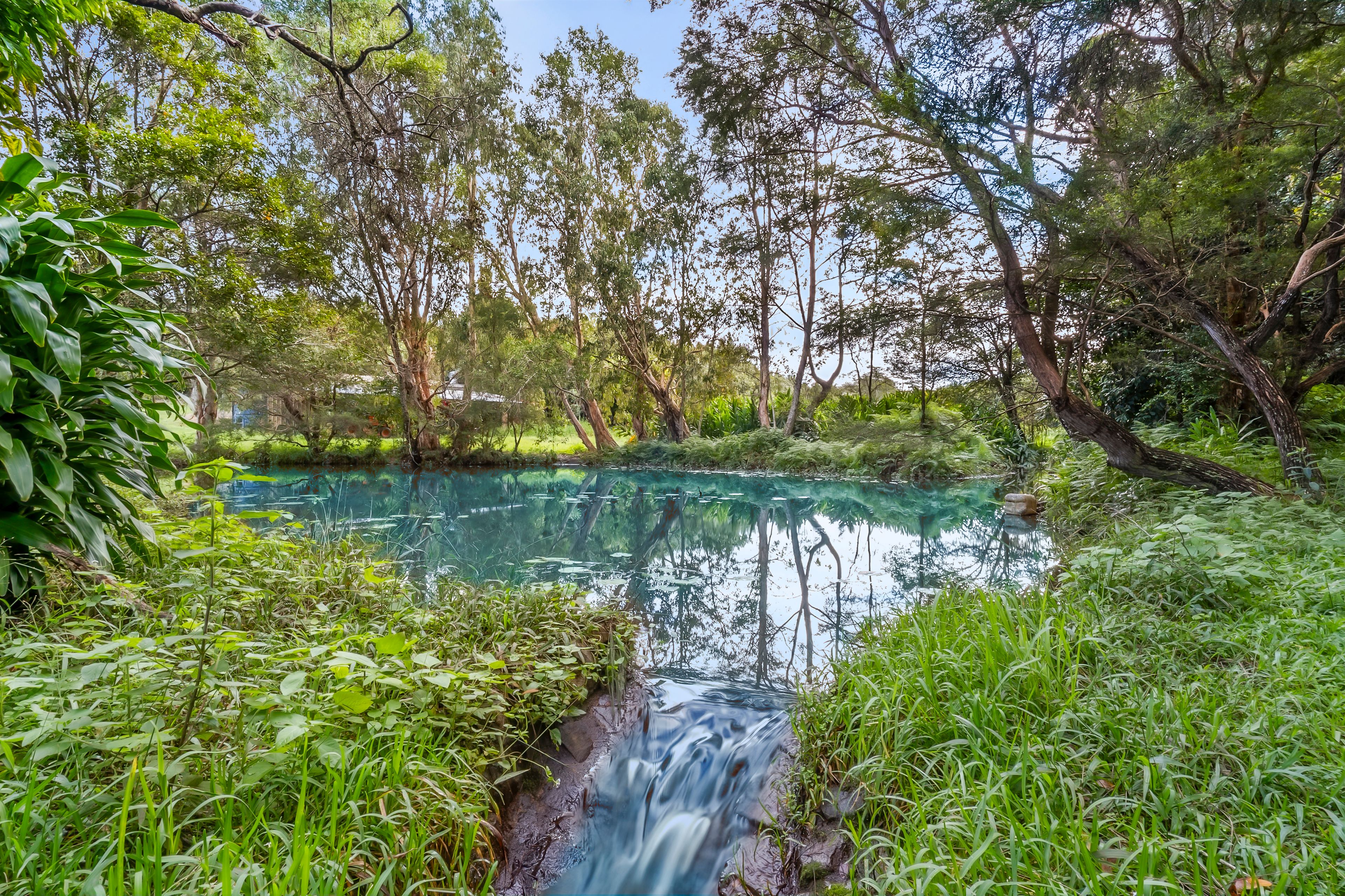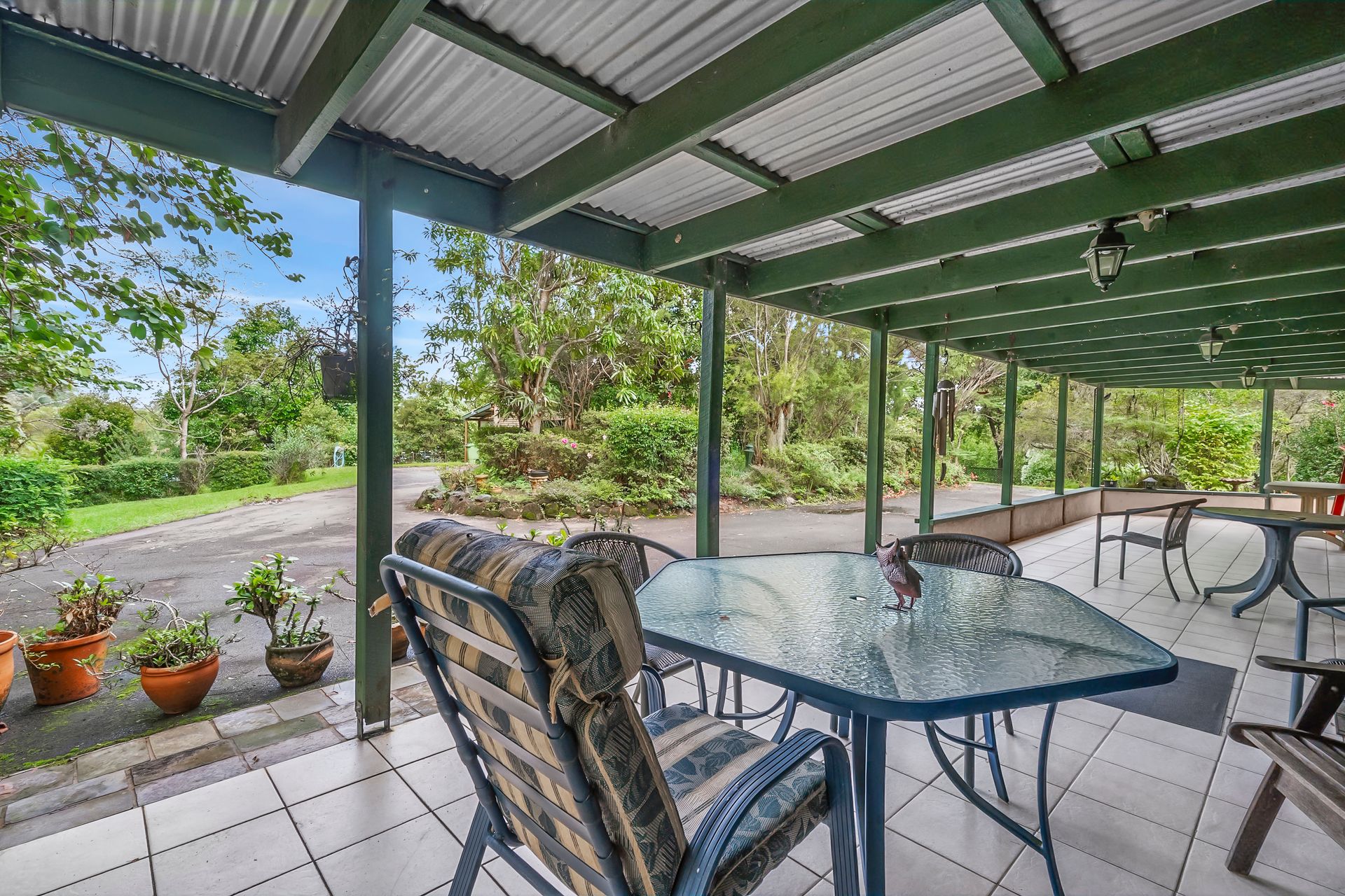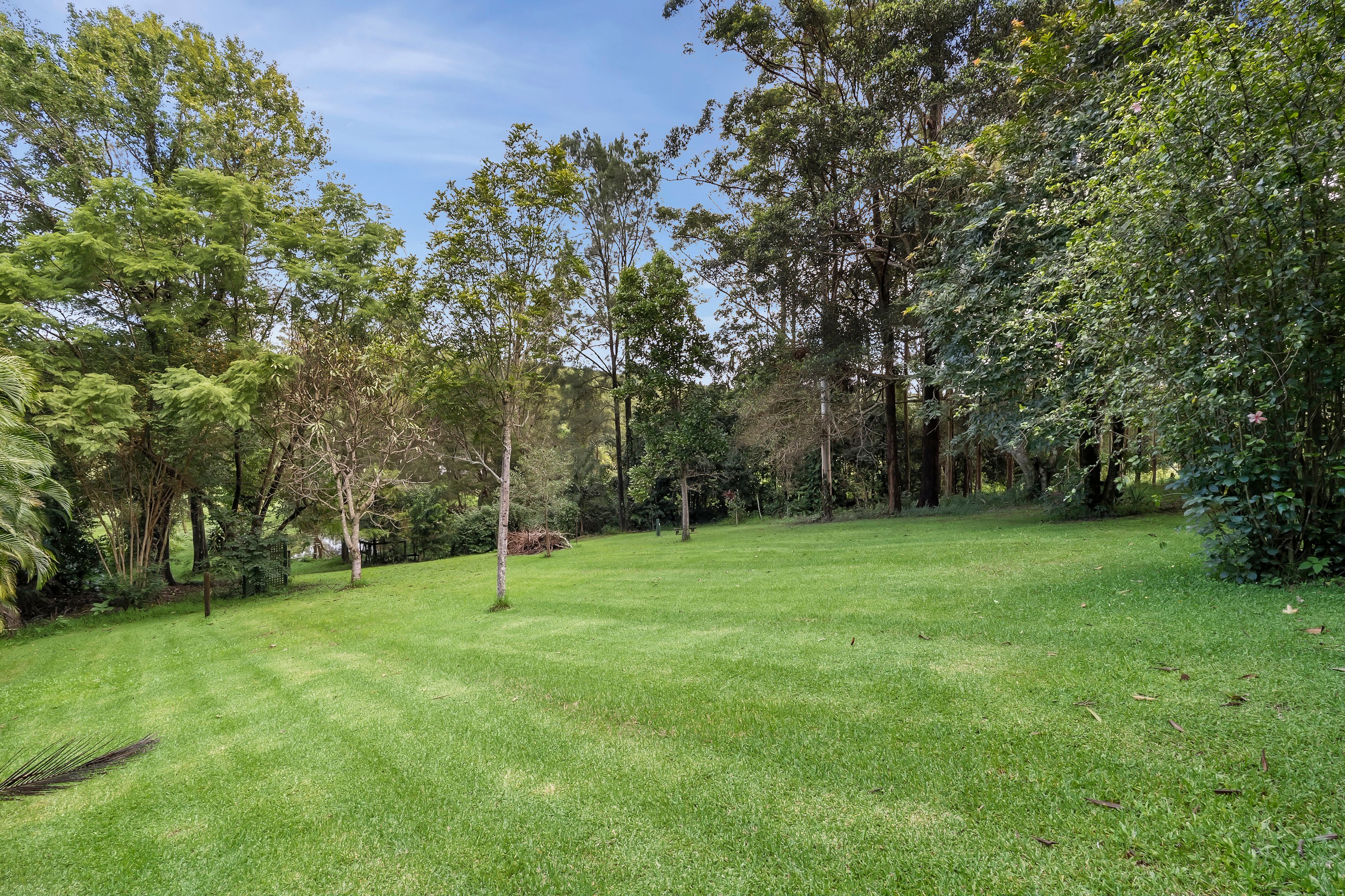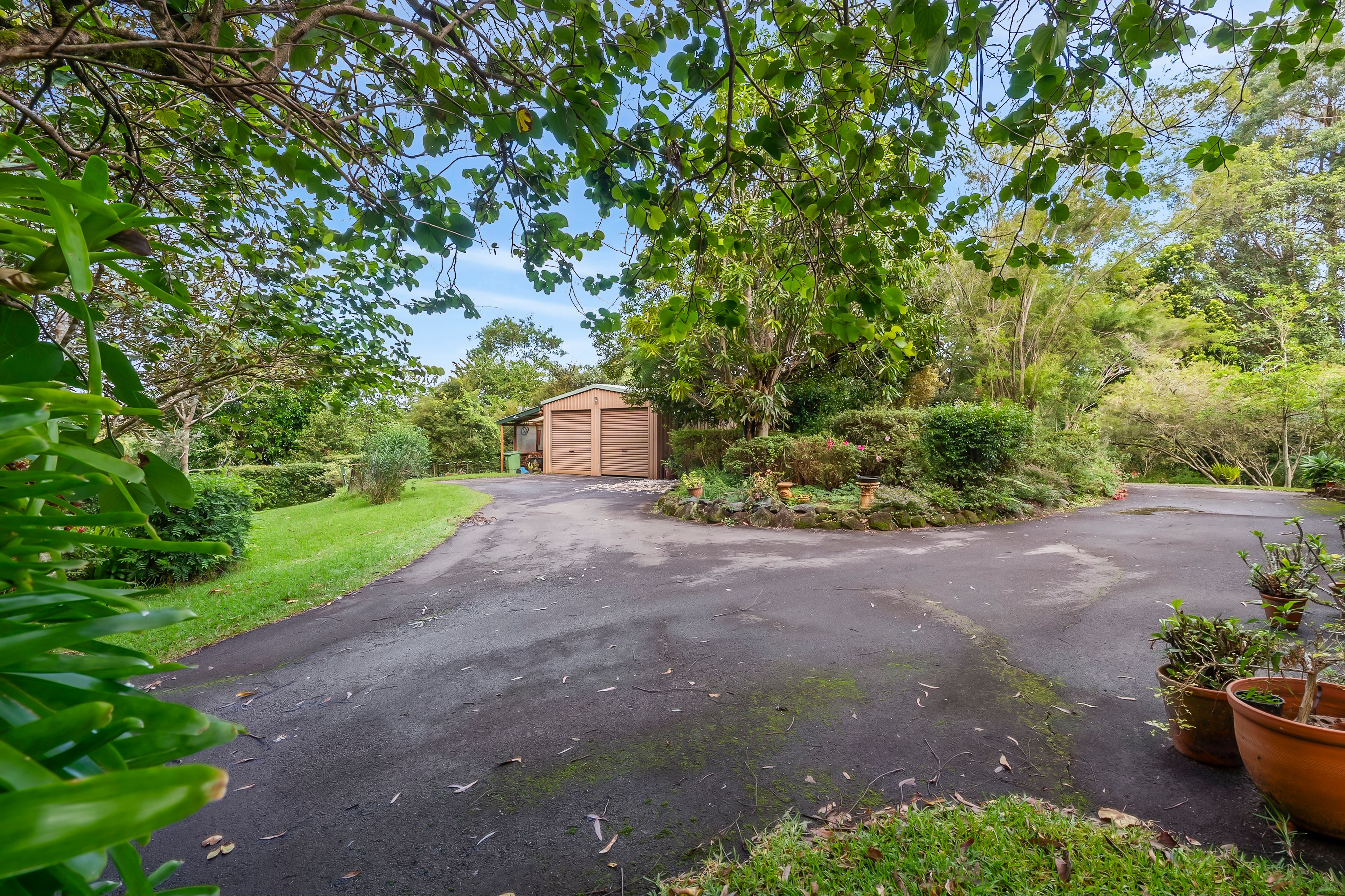 Natural Beauty: Enjoy the abundance of rainforest plants, fruit trees, and wildlife, with a running creek and a bore pump system ensuring easy irrigation throughout the property.