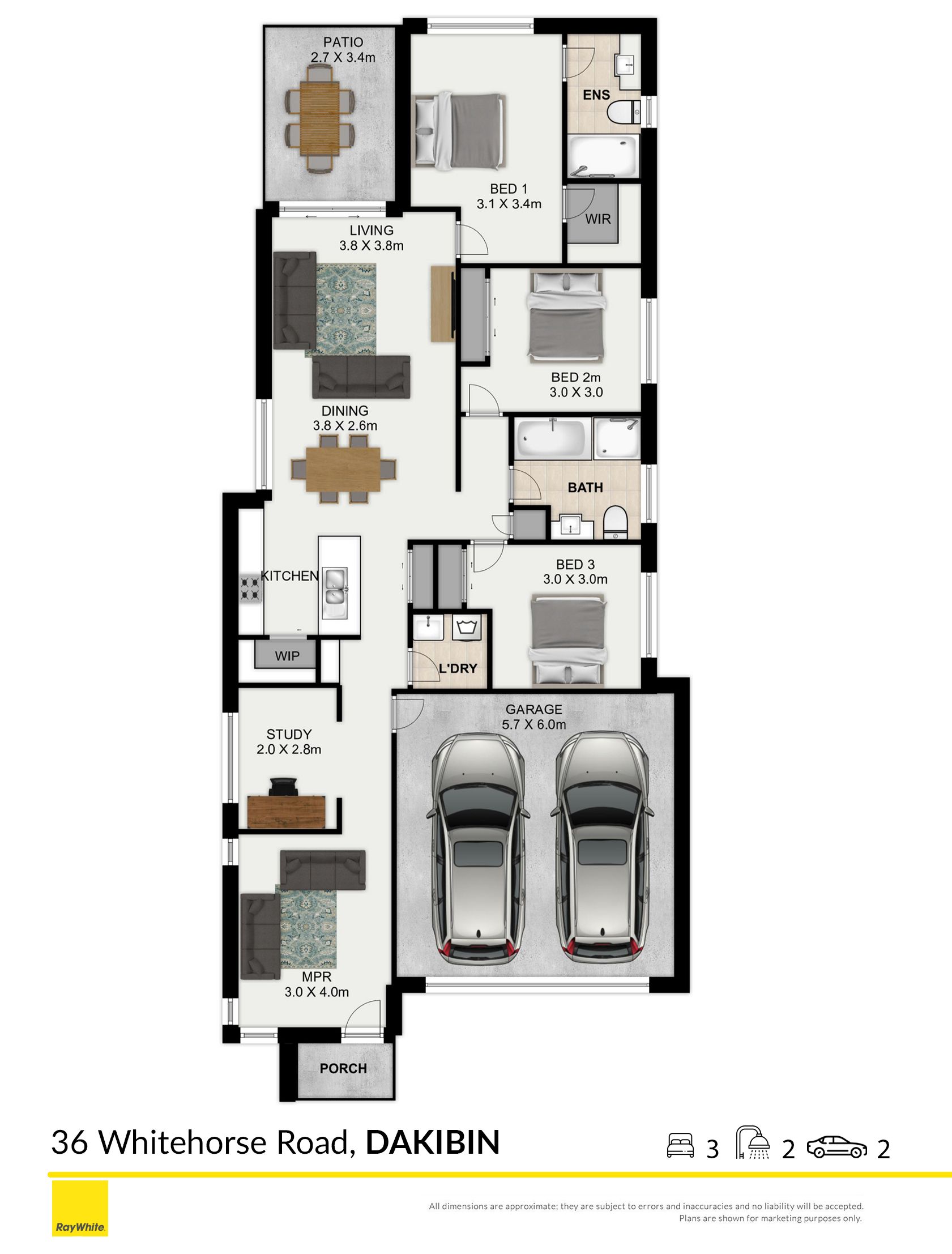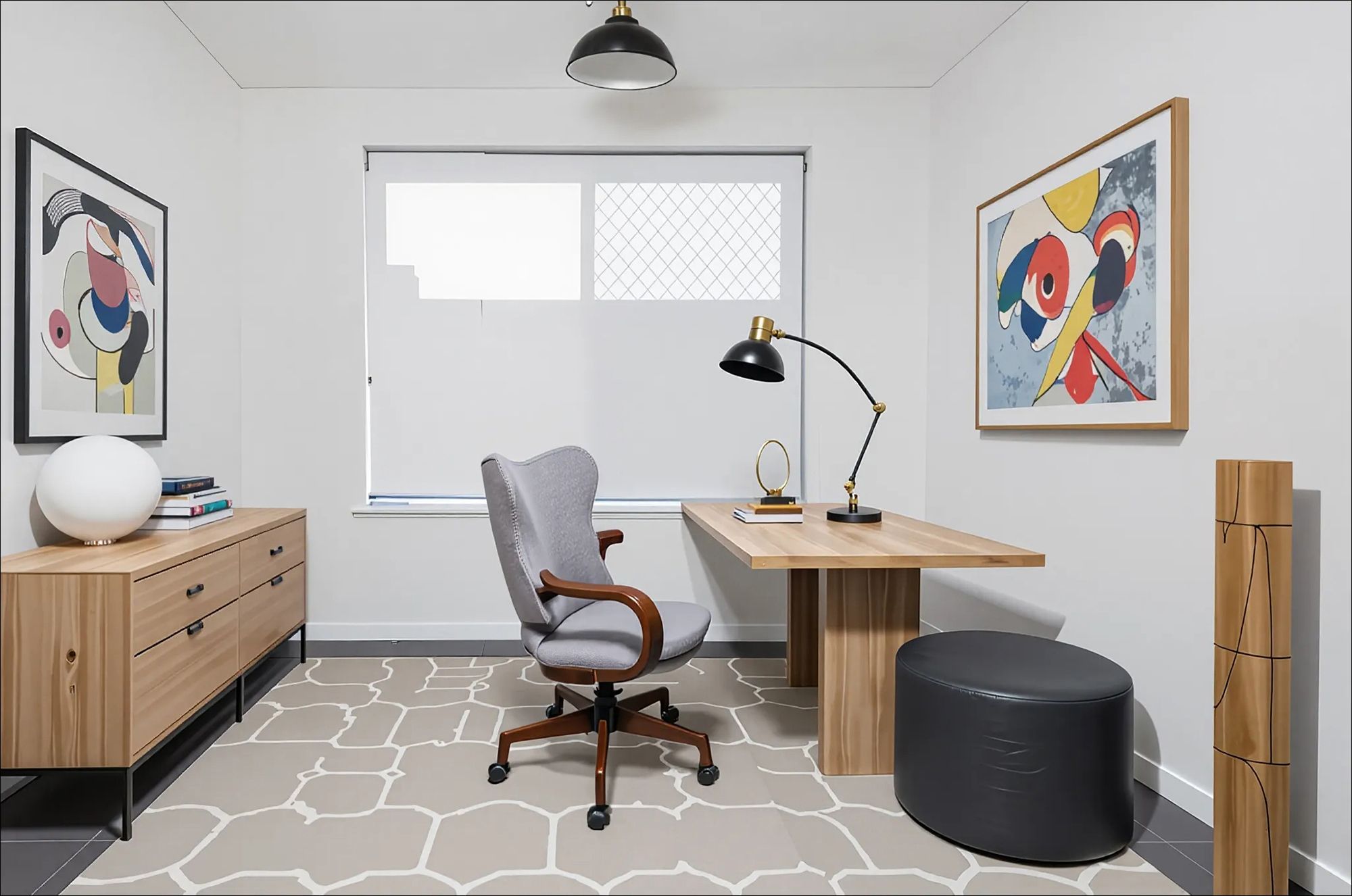 The home features two generous bedrooms plus a versatile third room, perfect as a work-from-home study or guest room, complete with built-in desks, drawers, and cube storage. A well-appointed kitchen overlooks the open-plan living and dining areas, flowing effortlessly to a covered alfresco and secure backyard - ideal for weekend BBQs or kids at play.