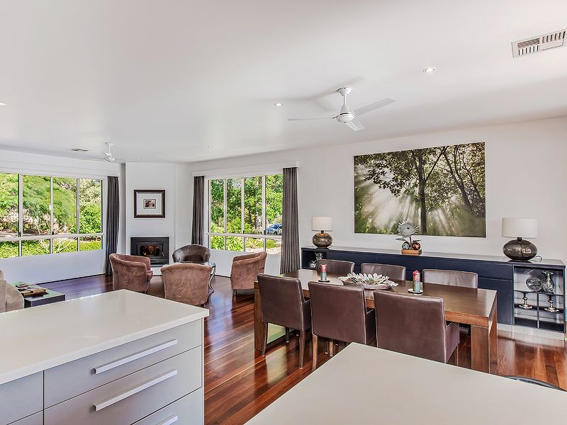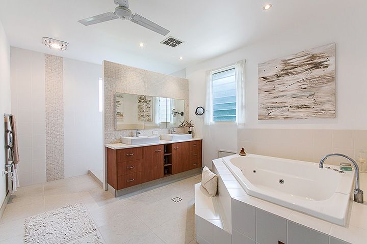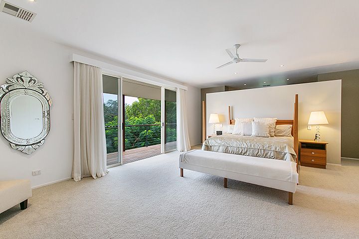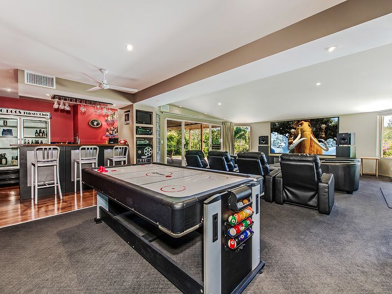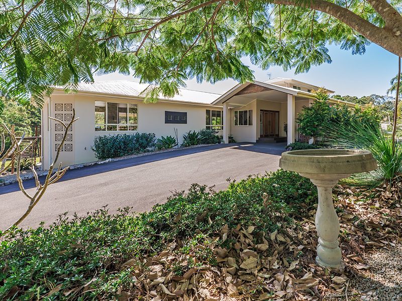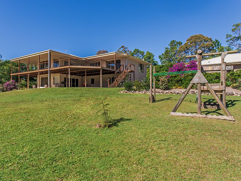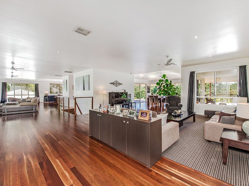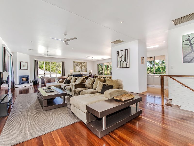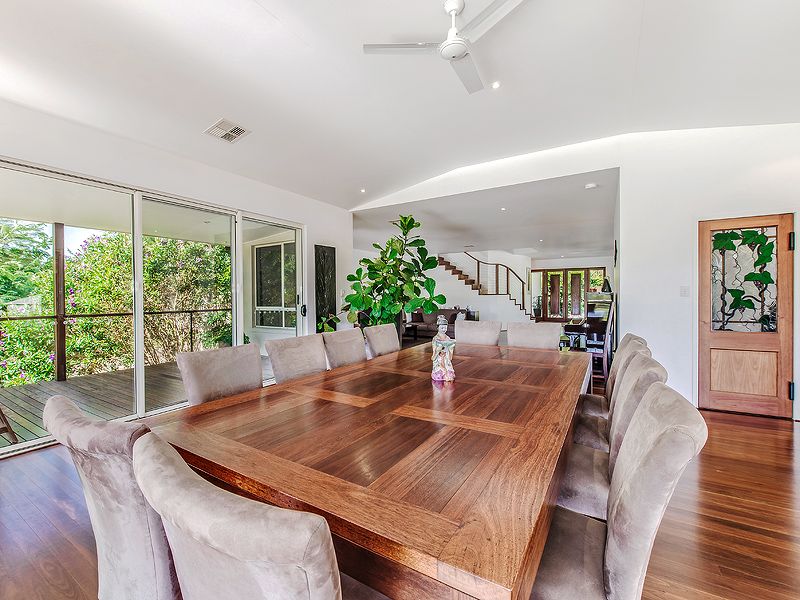 Upstairs to the Master Suite via a stunning timber stair case, step into a versatile room which could be used as either a nursery/dressing room/gym/study with a wall of storage cupboards. Double doors into the huge master bedroom/parents retreat, every women's dream walk in robe, ensuite, double shower and vanities, spa bath to relax in. Wake up to the wonderful aspect of your private acreage, sit out on the deck, have a cuppa and take in the colourful Poinciana tree and birdlife.