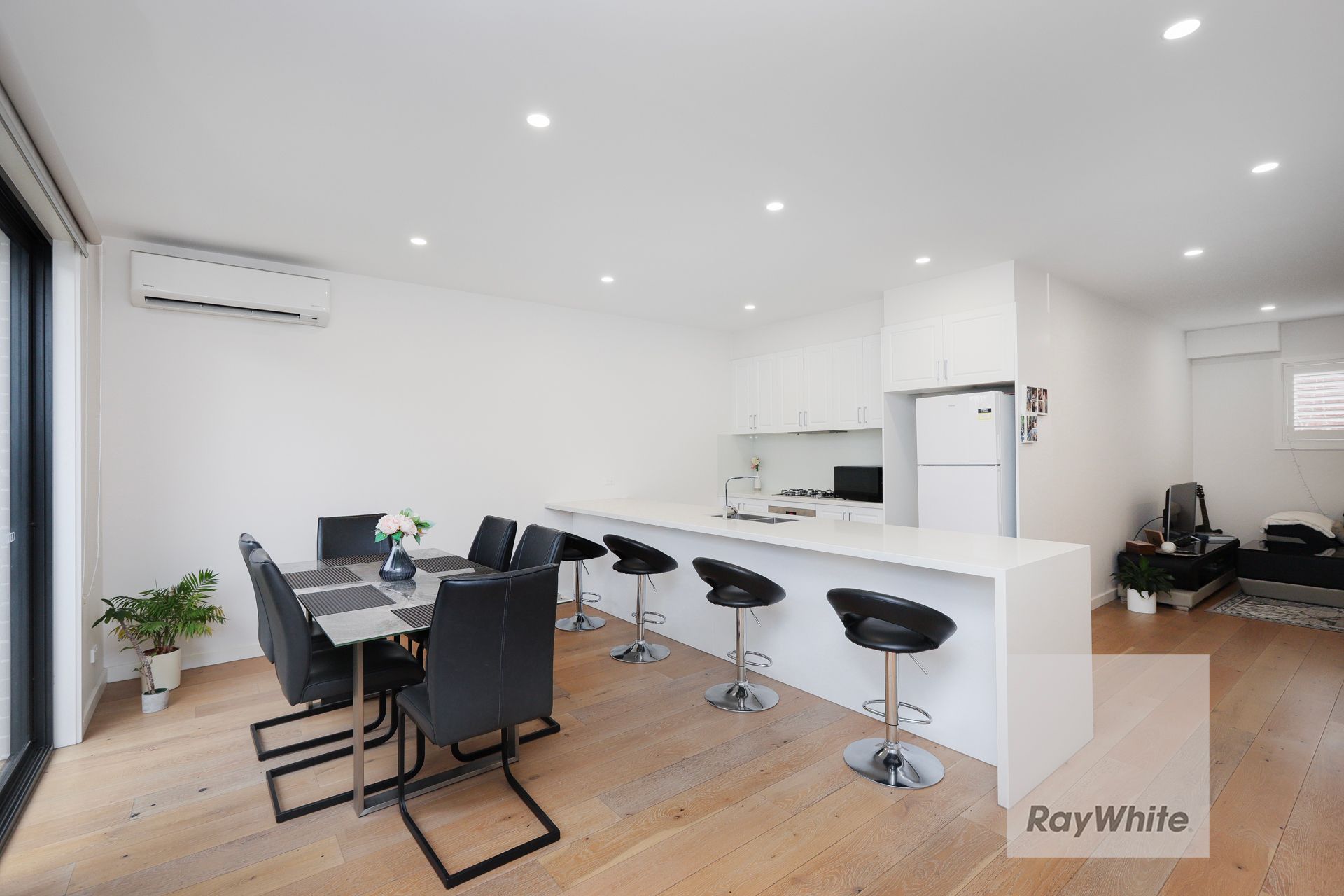 Ensuring serene privacy thanks to its rear position within a boutique allotment, this chic two bedroom plus study, two bathroom townhouse delivers a deluxe bespoke design together with exceptional light-filled space. One of only four and prioritising comfort from the onset, it's the open office/study that encourages working from home versatility. The sleek stone-bench kitchen well-appointed in a quality suite of stainless-steel gas cooktop, electric oven and dishwasher, plus plentiful soft-close cabinetry, while the spacious meals/family zone progresses to an outdoor entertainer's haven with low-maintenance synthetic grass. Fitted with BIRs are the carpeted bedrooms each with a stylish ensuite; fully-tiled and boasting floating vanity, large shower and toilet with another powder room. Including split system heating/cooling throughout, hardwood floors, intercom, under-stair storage and remote-controlled garage with internal access and European laundry. Enviably zoned to Strathmore High and less than 12km to Melbourne's renowned CBD, it's moments to Pascoe Vale Station, popular cafes, Moonee Ponds Creek Trail and quick access to city/airport-bound freeways.