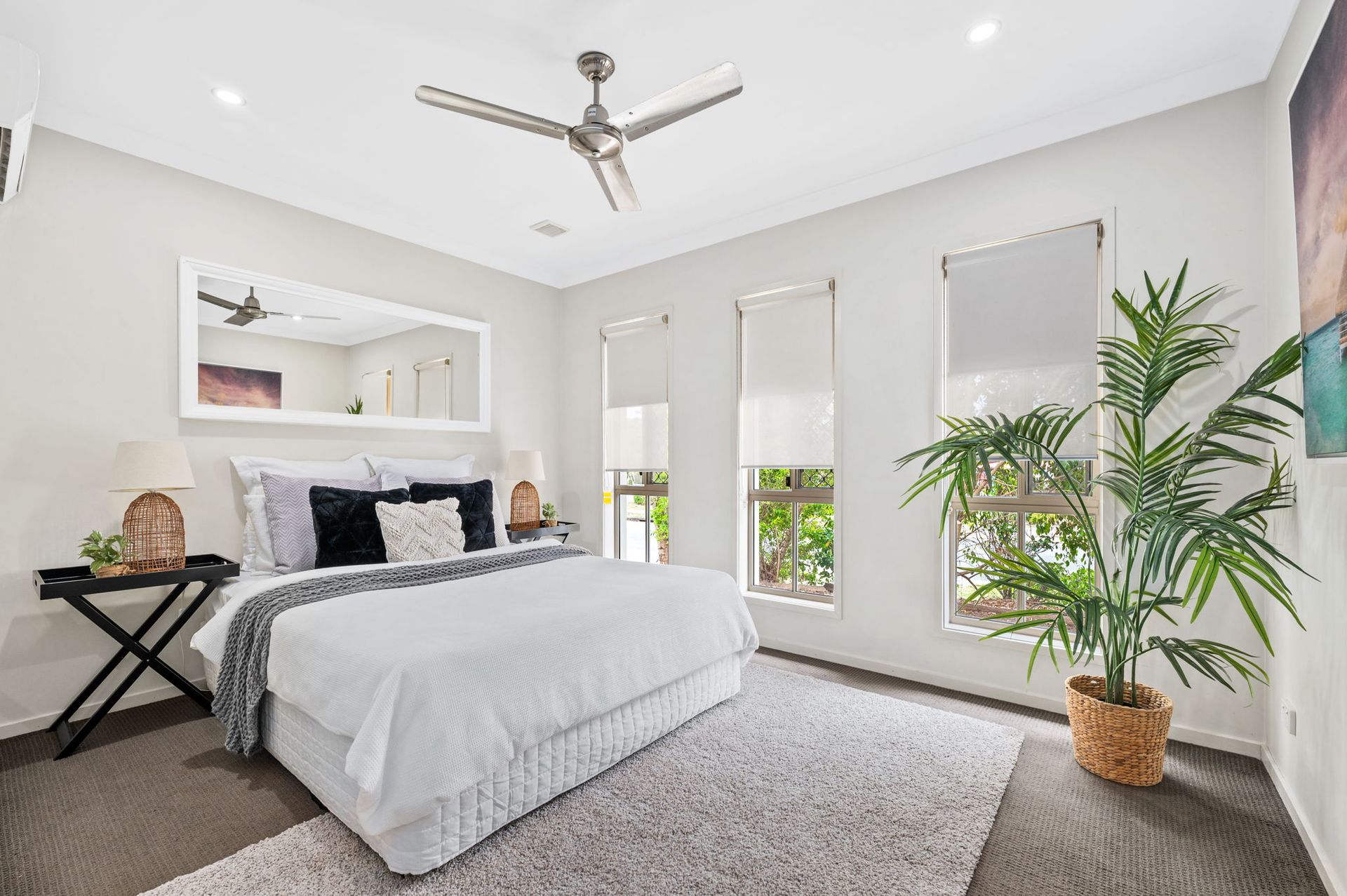 The house is also equipped with a double remote garage and sits on a 400m2 block, providing ample space for parking and storage. The kitchen and living area are located downstairs and are air-conditioned with 2 split system units, while the master bedroom includes a third air conditioner. There are 7 ceiling fans throughout the home, providing added comfort during warm weather. The kitchen is equipped with a 5 burner gas cooktop and other modern features. The house also has a balcony off the master bedroom, and 241.3m2 of under roof space.