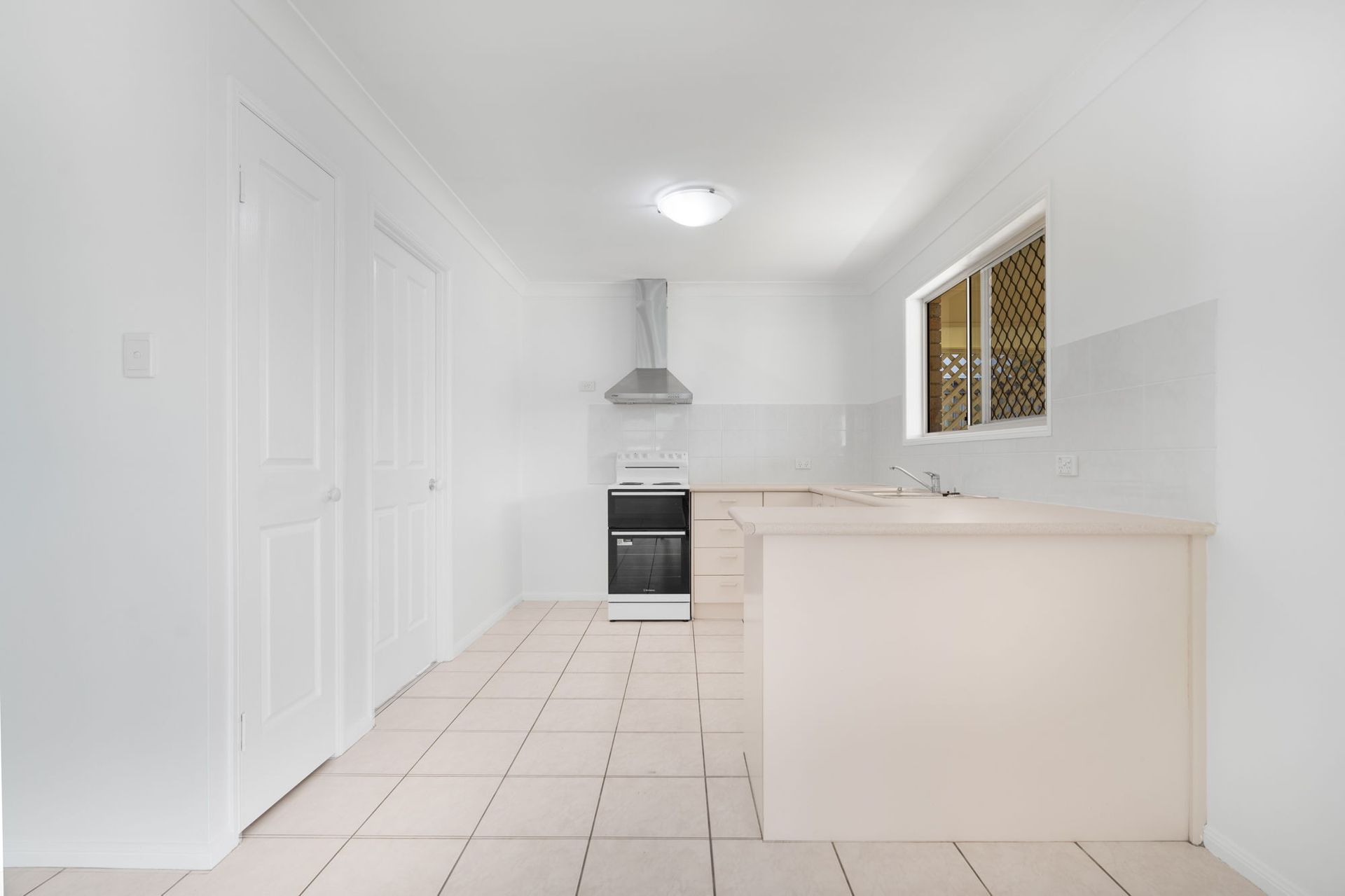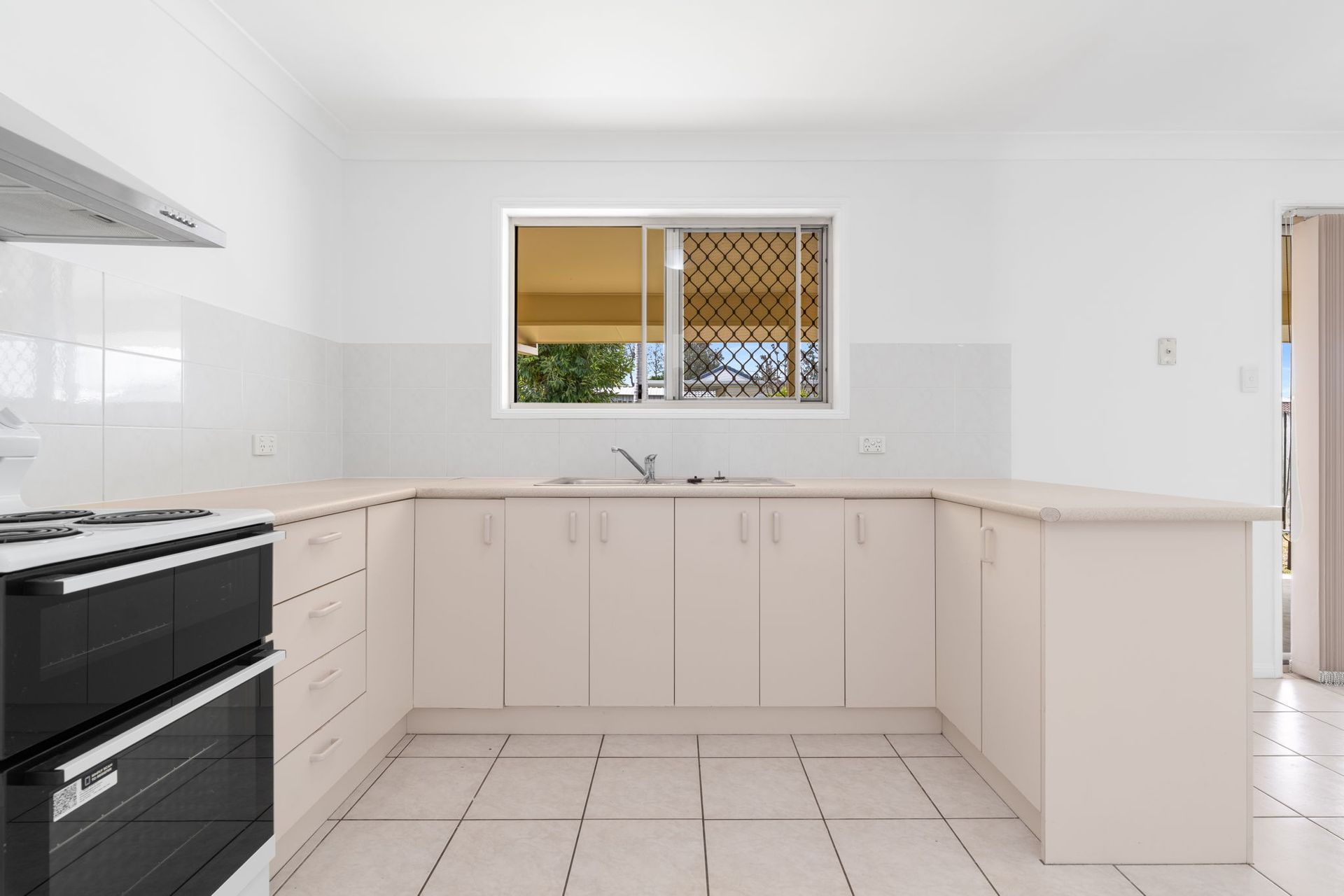 The laundry is right next to the kitchen with a linen cupboard for storage and external access via the screen door.