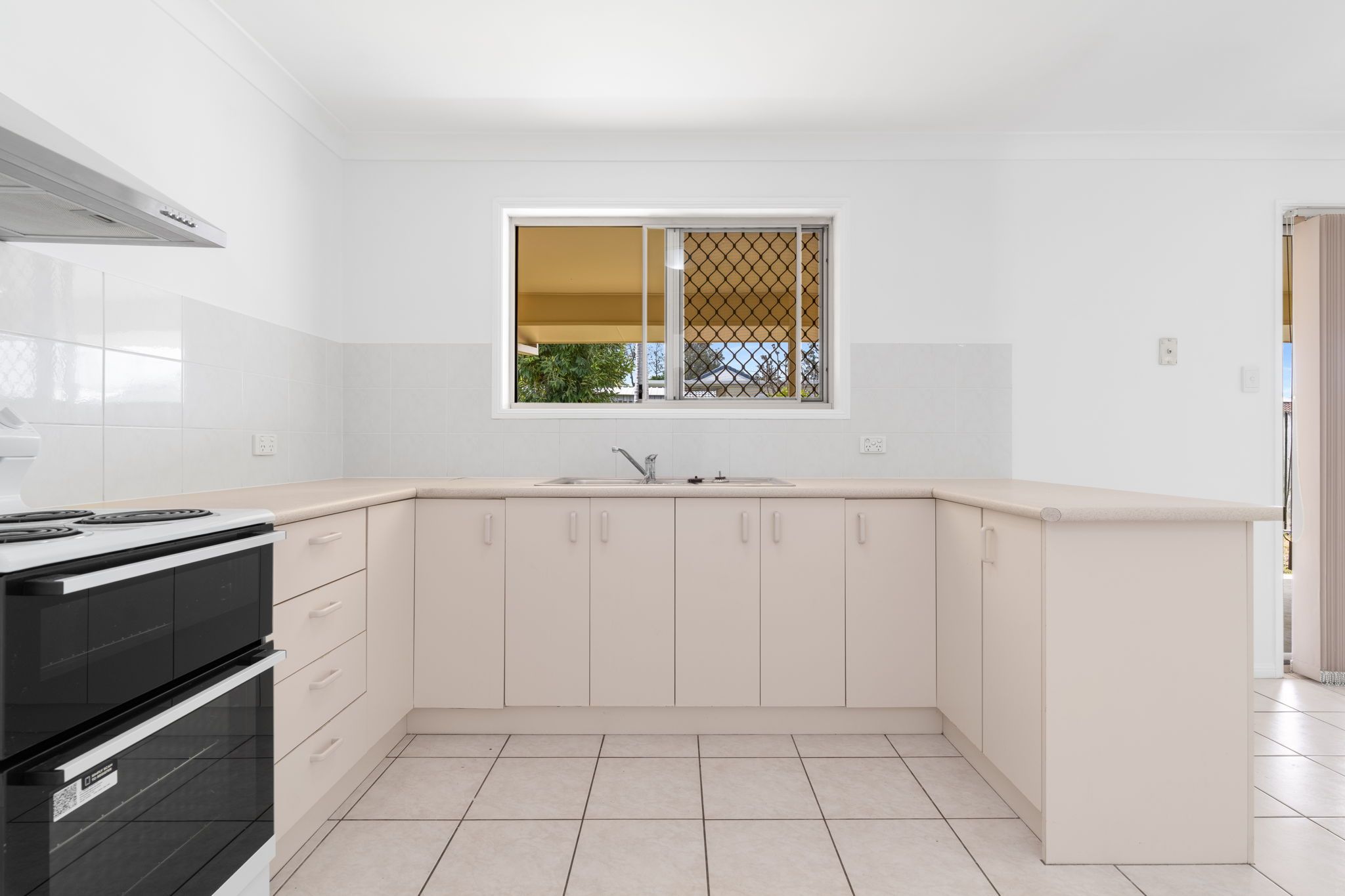 Well appointed kitchen with electric cooktop and ample bench space.
