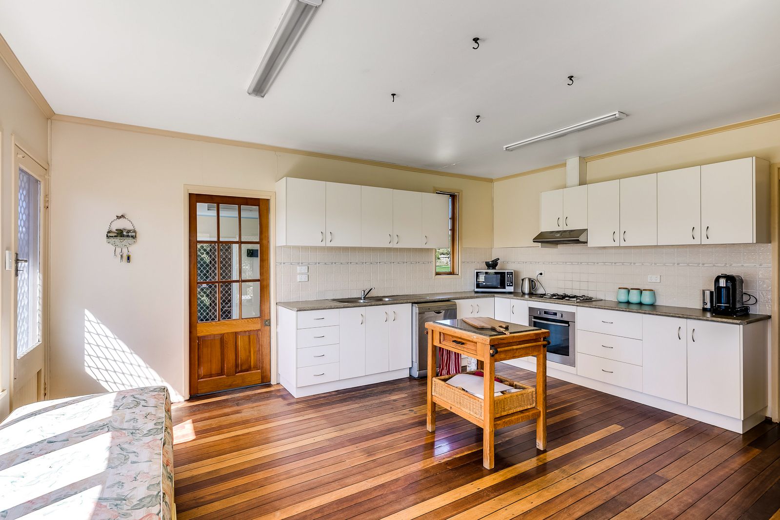 Spacious modern kitchen with gas hot plates and electric oven, dishwasher, reverse cycle air conditioner & gas heater outlet, walk in pantry, original polished hardwood floor. Separate formal dining room opening into a large formal lounge, woodheater, which opens to an open covered patio area. Separate centrally located tiled family room with air conditioner which connects to the bedroom wing. Modern bathroom has bath, separate shower, toilet and vanity, tiled flooring. Also off the kitchen is tiled laundry, single garage, second toilet. The homestead is set in established treed and garden setting, also includes ant bed tennis court, garden shed, 2 x 4000 gallon concrete tanks with pressure pump.