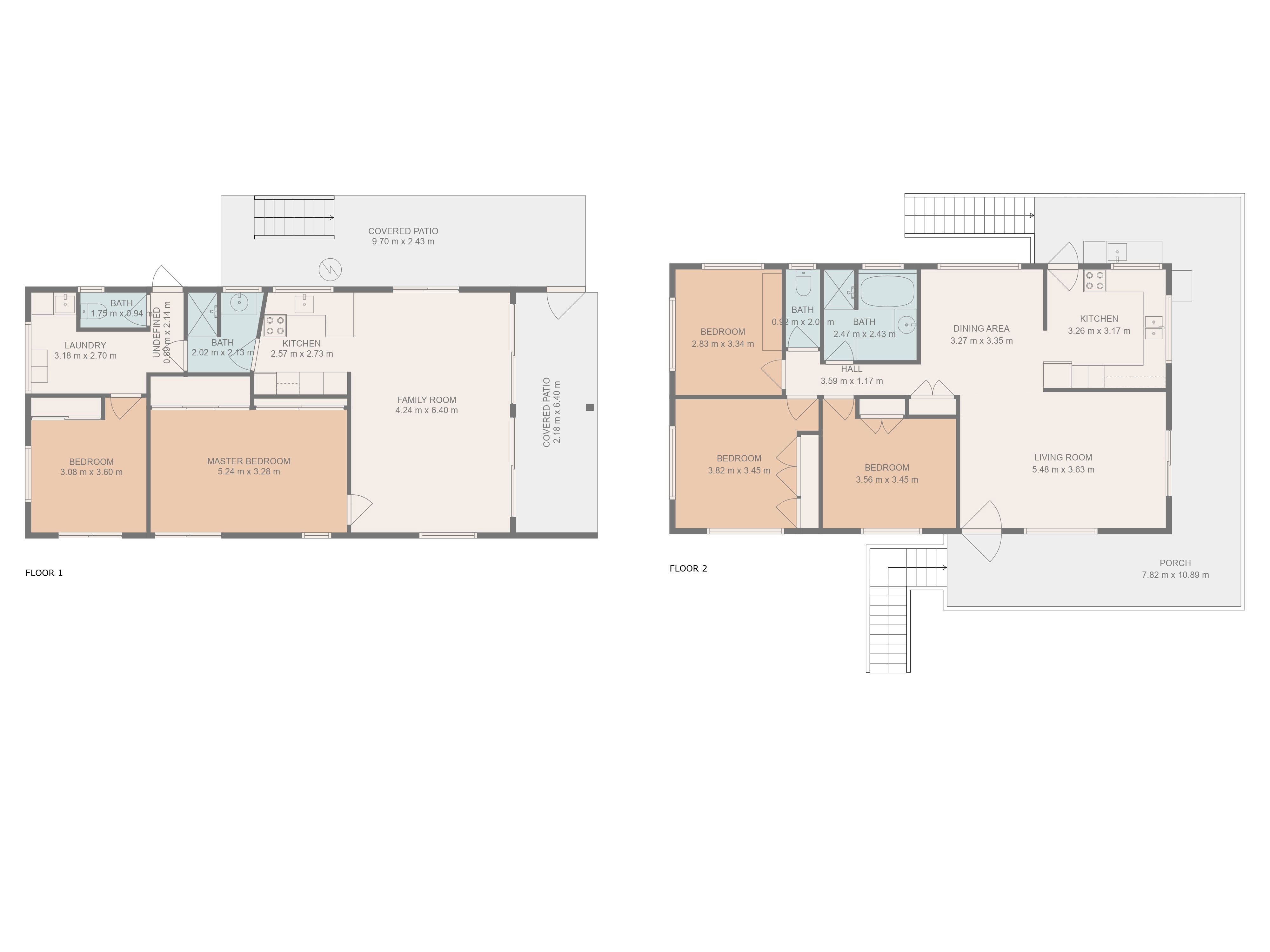 UPSTAIRS - 3 bedrooms - Built-in robes - Spacious open plan living/dining area - Spacious kitchen - Bathroom with shower and bath - Refrigerated a/c - 3 sided verandahs