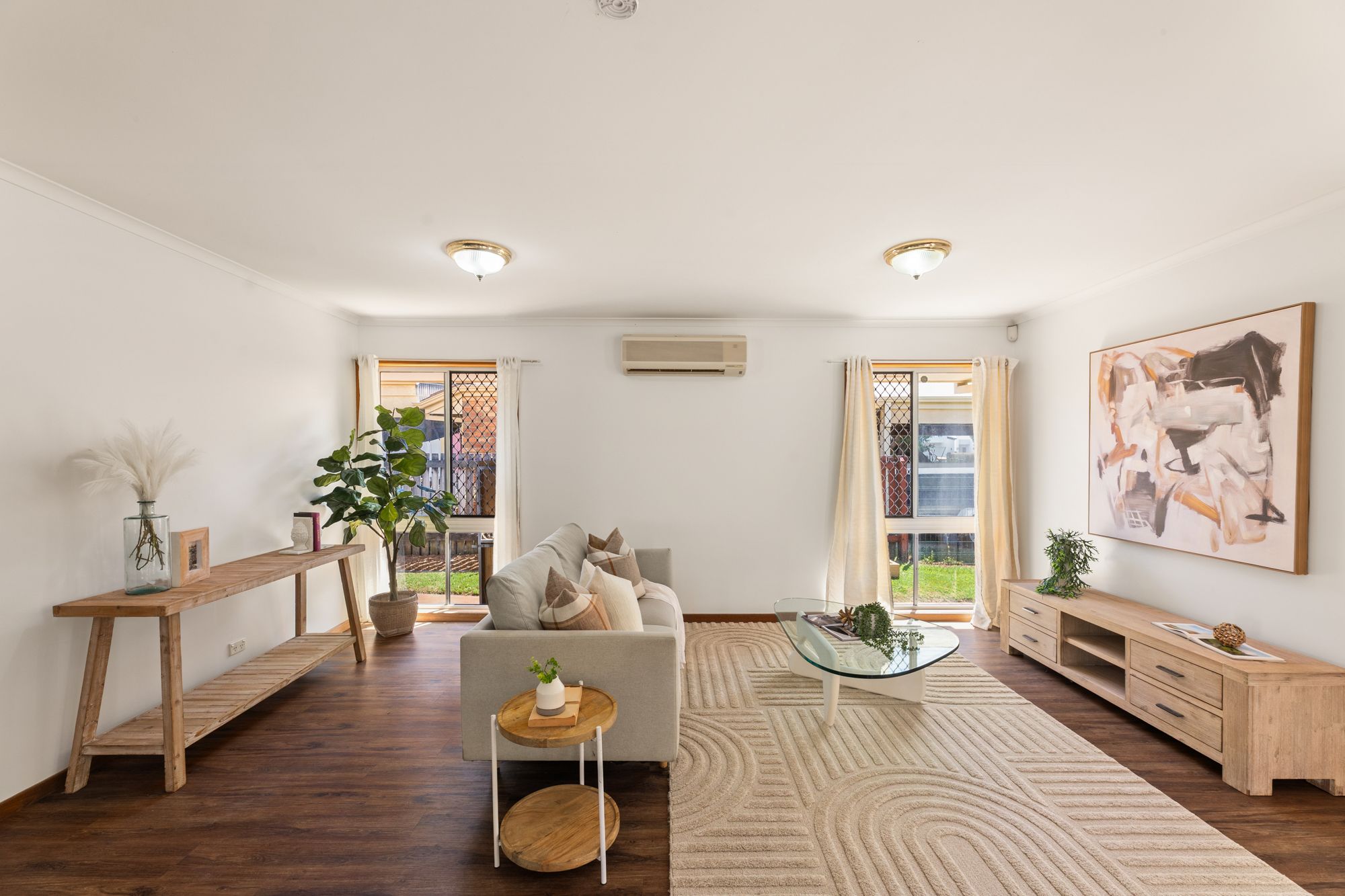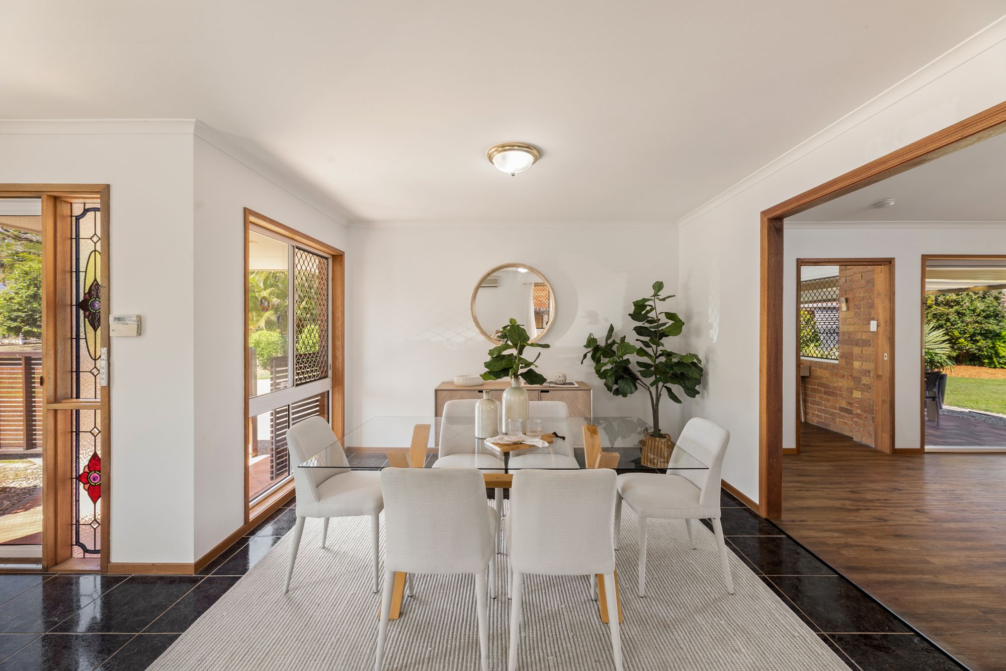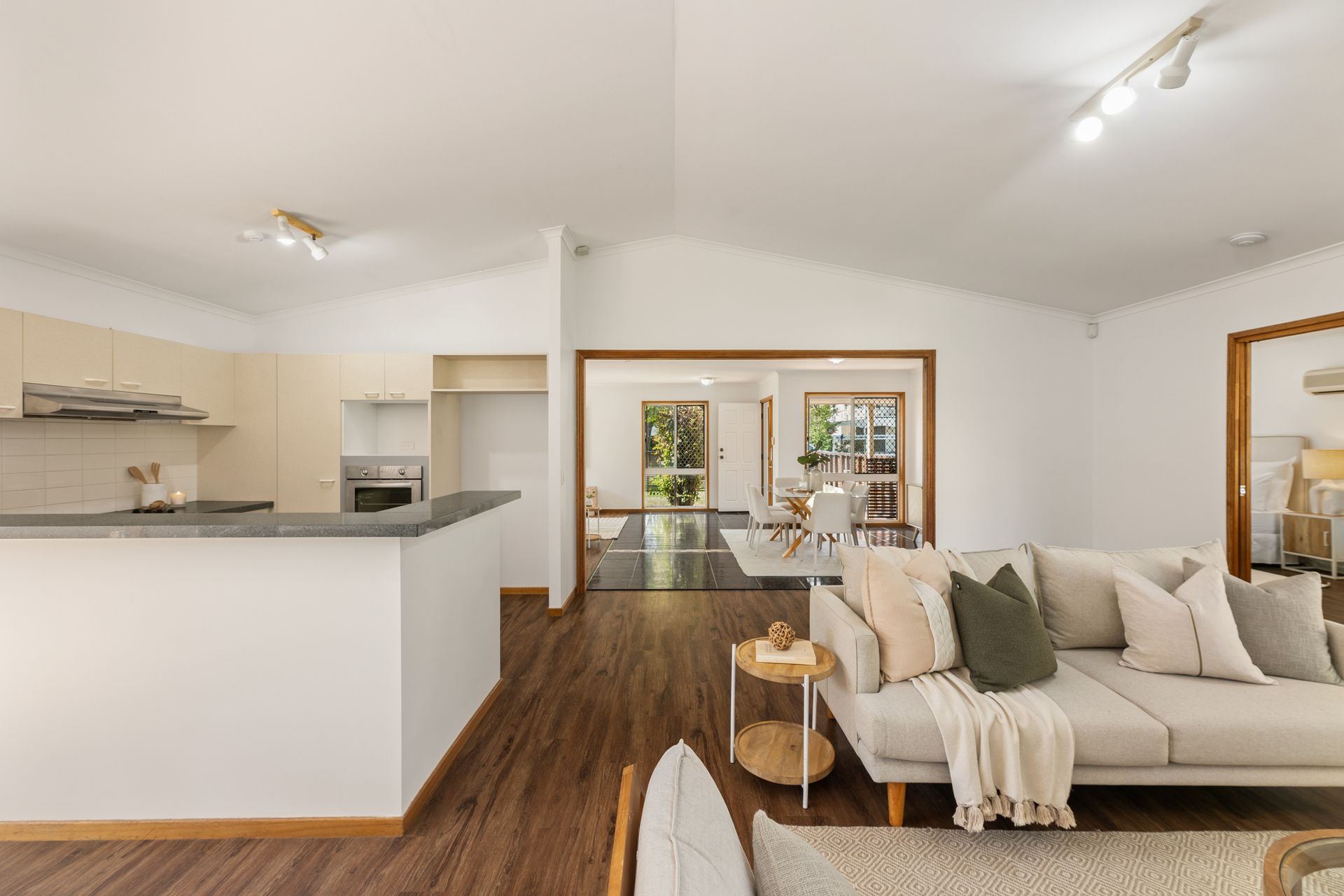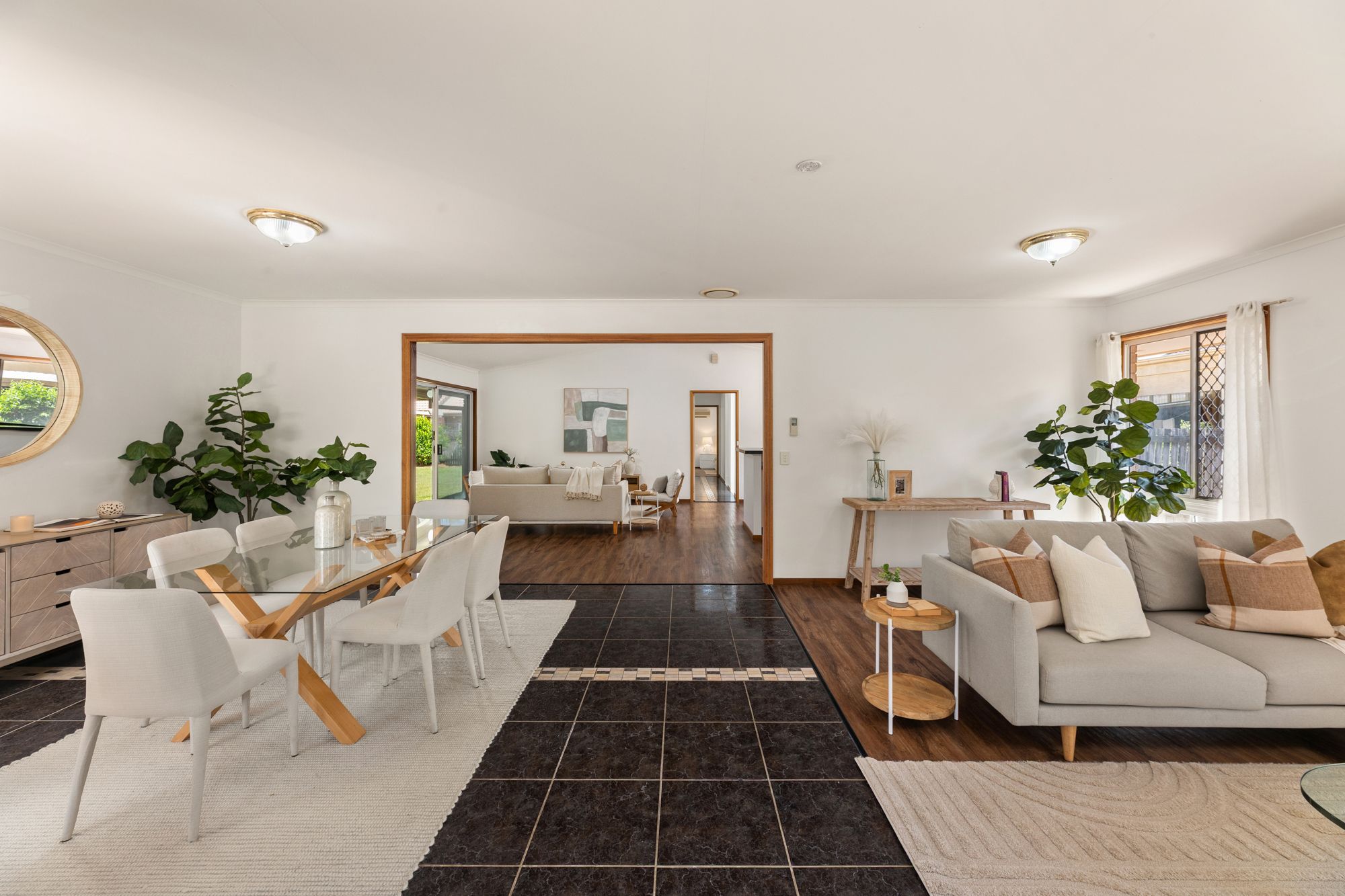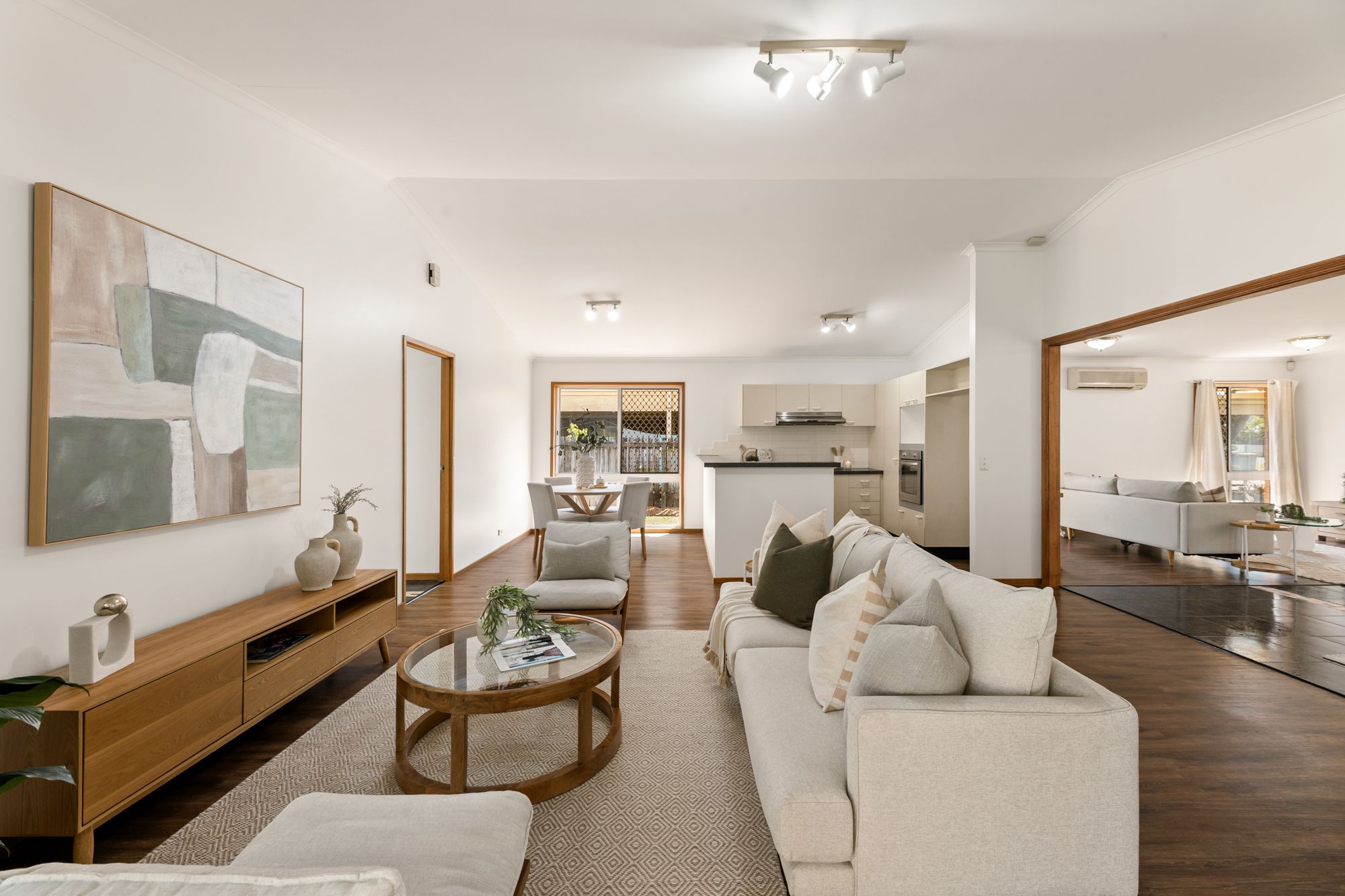 Framed by its low-maintenance brick façade and landscaped surrounds, the property opens to a spacious interior designed for flexibility and natural flow. Two generous living areas cater to everyday living and entertaining, connecting directly to the covered patio for effortless indoor-outdoor enjoyment. Elevated ceilings and large windows enhance the sense of openness, creating interiors that feel balanced, neutral and inviting.