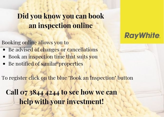 Please note: You must inspect the property before your application can be considered. Applications are available from our website www.raywhitewestend.com.au/apply/