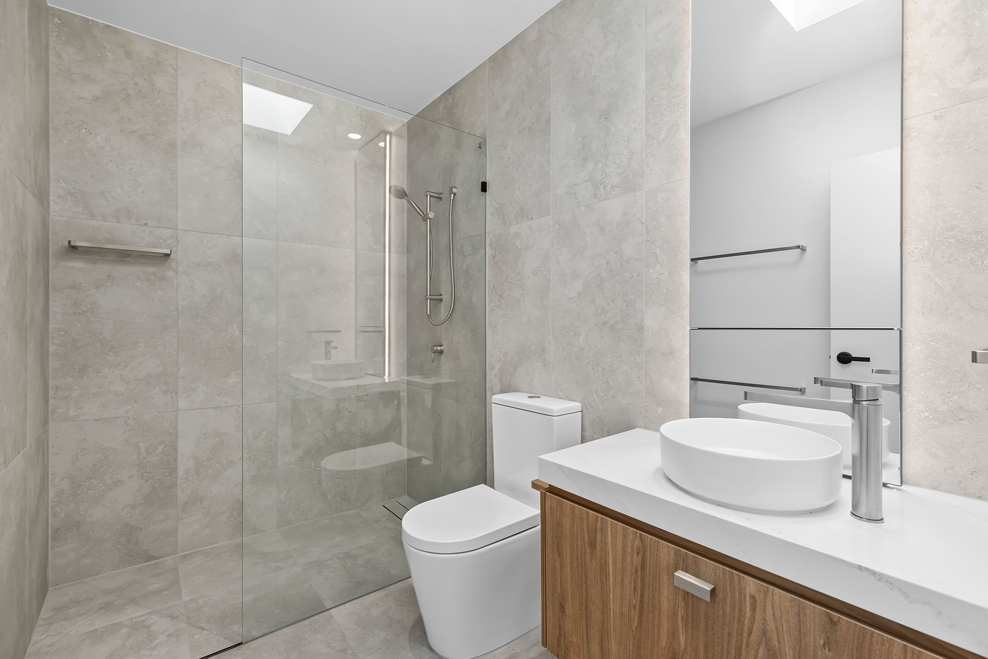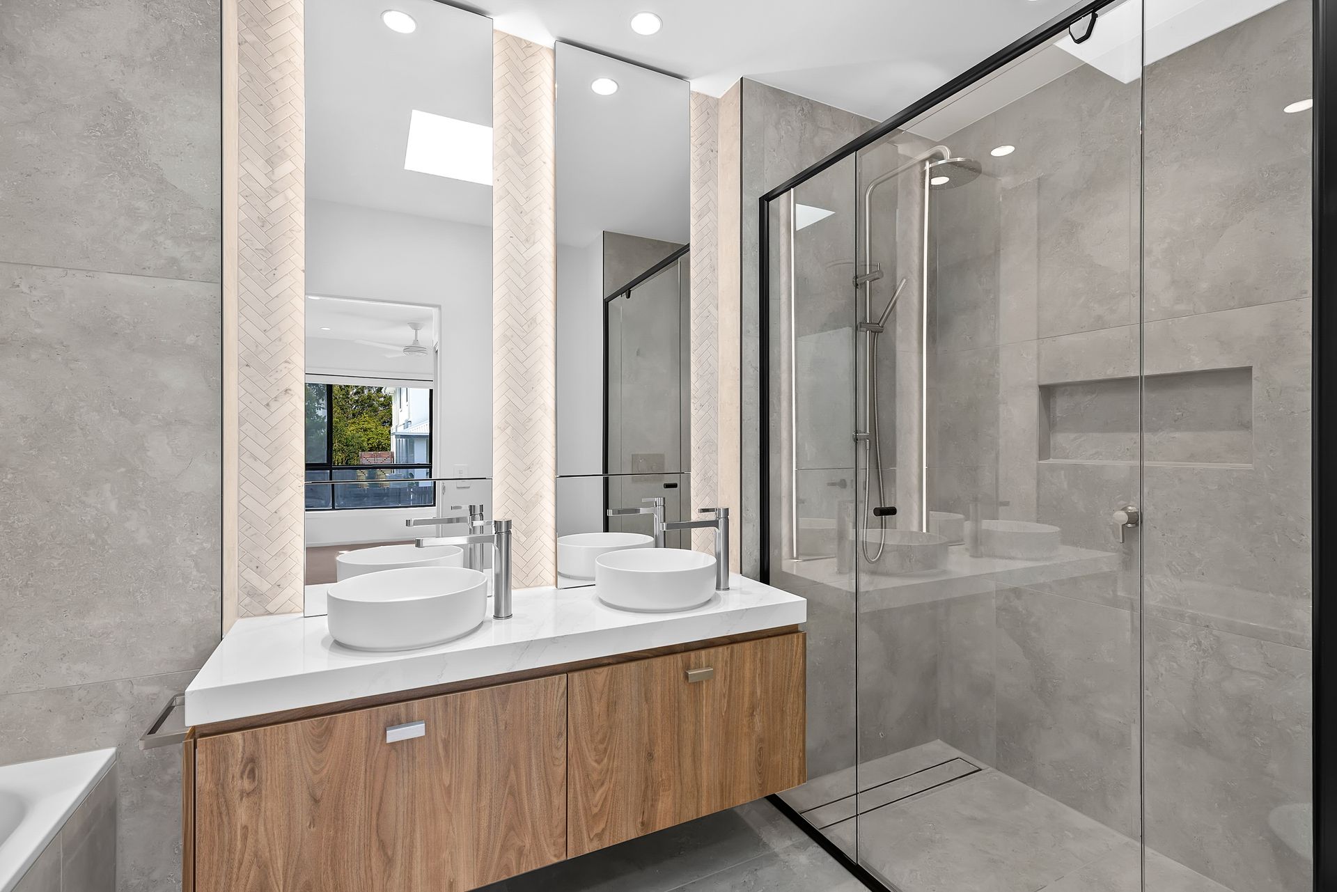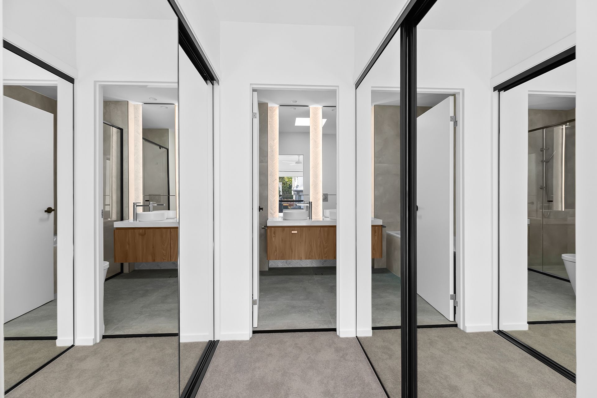 This wonderful property represents a once-in-a-lifetime opportunity to become a part of a budding new community. The Ashford Residences is a high-end development in the delightful North Brisbane suburb of Everton Park, which has quickly made a name for itself for the unbelievable assortment of local amenities on offer. This terrace home is what new buildings should all aim to be, they should both excite and calm the senses. This is accomplished by a wonderful flow through the home, accentuating the volume of the space with the help of clean lines, a neutral colour palette and stunning, high-quality finishes. The home then quickly comes to life when the oversized sliding doors open fully to connect the external paved area and garden, where the detailed strip lighting illuminates to reveal a playful attitude the architects no doubt had in mind.