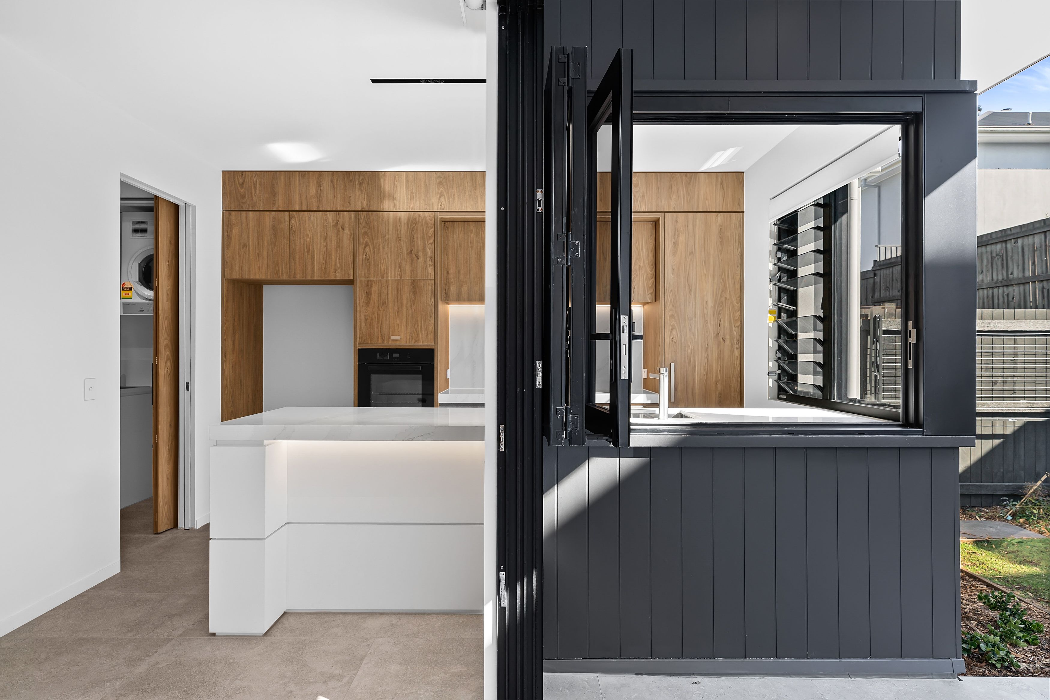 In detail, the terrace house includes: Master bedroom with walk-through robe and sumptuous ensuite with bathtub Three additional bedrooms with frameless mirror built-in wardrobes Second bathroom with spacious shower Zoned and ducted air conditioning and ceiling fans throughout Steel mesh security/fly screens throughout Stone benchtops with bookmarked stone splashback High-end Miele appliances, including induction stove top European laundry with included dryer Additional powder room downstairs Additional linen cupboards both upstairs and downstairs External covered paved area with ceiling fan and servery to kitchen Landscaped garden with grassed area Two-car automatic garage USB-enabled powerpoints throughout 6 KW solar system, which could potentially eliminate your power bills