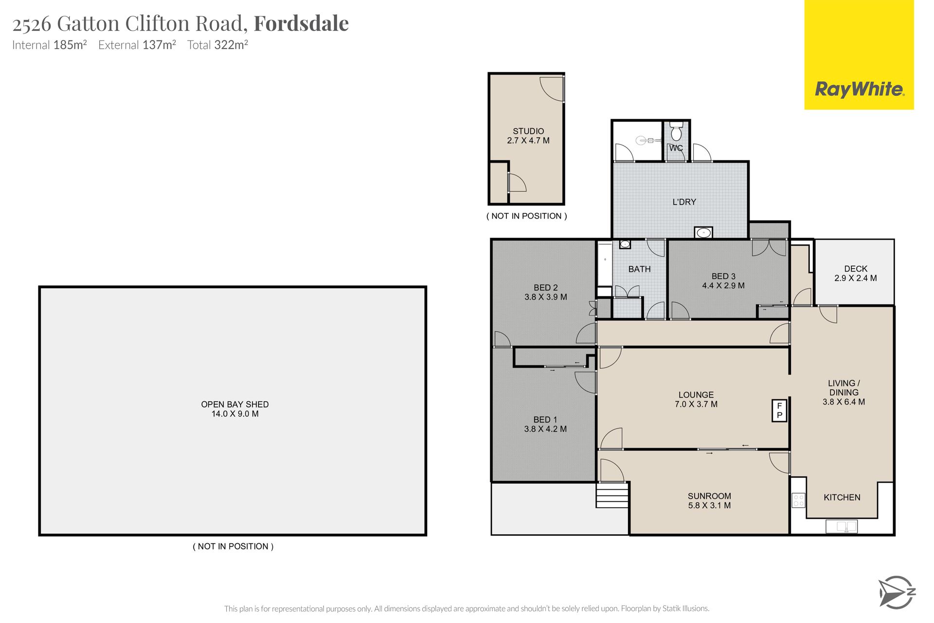 House • Solid construction, featuring red cedar and silky oak features • Three large bedrooms, plus detached sleepout - studio • Generous kitchen - dining capturing natural light leading to the back deck • Two bathrooms, one being central and the second located in the laundry / mudroom • Wood heater is central providing comfort in the cooler months • Satellite NBN