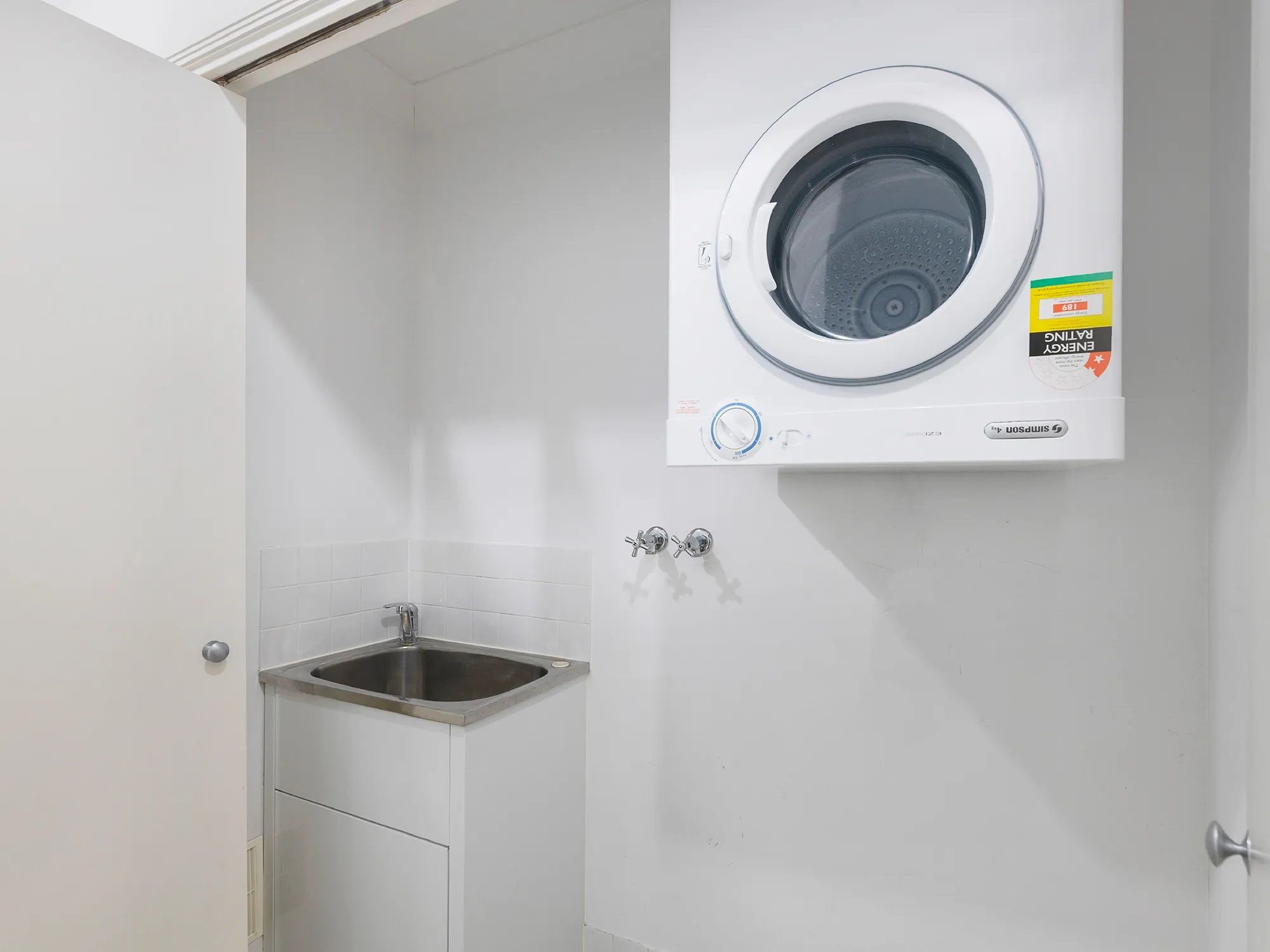 This one-bedroom apartment delivers unbeatable value and a blend of lifestyle, location and low-maintenance living. A functional kitchen anchors the open-plan living area, while the bedroom includes built-in wardrobe and the bathroom features an integrated laundry plus a separate toilet with sink. Secure basement parking completes the package.