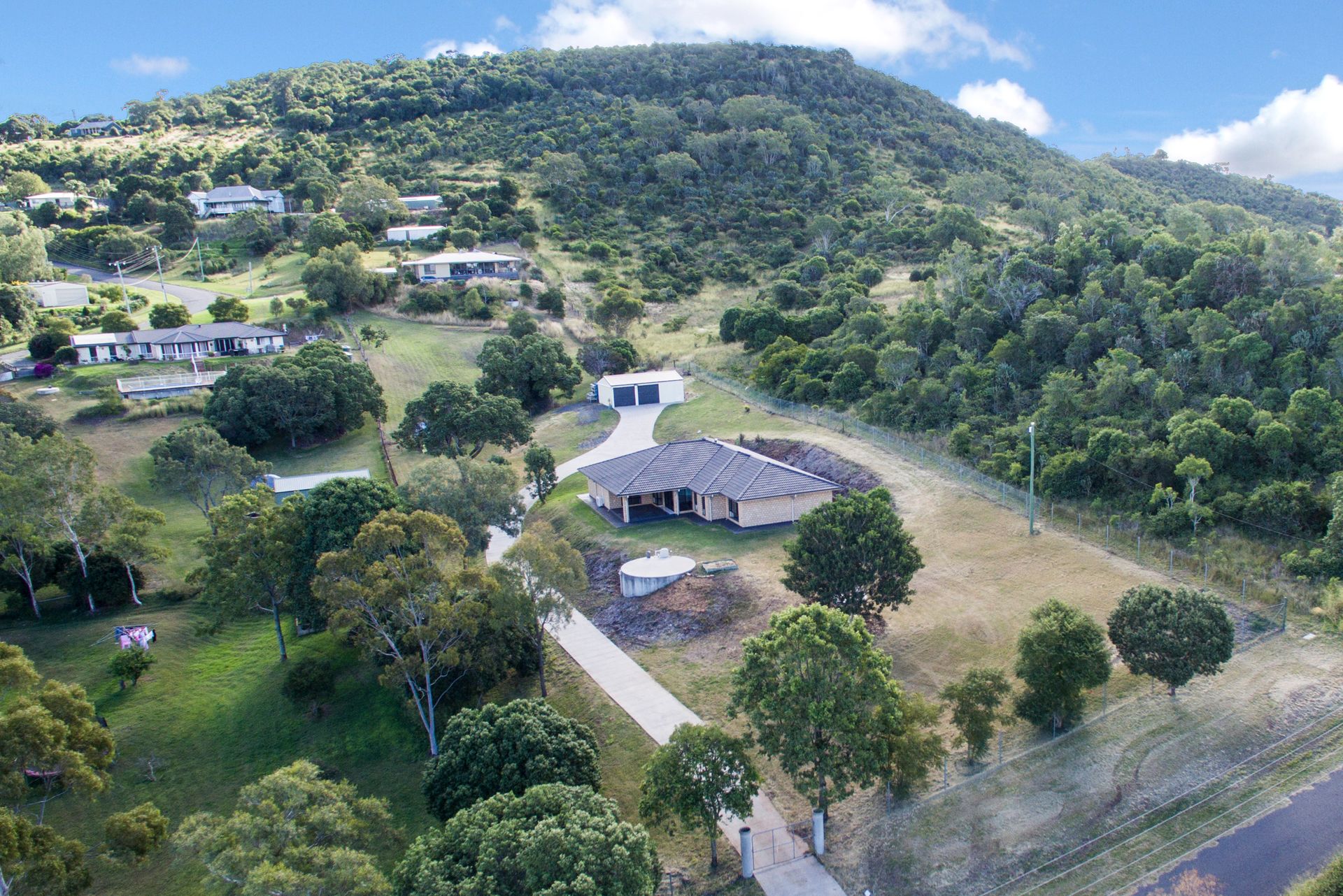 The entire residence is plumbed to 97,000 Lt Rainwater Tank and is set on a private fully (pet friendly) fenced allotment with 6m x 9m powered shed with concrete driveway from the street, and fully sealed road to your doorstep. There is also a separate double car accommodation on the house leading straight into the kitchen.