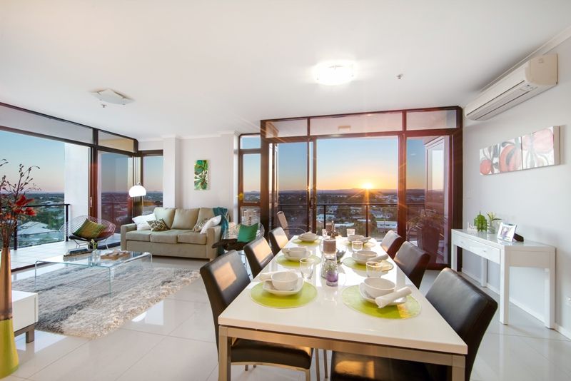 Choose from a splendid mix of two and three bedroom designs that capture the imagination of individuals looking for something special. The two bedroom units have a flexible living space that can be used to increase your living area or provide a private study or third bedroom. All units have a sleek en-suite to the master bedroom. The inclusion of quality appliances and fittings define the standard of finish at Vision adding a cosmopolitan flair that enhances the latest in urban design. Vision apartments will cater to the needs of the most astute purchaser. With four levels of parking providing for secure accommodation for two vehicles plus additional room for storage ensures a comfortable lifestyle at Vision.