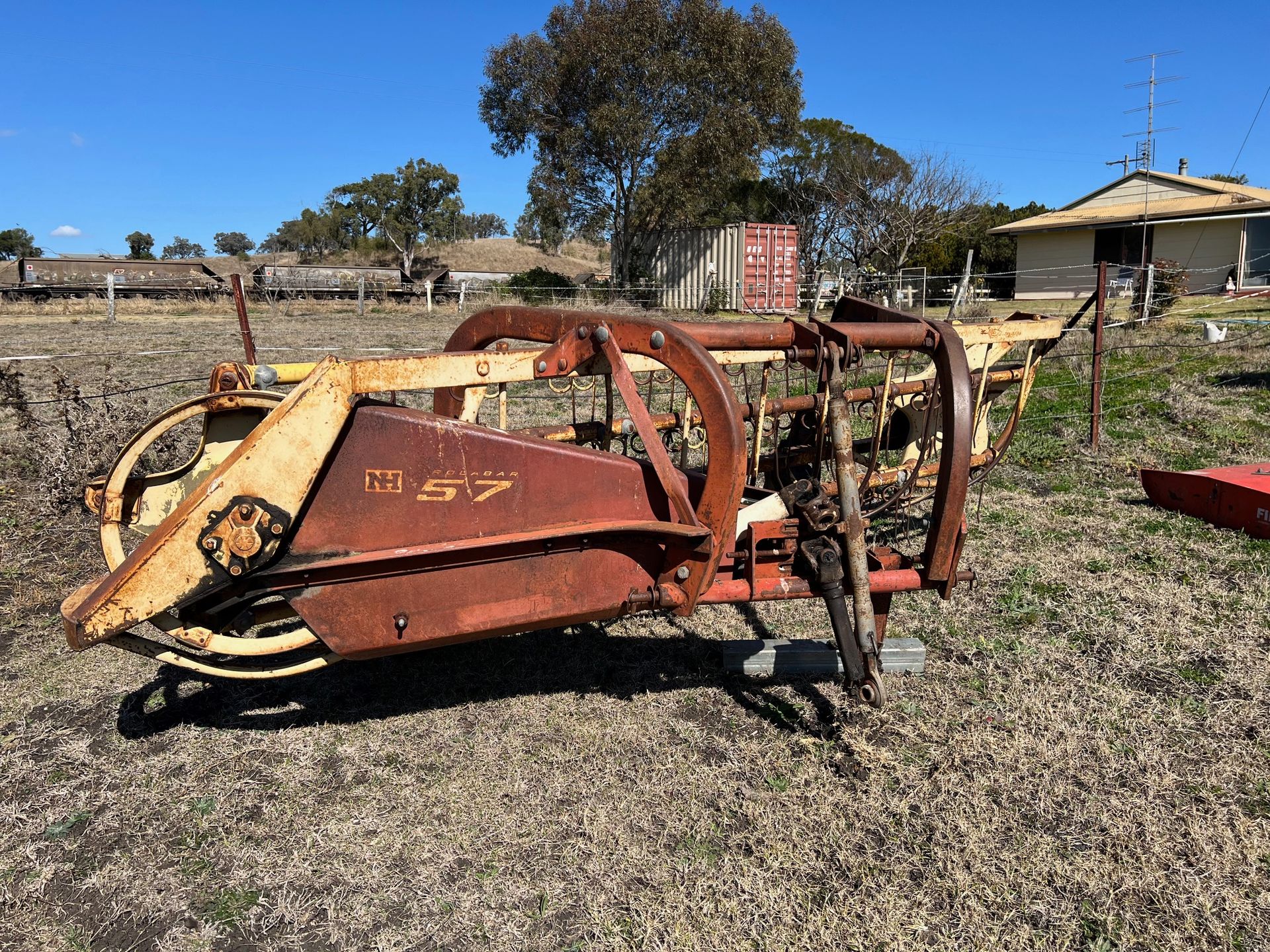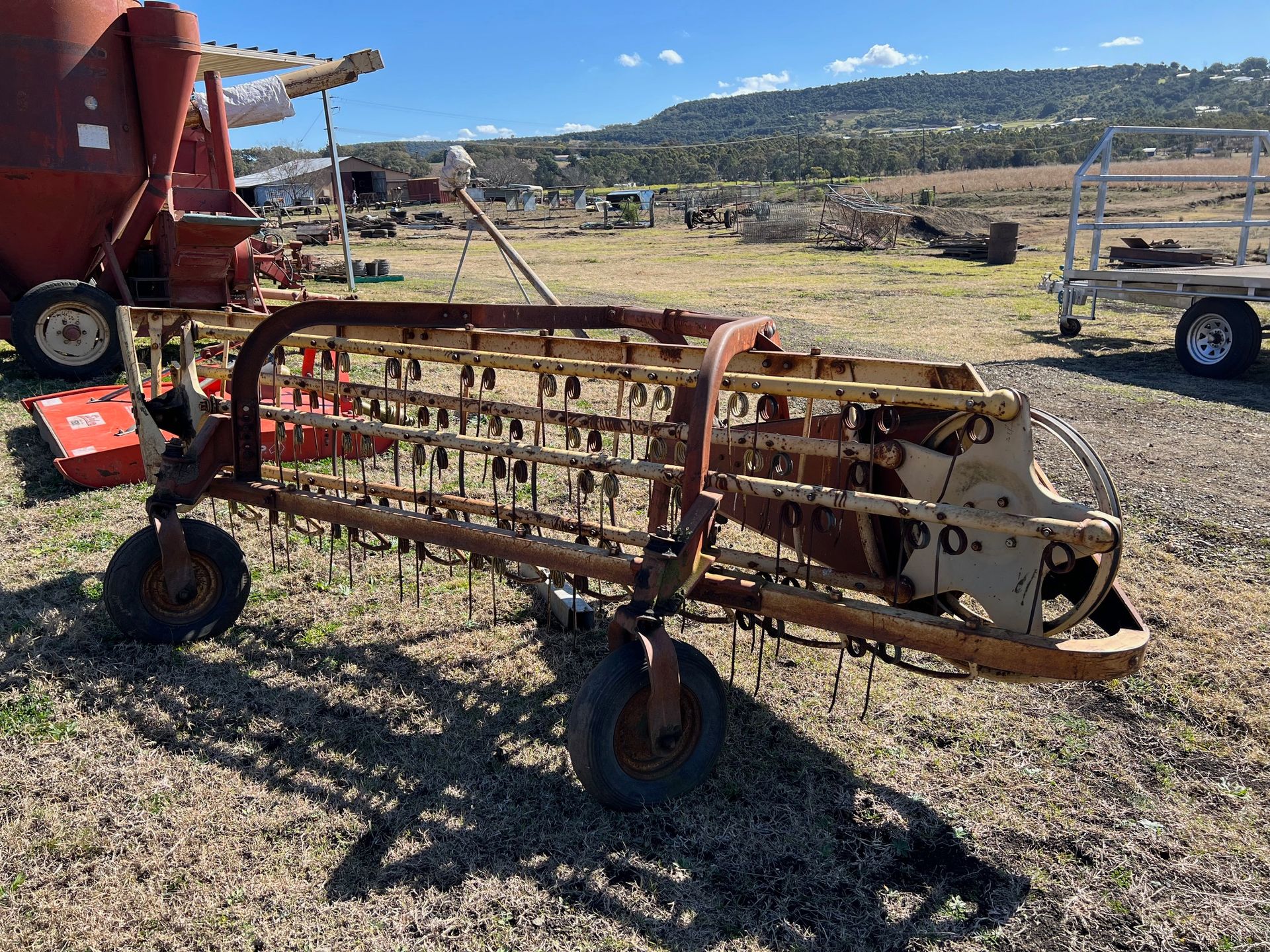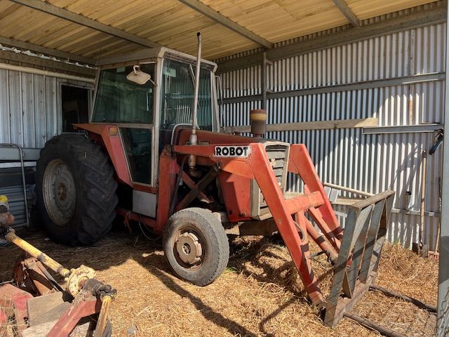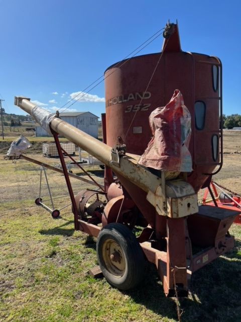 • Massey Ferguson 185 Tractor PTO & Remotes (ROPS) • Massey Ferguson 590 Tractor w/- cab & front end loader, w/-spears • New Holland 27S small baler • New Holland 848 Fastnet baler • New Holland 352 Mixer • Fieldquip Saber 1500 slasher, 5ft • New Holland 57 Rolabar hay rake • New Holland 471 bale elevator • 2 x hay trailers - 5 metre x 2.3 metre • Massey Ferguson hay mower • Harrows • 3PL fert spreader • 3PL13 tyne chisel plough • Pencil auger (approx. 11ft, elect motor) • Tandem trailer, 12ft x 8ft, as new (unreg) • Massey Ferguson 55 Combine with Harrows • Disc Harrow - 24 Disc • Tyre roller, 3.6mtr • Toyota Hilux 2.4 diesel ute (farm - unreg) • 3PL Boom Spray w/- f/glass tank & pump • Combine tyre 9.00-36