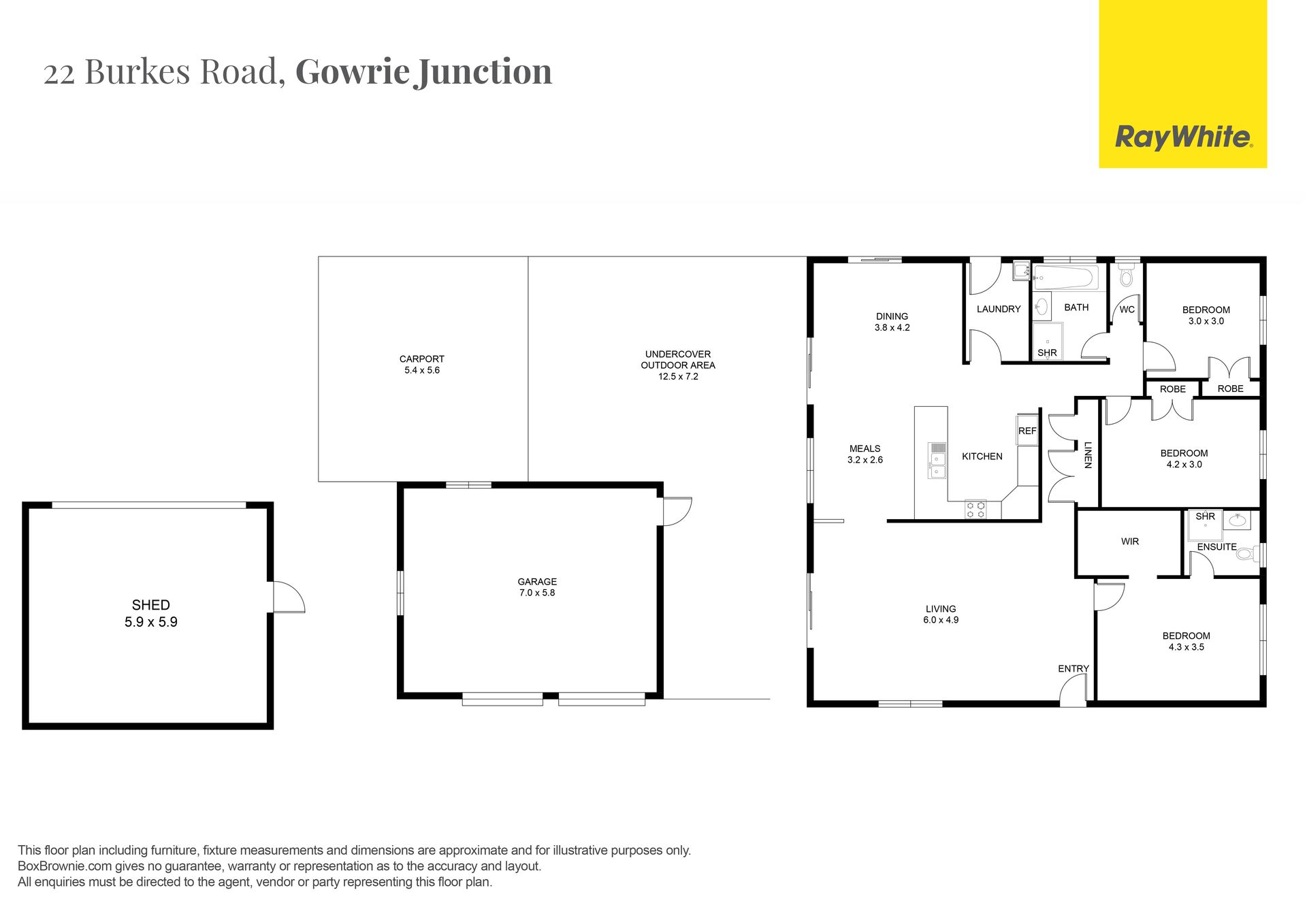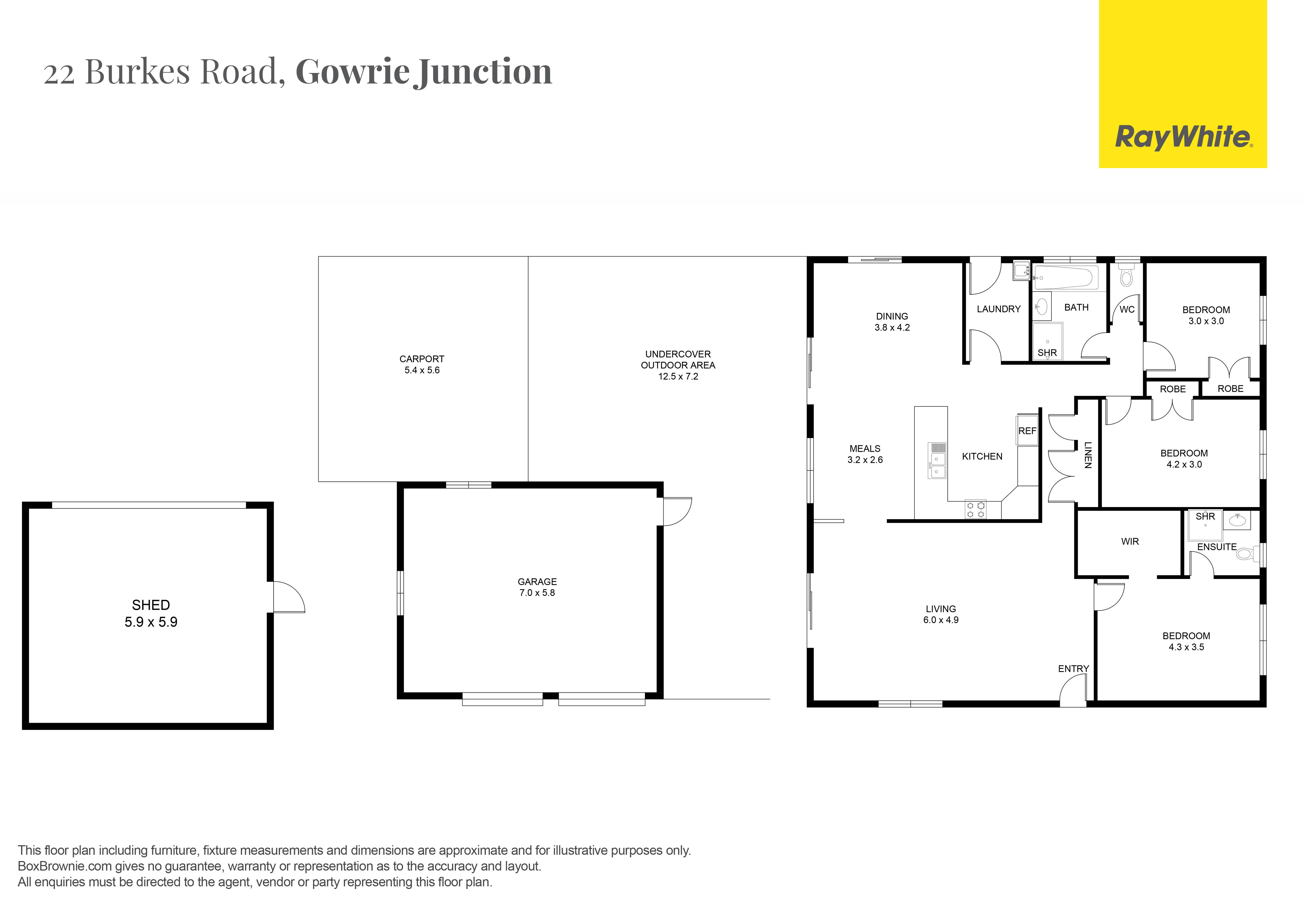 • Double lock-up garage (7.0m x 5.8m) • Additional powered shed (5.9m x 5.9m) and double carport (5.4m x 5.6m) • Huge 12.5m x 7.2m covered outdoor entertaining area • Fully fenced, flood-free 8,457m² allotment with subdivision potential (STCA - verbal TRC approval) • Town water, rainwater tank, and bore with Grundfos pump (approx. 500-550 gph) • Septic system in place • Established gardens, concrete pathways, and an incredible variety of mature fruit trees • Space and power ready for an additional large shed (STCA)
