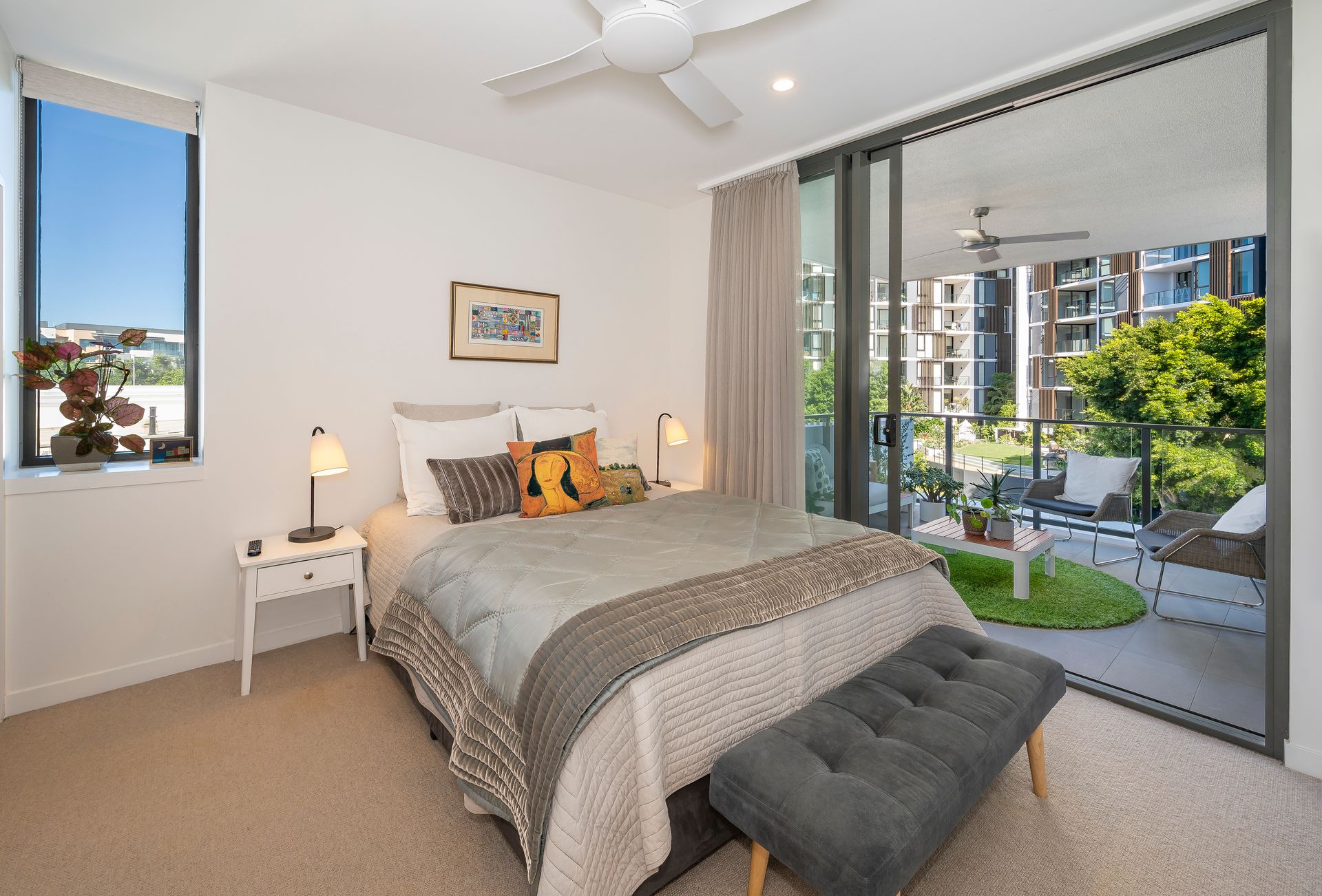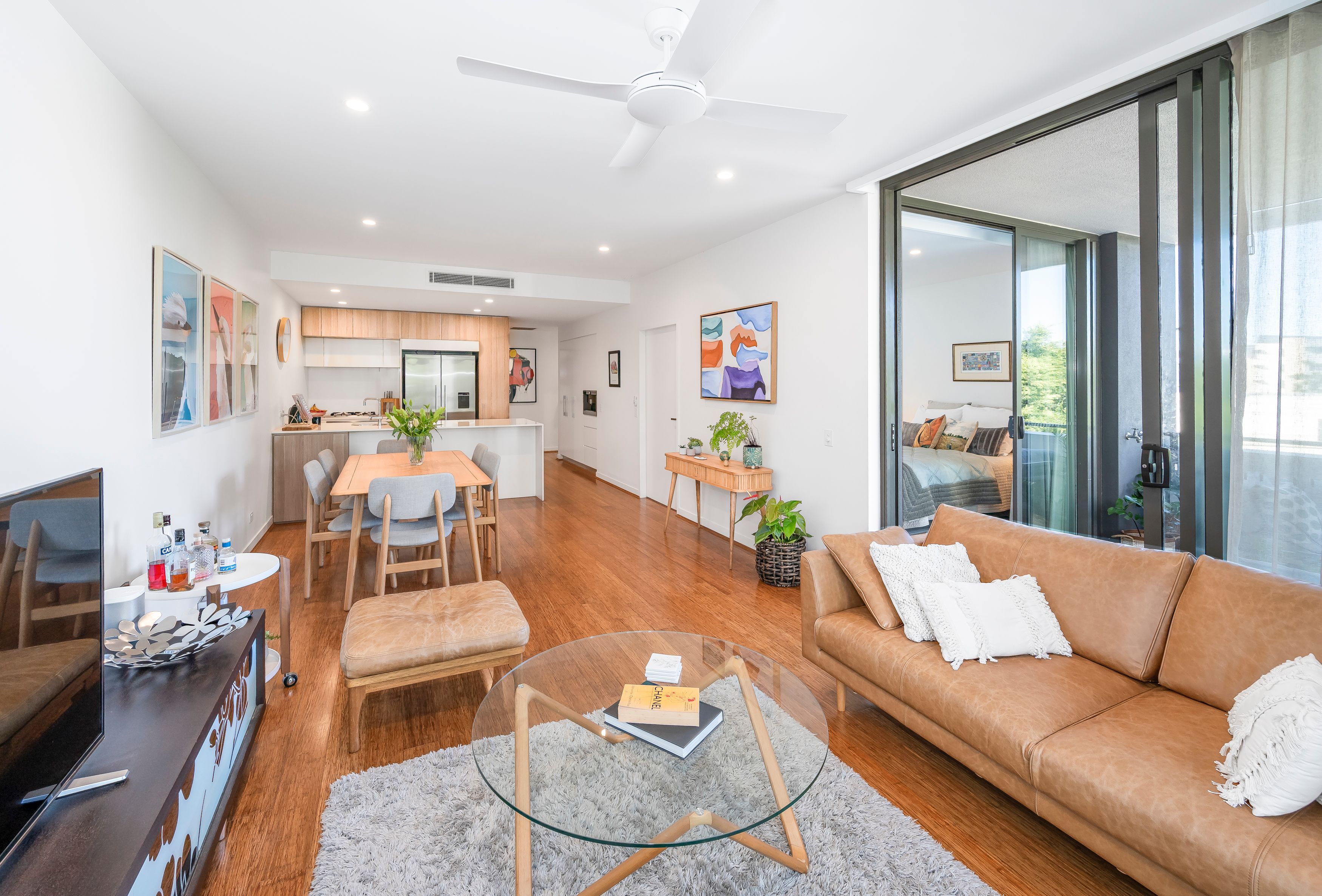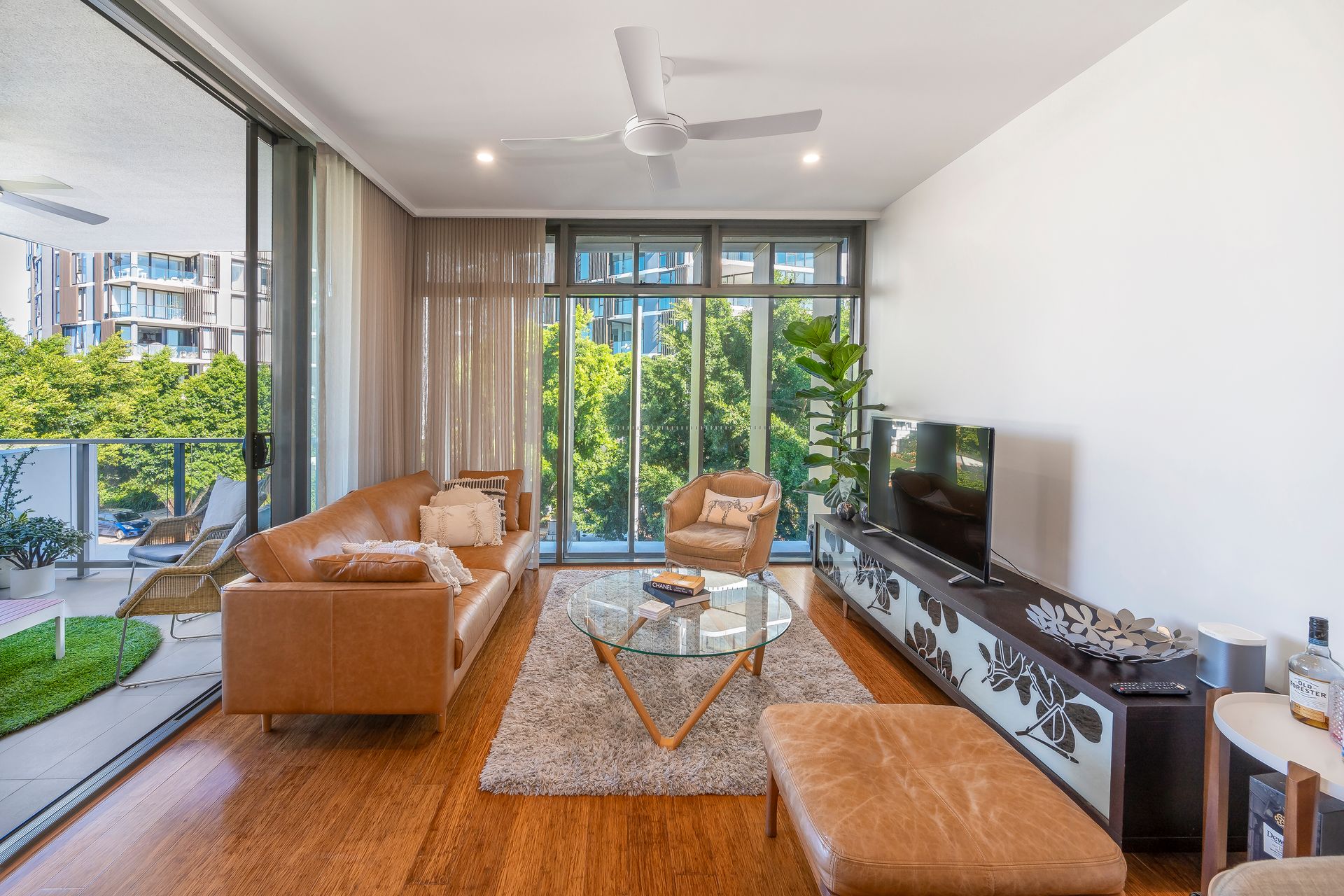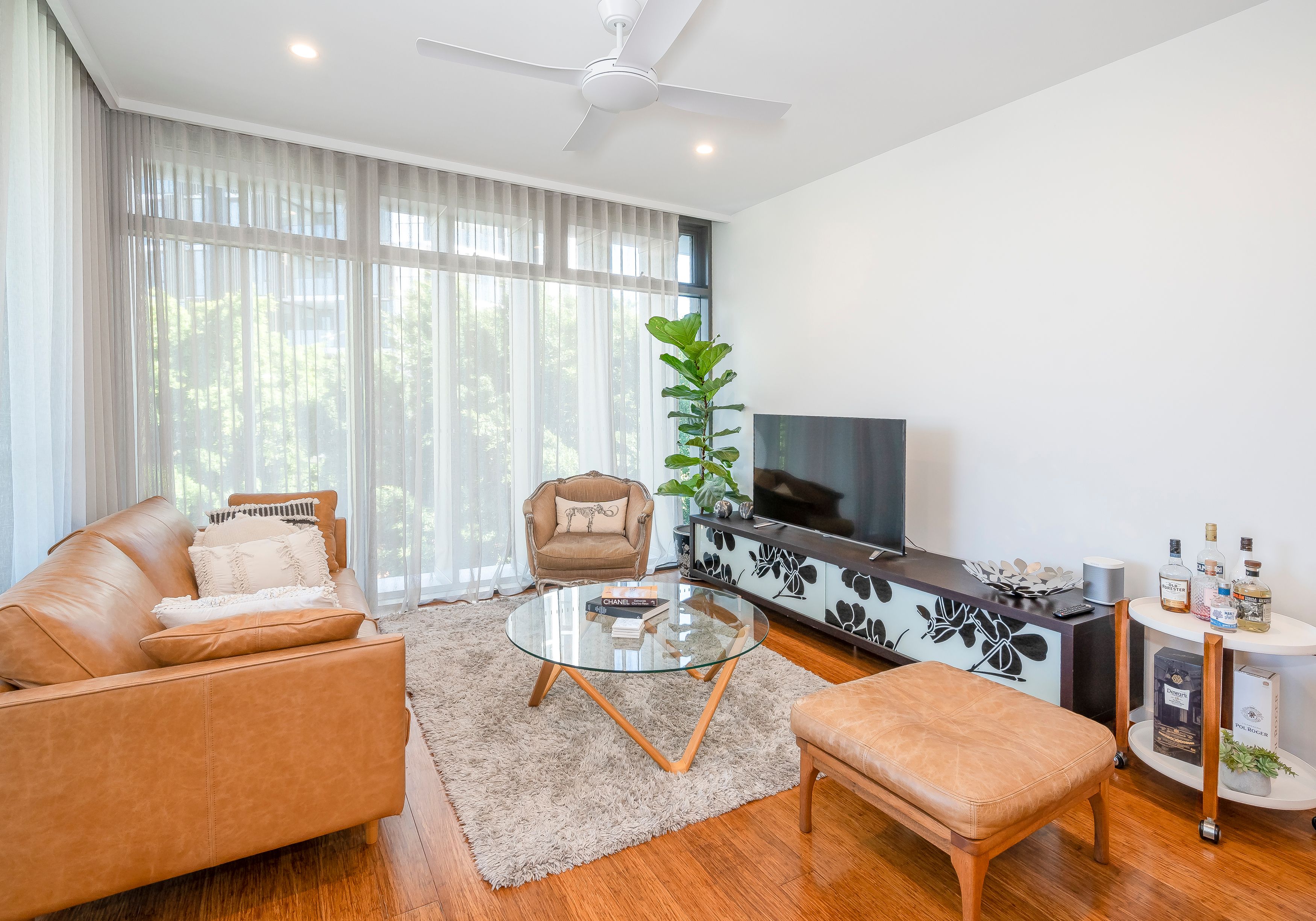Set in a peaceful tropical setting within Hamilton's Northshore, this 108m2 two-bedroom, two balcony apartment offers contemporary riverside living for a modern couple.