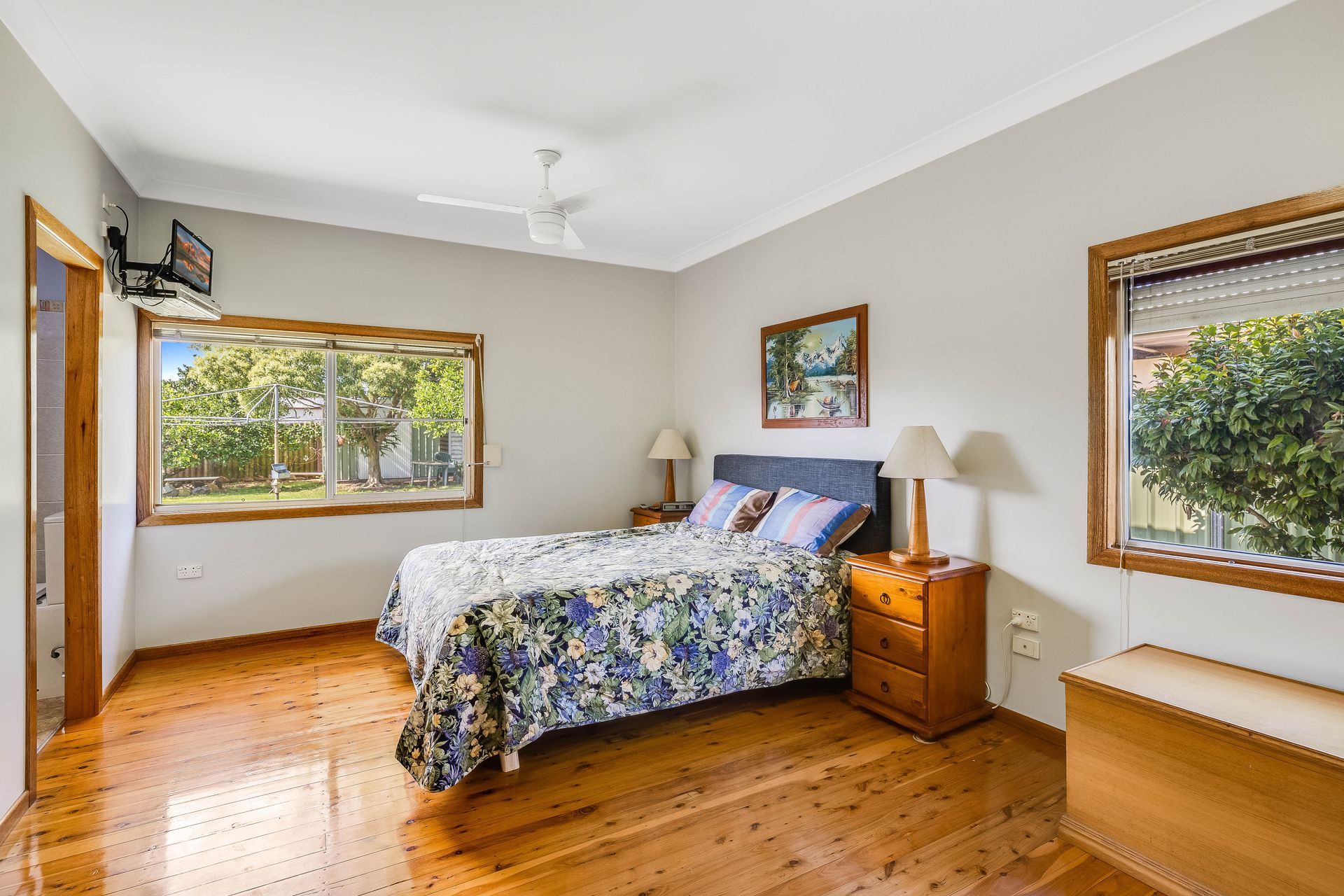 Three queen bedrooms with ceiling fans and built-in robes Main with ensuite Polished timber flooring throughout