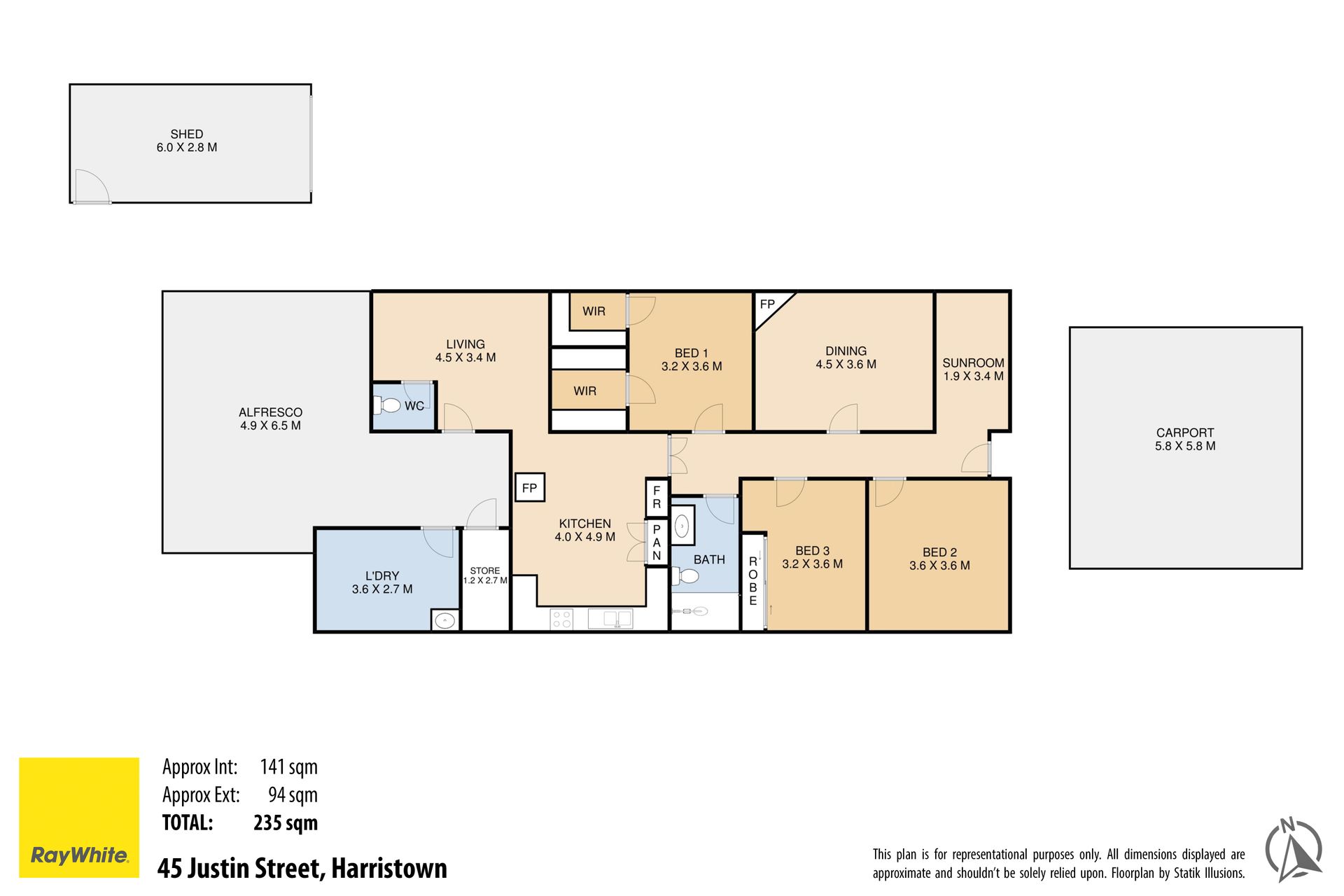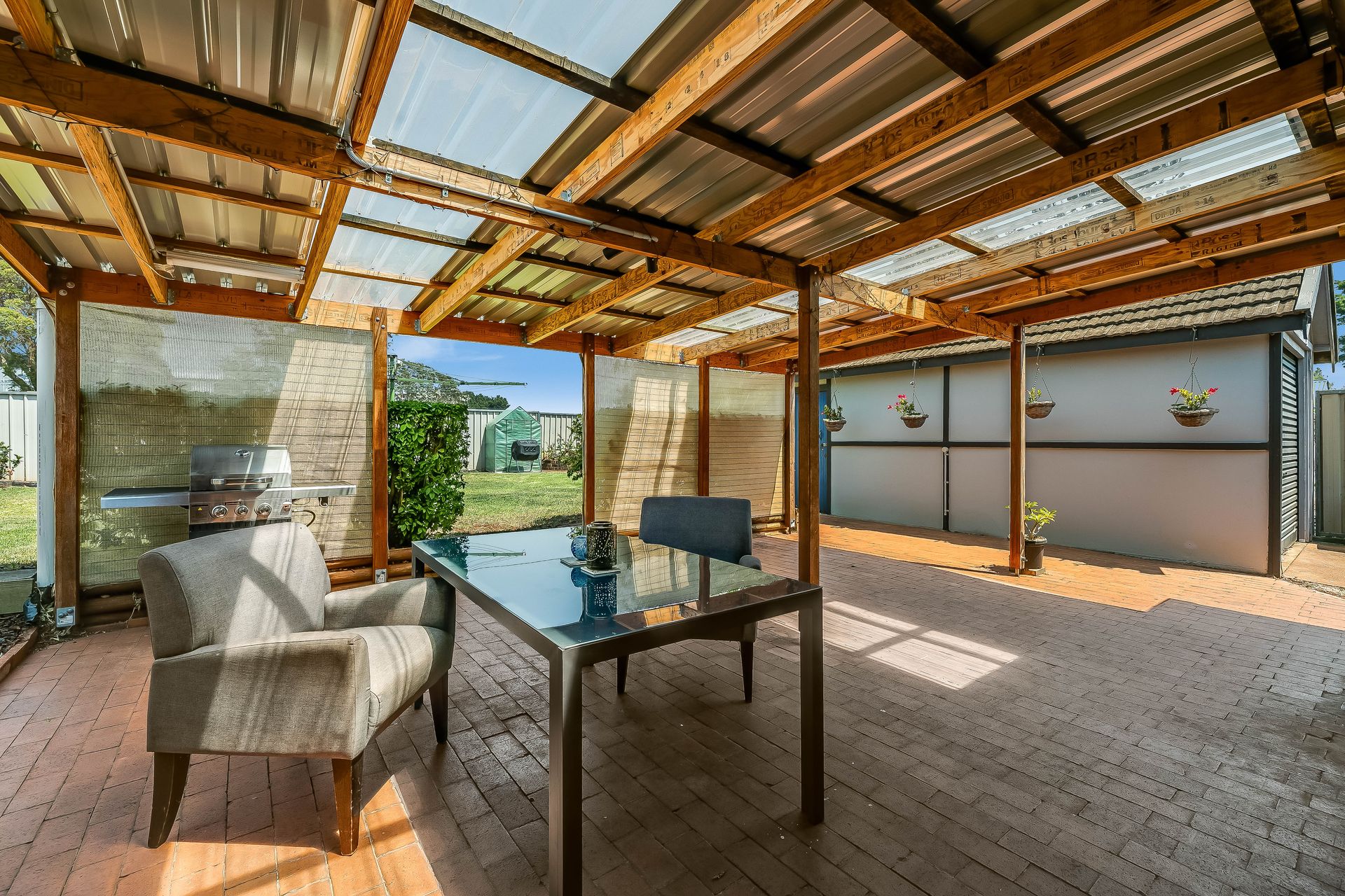 • modern kitchen with heaps of cupboard space and dishwasher • separate dining room with ceiling fan • living room with ceiling fan and wood heater • front sunroom • 3 good sized bedrooms - main with walk-in robes and air-conditioning • large covered outdoor entertainment area • fully fenced 642m2 block • double carport • side access to a single garage • low maintenance yard