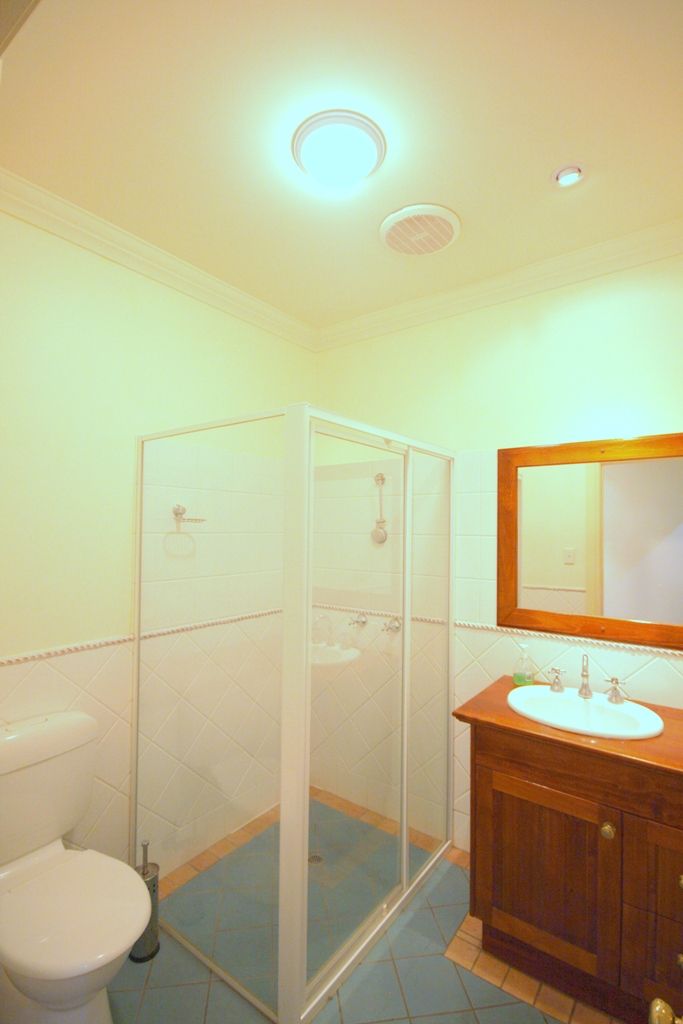 The bedroom is also completely separate and features a built in robe and a ceiling fan.