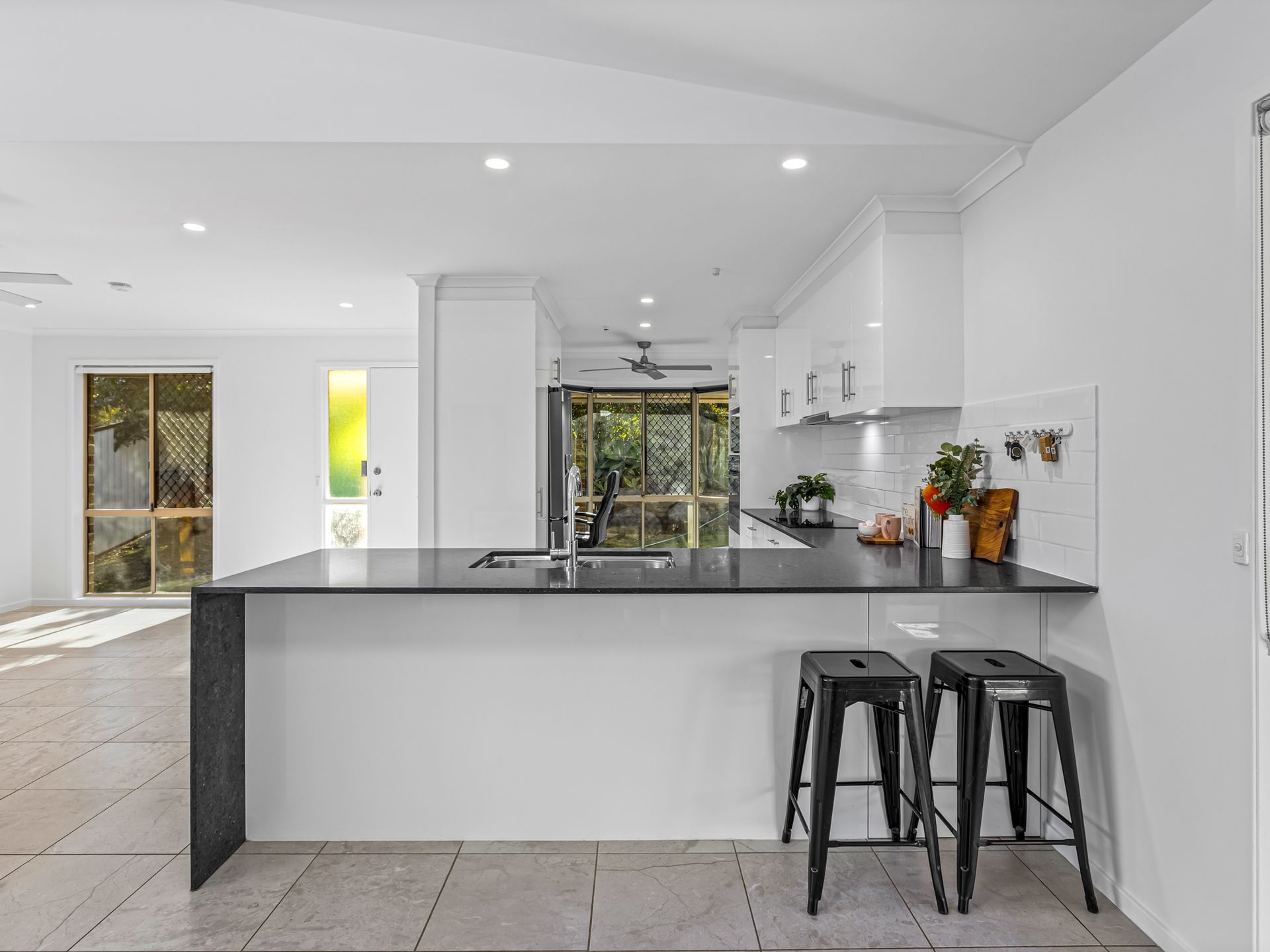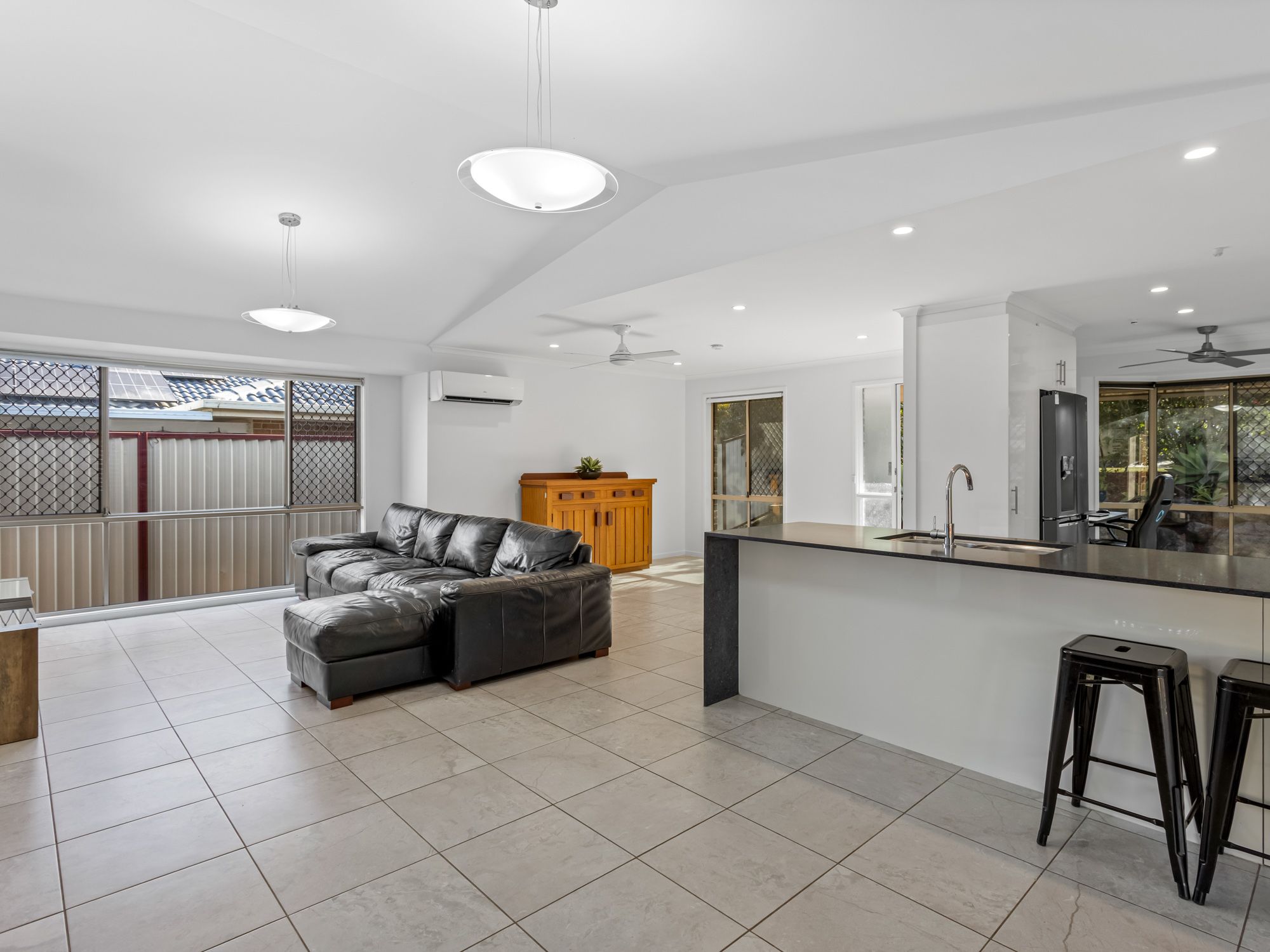 Welcome to 95 Mildura Drive, Helensvale - a beautifully appointed family home that seamlessly blends comfort, style and sustainability. Stepping inside, you'll find a light filled open living area that flows effortlessly into the heart of the home. The modernized kitchen is a standout, boasting quality finishes, ample bench space and an intuitive layout that makes meal prep a pleasure rather than a chore.