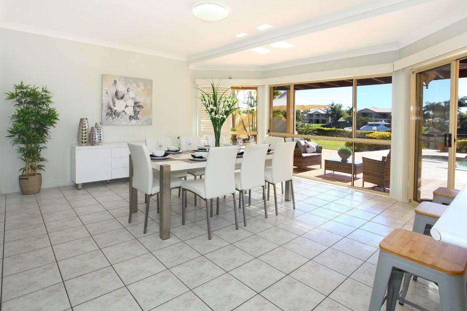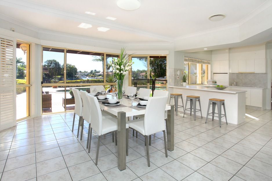 Heading back downstairs you'll be greeted with a surplus of living spaces. From the formal lounge and separate formal dining room, to the tiled rumpus room and living areas, which also features an indoor bar, there's plenty of space for the whole family to spread out. A large, sunny kitchen also runs off the rumpus area and a separate toilet and shower is also conveniently located on this lower level. Outdoors you'll be thrilled to find there's ample entertaining space around the in-ground pool, well maintained lawns while your own personal jetty awaits waterside. Other special features include: • FIRB Approved • Separate downstairs study • Fans and ducted air-con throughout • Ample storage throughout the house • 3 car remote garage • Manicured front and rear gardens on a 1158sqm block • Convenient location with shops, restaurants and amenities all close by