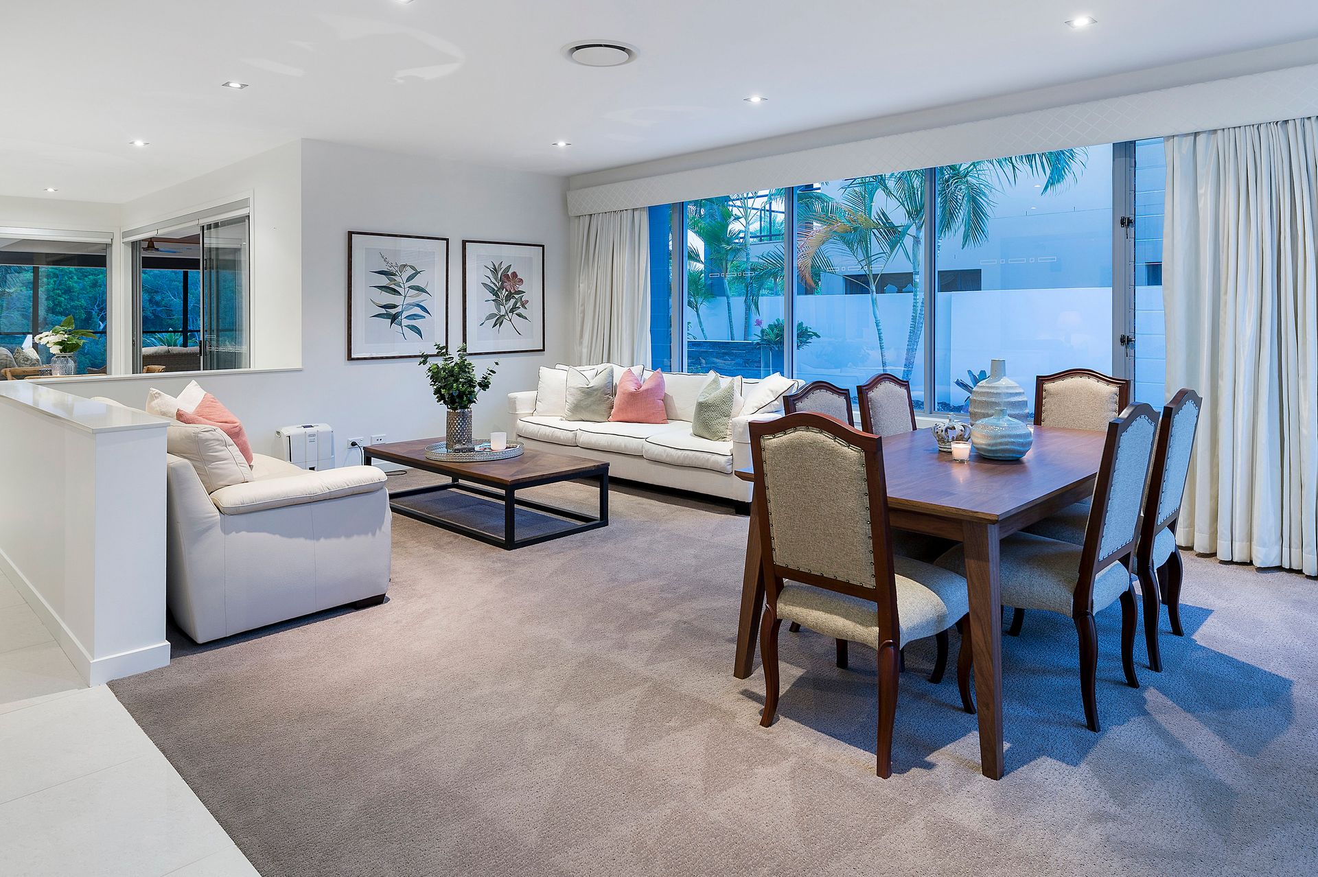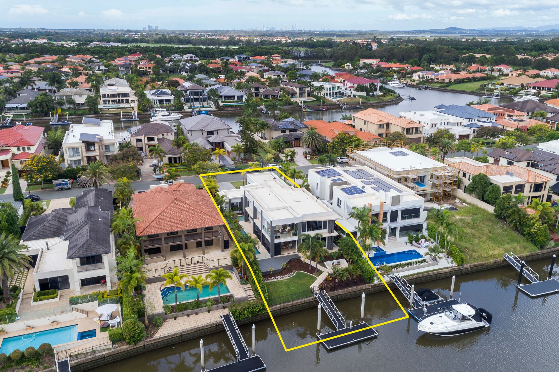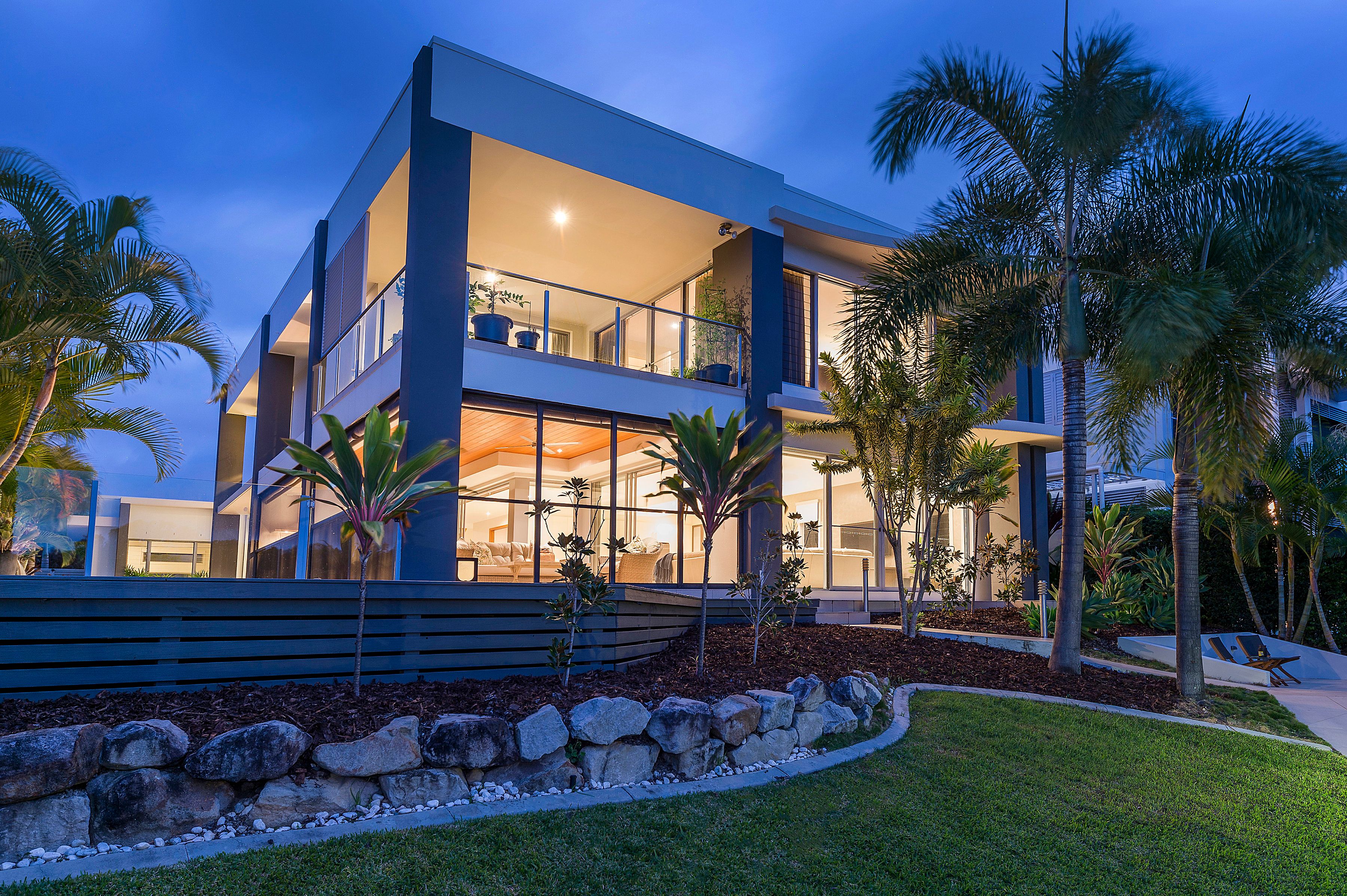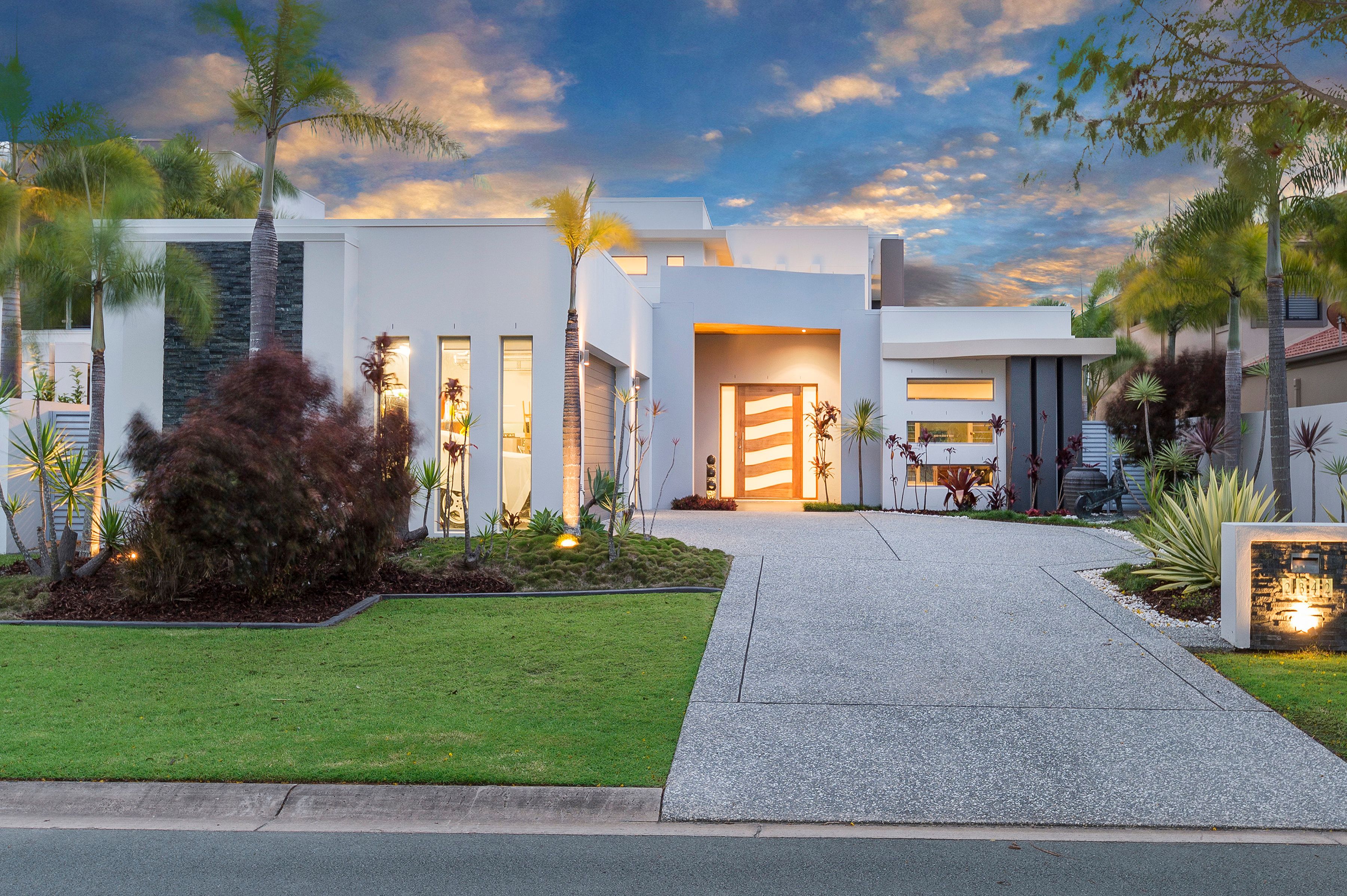 Contemporary architectural residence (approx 60 squares, 939m2 block) combines elegance with a high end design over two substantial levels. Designed with an emphasis on flexible relaxed family living and spacious outdoor entertaining. This residence offers a tranquil and private backdrop onto Thompson Island and the Coomera River, providing bridge free access to the Broadwater and Pacific Ocean beyond.