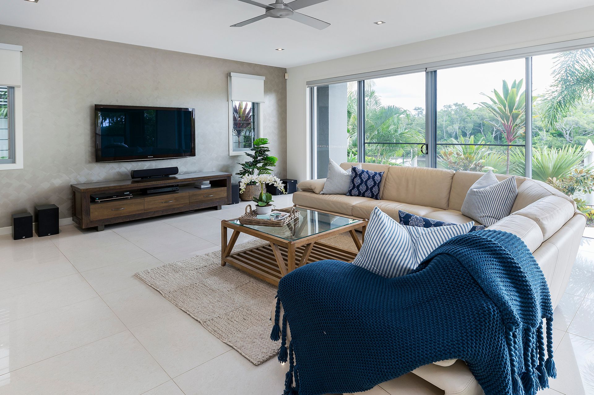 - Generous layout offering fluid interiors with a formal lounge dining, casual living and fully equipped media room - Huge master suite with en-suite and walk through robe perfect for those who love to shop - 2 additional bedrooms on the upper level with en-suite and walk in robes - Downstairs guest en-suite bedroom - Separate powder room - Chic Caesarstone gas kitchen with breakfast bar and Miele appliances - Large covered entertainers alfresco with integrated BBQ leading out to the gardens and water - Lap pool with water feature - Study/5th bedroom with built in cupboards and overlooks the pool - Big family laundry with Robinhood and plenty of storage - Oversized 3 car garage with storage - Zoned reversed air- conditioning and ducted vacumaid - 939m2 North/West to water, pontoon with power and water - Spectacular 18.5m of water frontage to the Coomera River - Available for purchase by non Australians - Back to base patrolled security throughout the resort and waterways