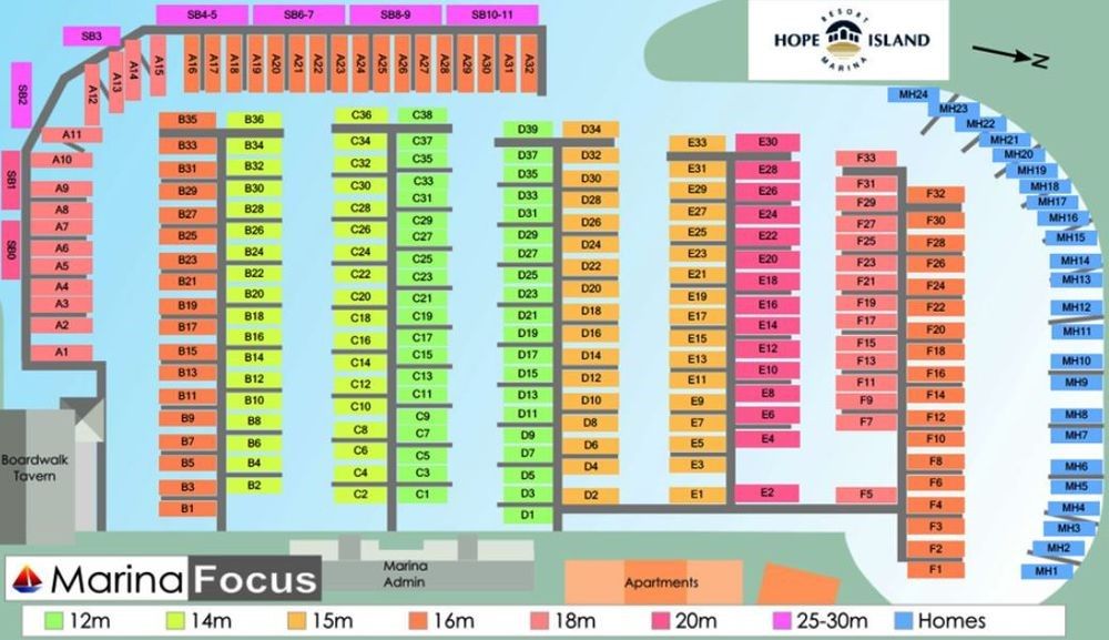These 12m marina berths are ideally located within the Hope Island Resort Marina Precinct - the berths are freehold not leasehold so you don't have to own a property in here to purchase a berth. The marina is right on the doorstep of the Hope Island Resort Shopping Centre with Coles, The Boardwalk Tavern, doctors and medical facilities, newsagent, butcher, baker deli etc and an abundance of cafes and restaurants all within close proximity.