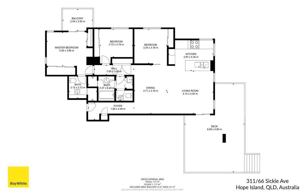 * Master bedroom with built in robes, ensuite and private balcony * 2nd and 3rd bedroom with built in robes * Open plan living which flows out to spacious and very large deck perfect for entertaining and great space for a family pet * Good sized kitchen * Air conditioning * 2x car spaces in secure undercover basement - side by side * Deck with access to side gate directly across Little Spoon Cafe * Pet friendly complex