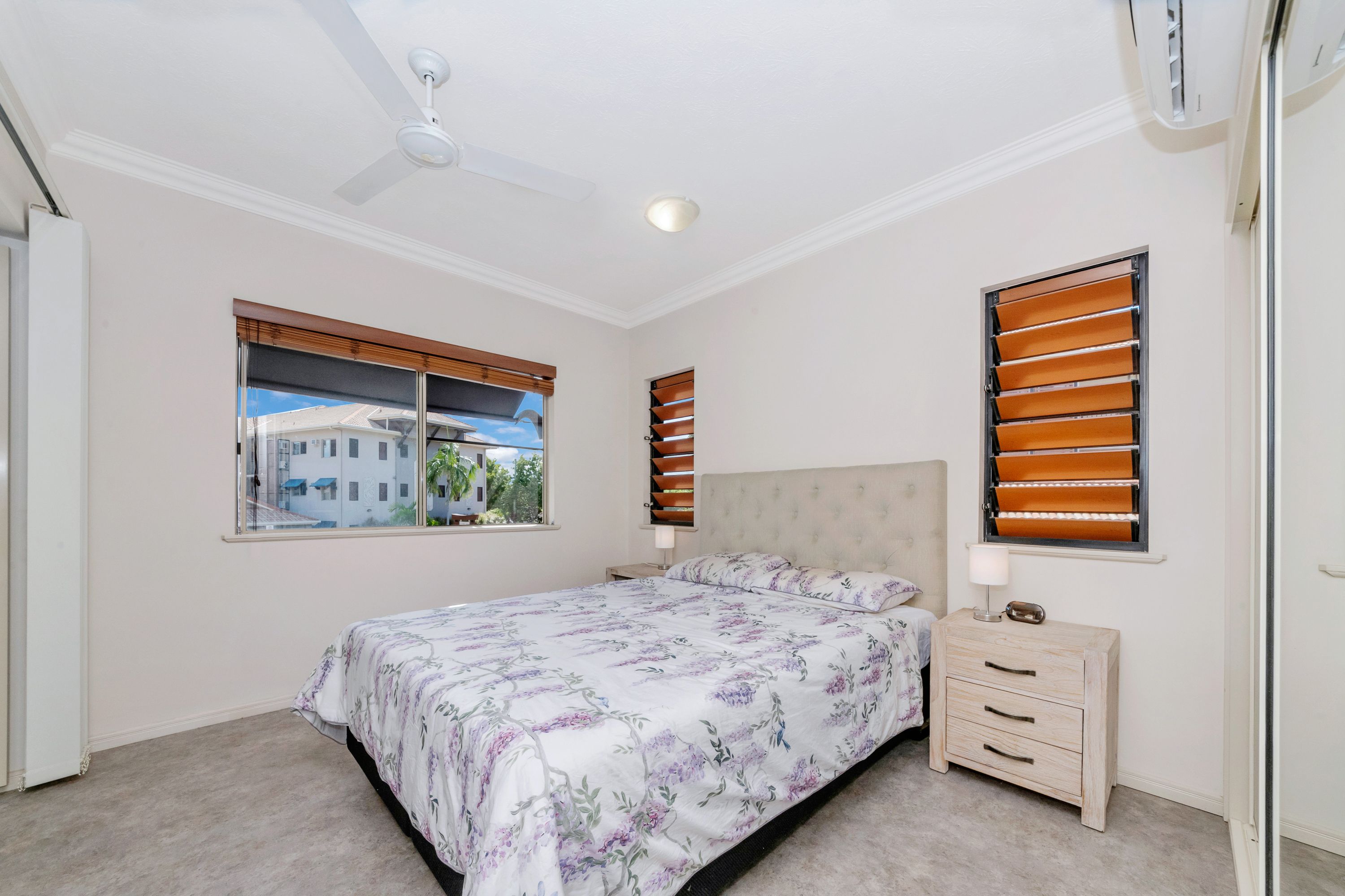 The kitchen features stainless steel appliances, lots of storage and flows into the combined dining/lounge area - leading to the outdoor/indoor patio area. Perfect for our North Qld lifestyle. As this unit is on the end of a row you have the advantage of extra windows in the both bedrooms, that not all units have ensuring you extra light and those lovely breezes. The patio itself is tastefully tiled and boasts clever bi-fold louvres that can be changed with minimal effort and ensures privacy & security without restricting air flow. Property features are: * Two good sized bedrooms, master easily accommodates a king bed * Built in wardrobes to both bedrooms * Fully air conditioned, with fans to all rooms * Lots of bench space in kitchen * Dishwasher is included for easy clean up * Pantry plus lots of cupboards * Internal laundry with space for a dryer * Ensuite to main bedroom * Second bathroom has shower & toilet * Louvred secure balcony * Secure gated complex * Resort style gorgeous pool * Undercover parking for one car each unit, plus lockable storage room