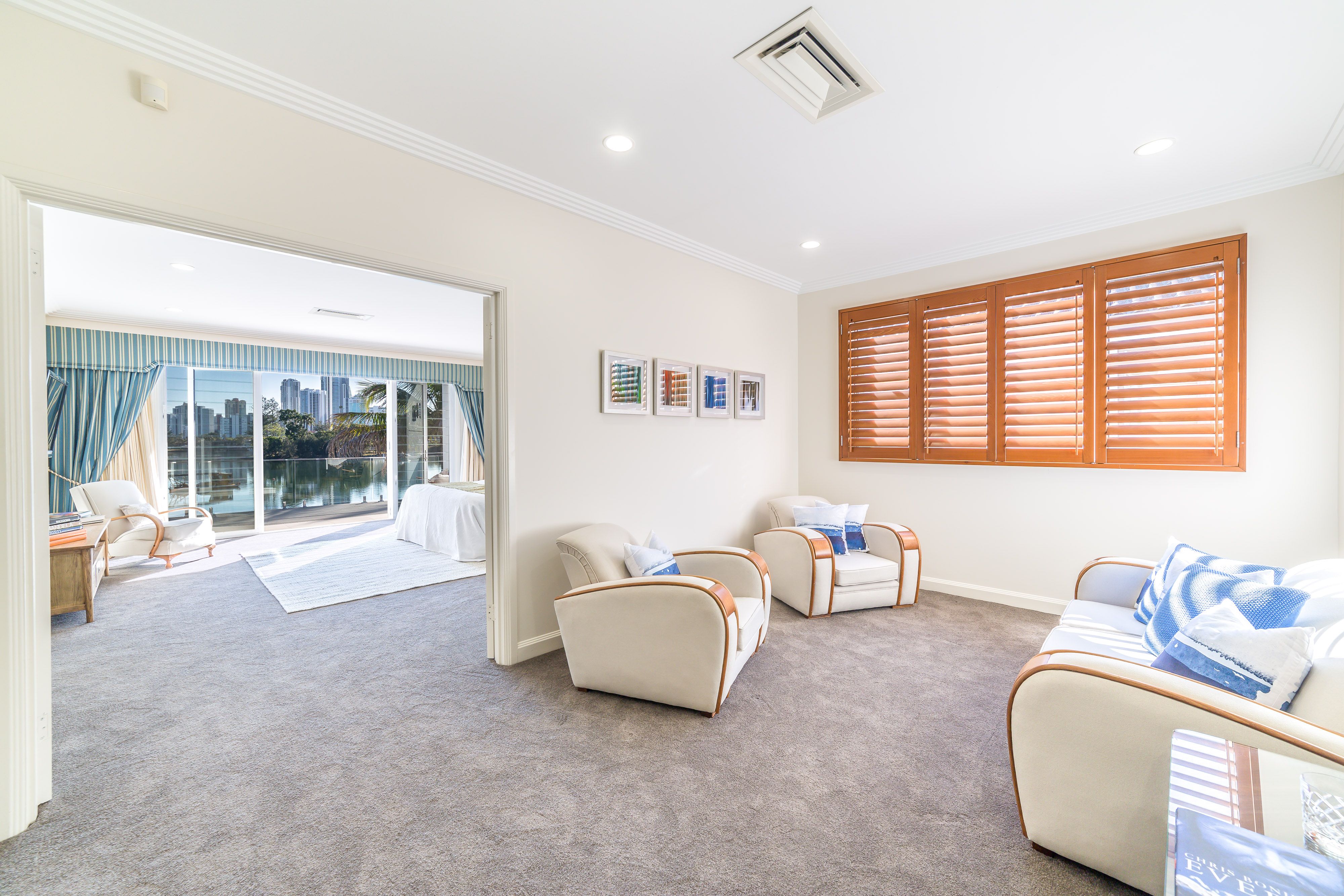 Retiring at the days end has also never looked so appealing. The master suite is showcased by full size glass panels which frame the spectacular Surfers Paradise skyline, along with a sunny terrace with water views. Accented by louvre windows, electronic curtains and a walk-in-robe, you'll also delight in the spacious marble ensuite with dual showers, double vanity and sweeping views across the waterways below. All the remaining upstairs bedrooms are large and boast high ceilings, ducted-air-con and either walk in or built-in-robes, with rooms 2 and 3 featuring joint access to a family bathroom, room 4 with it's own ensuite, and the downstairs guest quarters presenting with shared bathroom facilities.