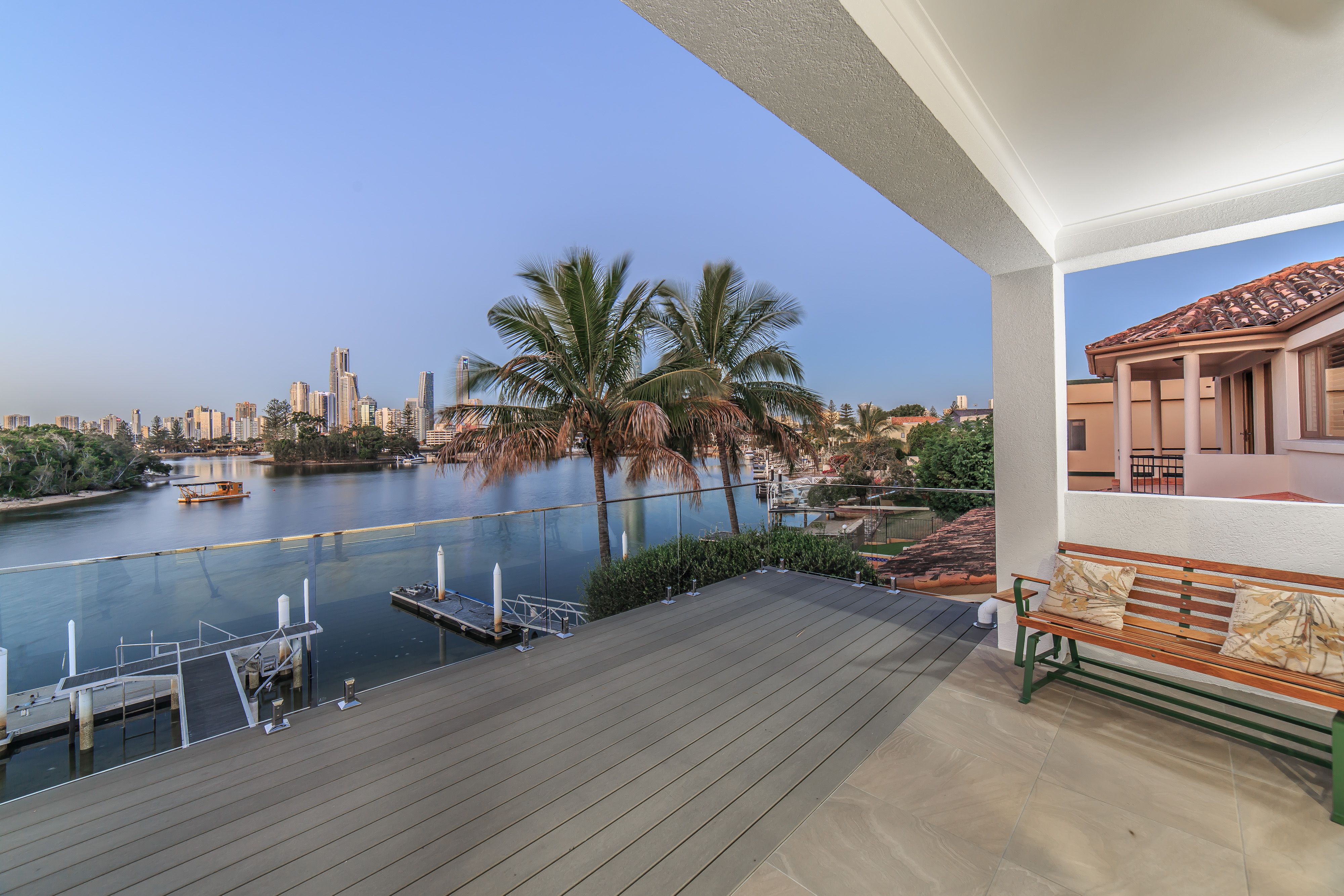 • Uninterrupted views of the iconic Gold Coast skyline visible from every angle of the open plan downstairs area • Enviable north facing aspect, set out on a 546m2 block with a 13.1m waterfront • Recently renovated & repainted, with plush new carpets, lighting & blackbutt timber floors • Chef's kitchen with bespoke cabinetry, upscale Smeg & Miele appliances • Sundrenched alfresco area overlooking pool, Adam's Basin & views to Surfers Paradise • Formal lounge with cosy fireplace plus upstairs living which could be converted to media room • Grand master suite with balcony, water views, walk-in-robe, ensuite with marble finishes • Remaining bedrooms with high ceilings, ducted-air-con, built-in-robes + ensuite in bed 5 • Large pontoon & jetty with power, low maintenance gardens • New lighting installed, an abundance of storage, keyless entry & back to base security • Solid concrete construction plus potential to be renovated to include a 3rd floor & internal lift • Sought after suburb, close to exclusive schools, shops, cafes, parks, beaches & public transport Disclaimer: This property is being sold by auction or without a price and therefore a price guide cannot be provided. The website may have filtered the property into a price bracket for website functionality purposes. We have in preparing this information used our best endeavours to ensure that the information contained herein is true and accurate, but accept no responsibility and disclaim all liability in respect of any errors, omissions, inaccuracies or misstatements that may occur. Prospective purchasers should make their own enquiries to verify the information contained herein.