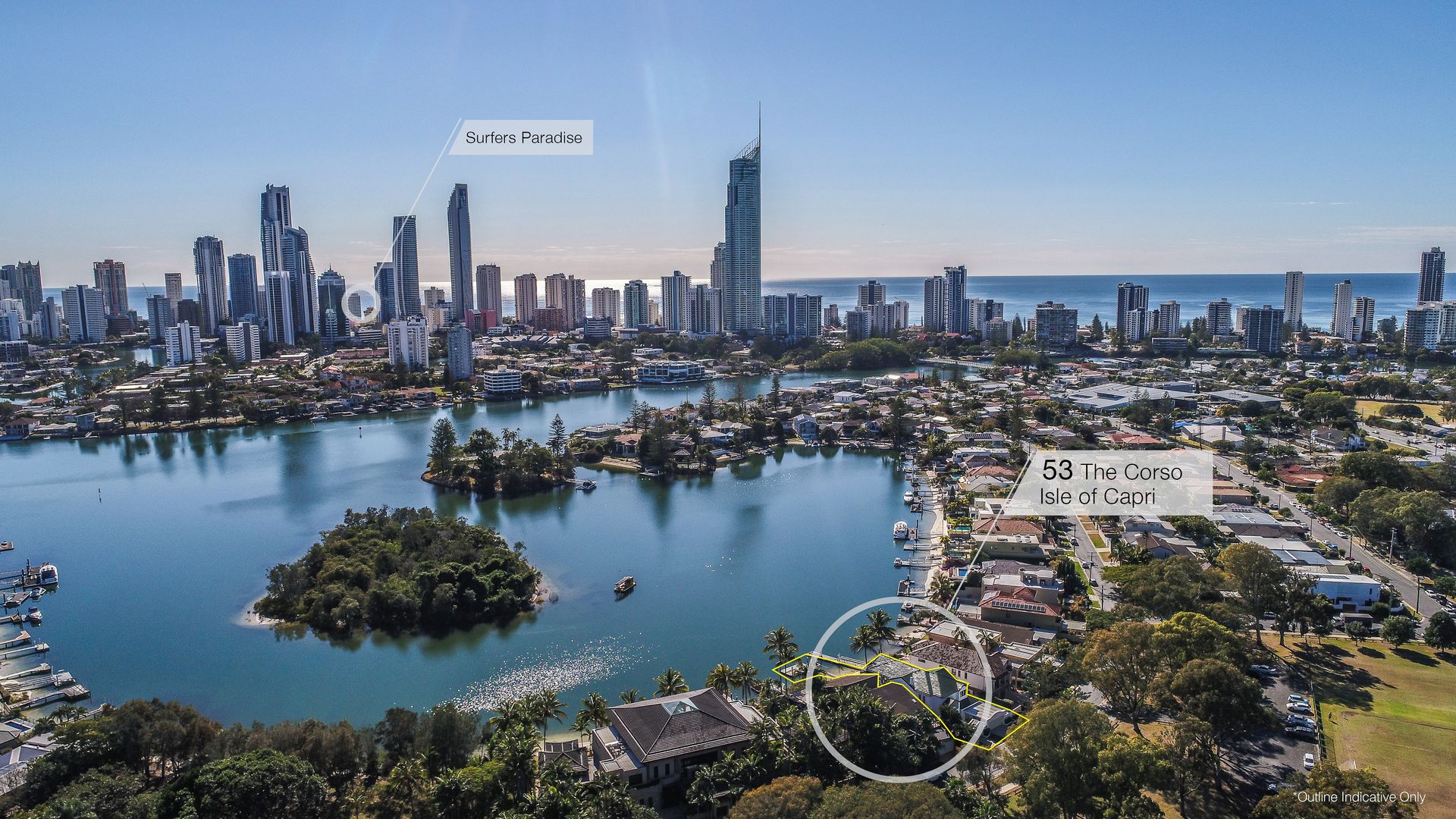 UNRIVALLED VIEWS & NORTH FACING ASPECT IN SOUGHT-AFTER ISLE OF CAPRI. Prepare to be speechless from the moment you step inside this sprawling, recently renovated two-storey home in sought-after Isle of Capri. Boasting uninterrupted, picturesque views of the iconic Gold Coast skyline via the vast floor to ceiling expanse of glass which runs the entire rear of this residence, you'll immediately fall in love with this unrivalled panorama, visible from every angle of the open plan downstairs area. Nestled right on the water, and featuring flawless marble and man made finishes, brand new blackbutt timber floors plus an enviable north facing aspect, this superb family home is sure to spoil you for anything else.