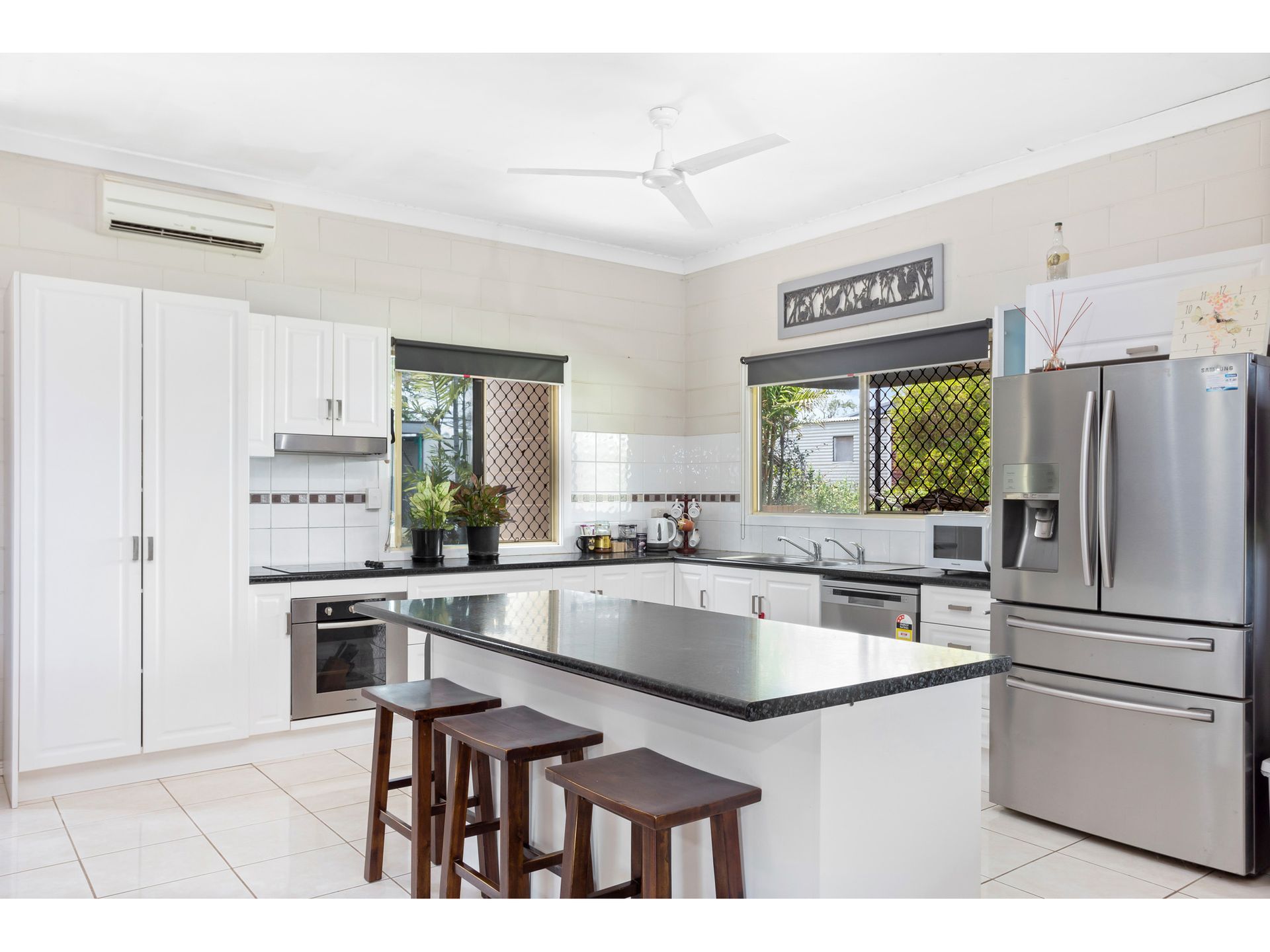 An easy living, fully air-conditioned, family home with 3 huge bedrooms is ready and waiting for your family, the dogs and the horses to move in. The modern kitchen, with island bench, flows through to the dining and lounge area. With high ceilings throughout the home and a wide hallway it all feels so spacious. Depending on the mood and time of day you can perch up on the front verandah for a coffee or head out back to the undercover entertaining area and enjoy the relaxing rural outlook. The bathroom follows the general theme of the house and is a good size. Just beside this is the internal laundry which leads out to the double lock up garage. Behind the fully fenced house yard is a 3 bay shed with a free standing, 2 bay lean-to on the side, 2 stables, day yards and paddock. Water needs are well met with both bore and rainwater. If you need a base when you come to town, if you would like to retire to small acreage or if the family needs some space, this place could well suit your needs. This property is less than 10 mins from Gracemere and 20 minutes to Rockhampton. Don't miss out!