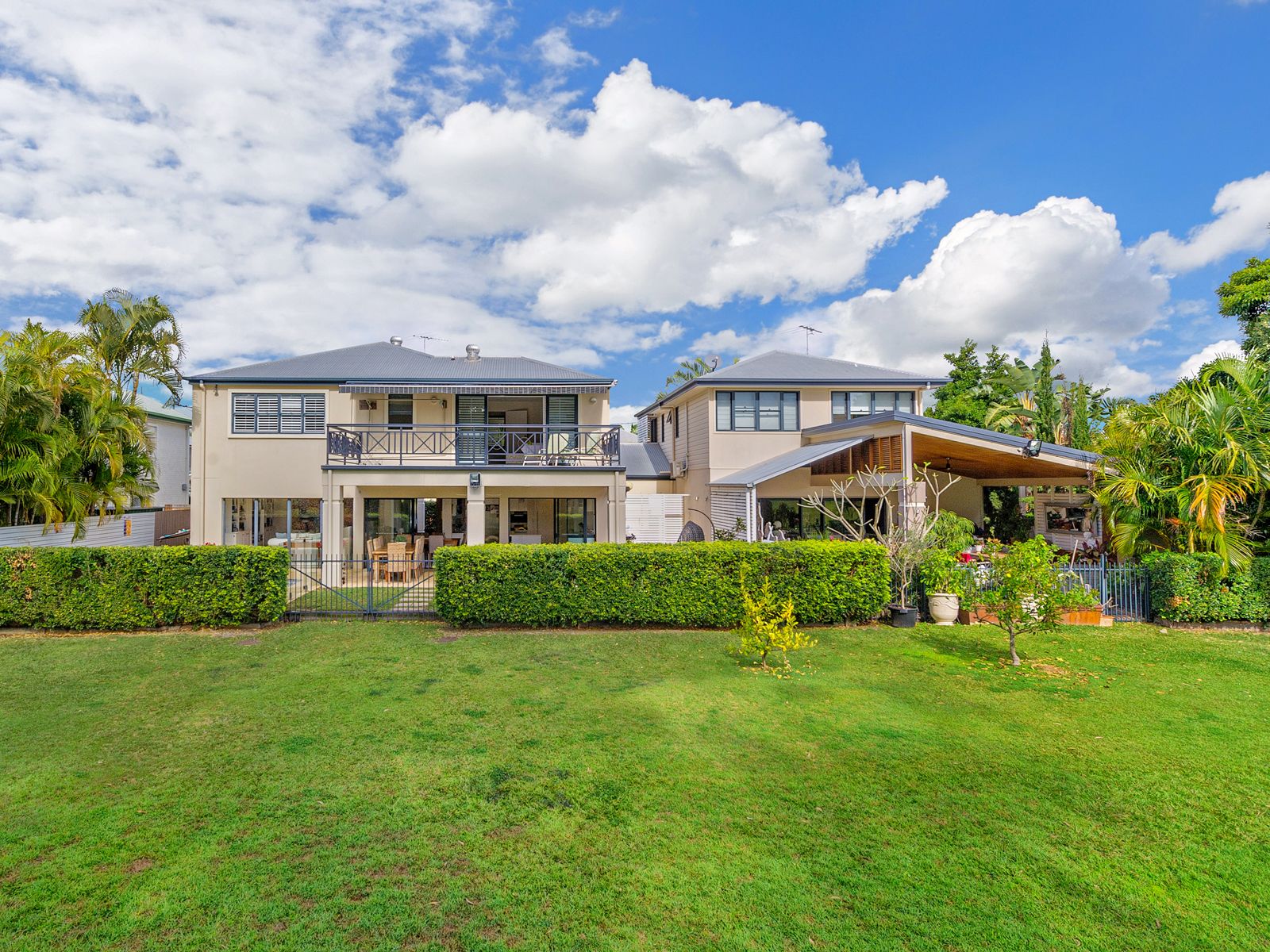 Enjoying 25m absolute Kalinga Park frontage, this superb position offers two homes on one block, designed by award-winning architect Harry Poulos. This is a luxurious statement of elegance in one of Brisbane's most desirable blue chip precincts.