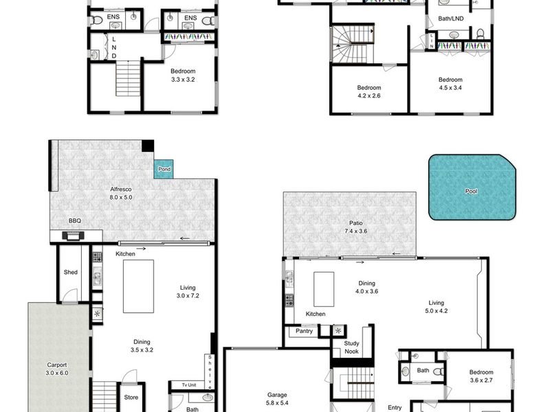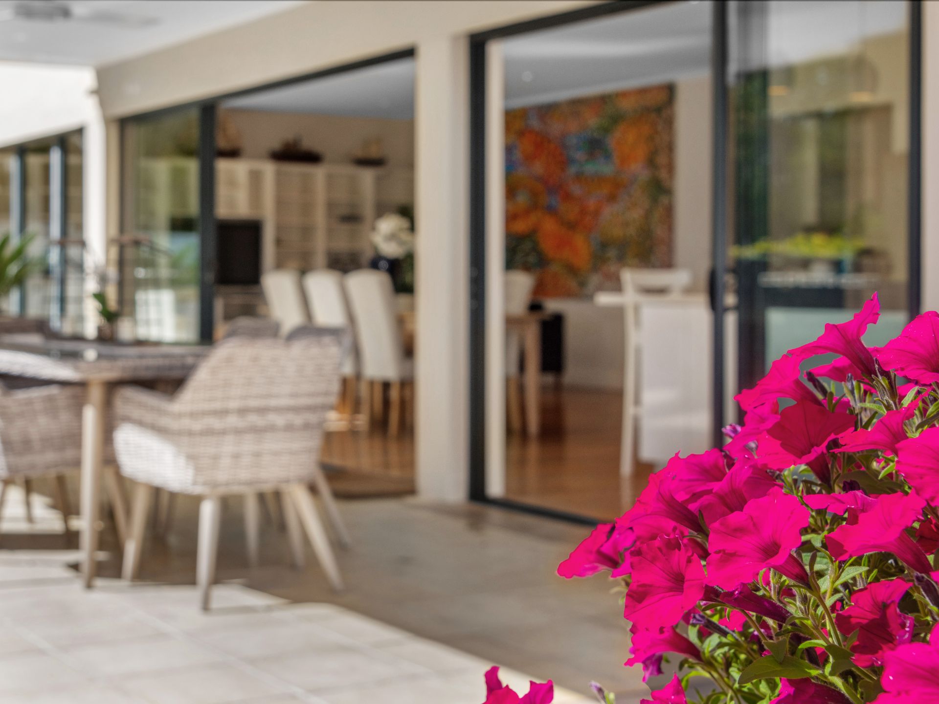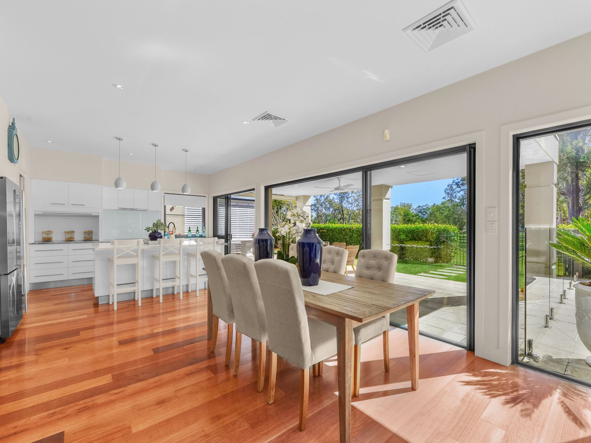 The adjoining but freestanding guest home was designed with growing teenagers in mind, offering seperate accomodation of a further two bedrooms and three bathrooms, fully self contained. This is ideal for guests, live in parents, nannies or an additional rental income if desired.