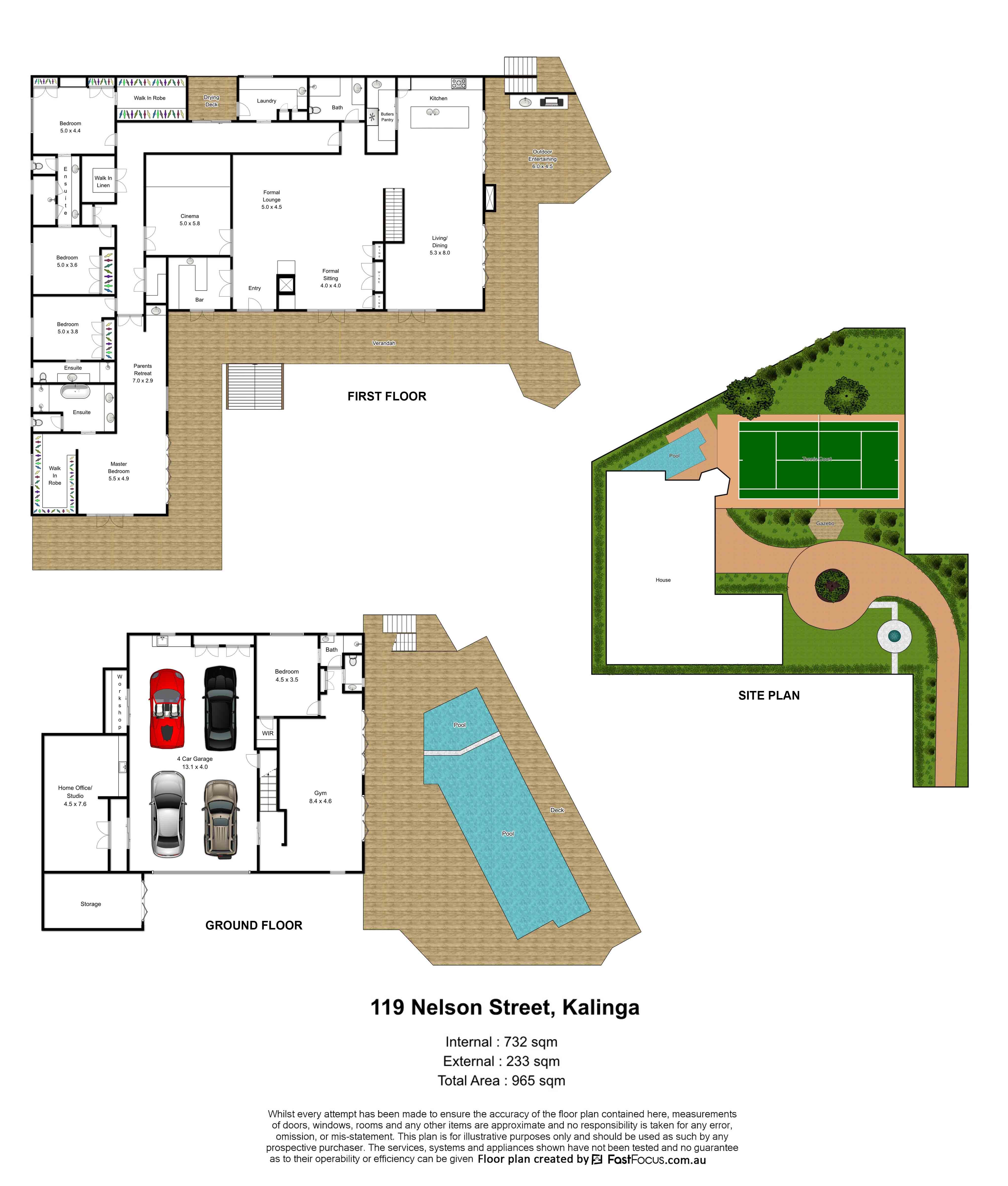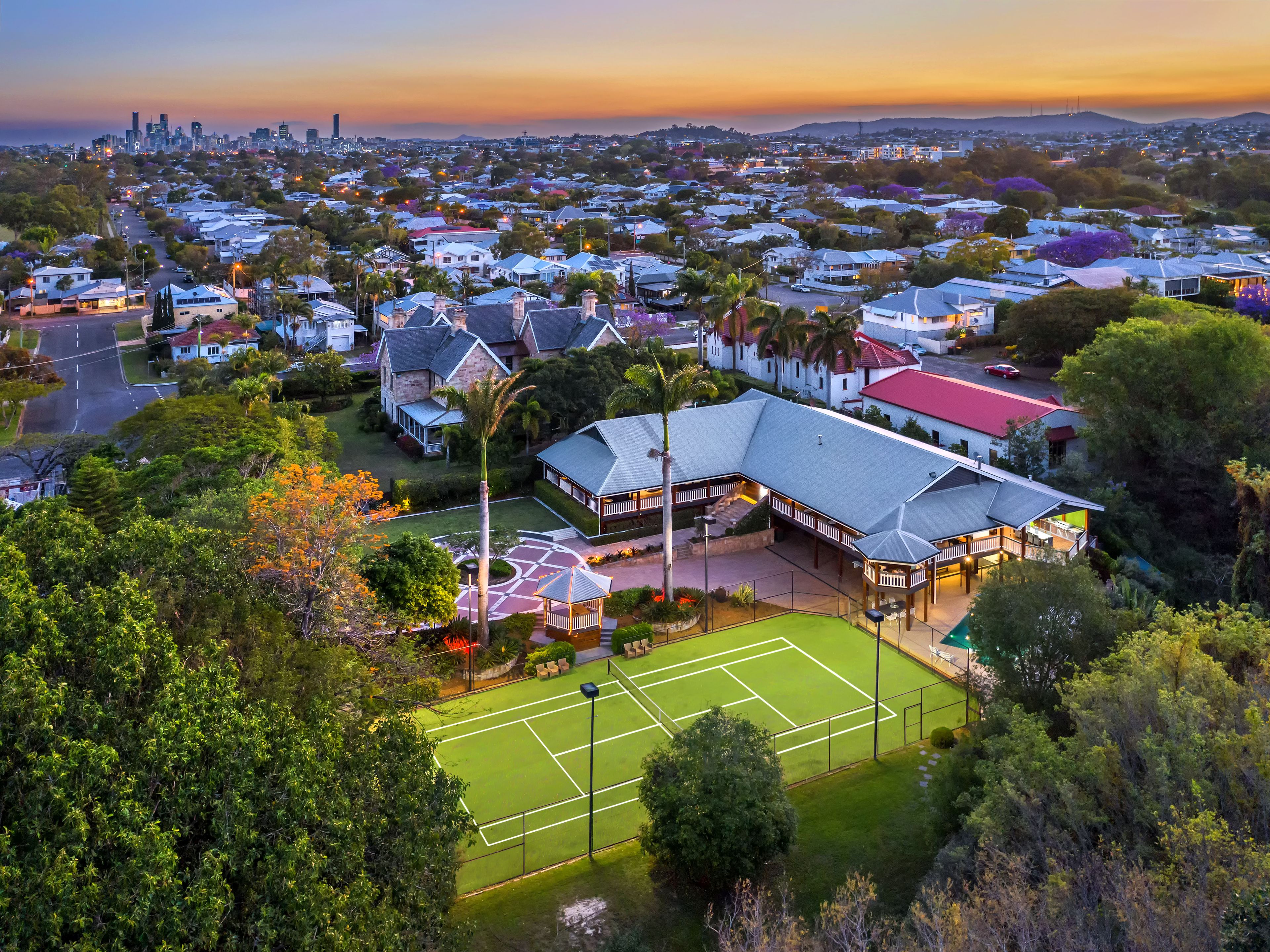 * Land size: 3,383sqm directly bordering Kalinga Park * Wimbledon sized floodlit tennis court * In ground Pool with spa and twin cabanas * Wide covered verandahs on three sides, north facing * Fully equipped Gymnasium and 4k High Definition Theatre * Separate Self-Contained Suite / Home Office with kitchenette on lower level, separate entry * Fireplaces, Wine Cellar, Bar Room, Library * Ducted Air-Conditioning * 4 car lock up garage, and 6 car off-street parking * 12 camera CCTV security, high perimeter fences, front gate video intercom * Under-house water tank with pump and garden irrigation system