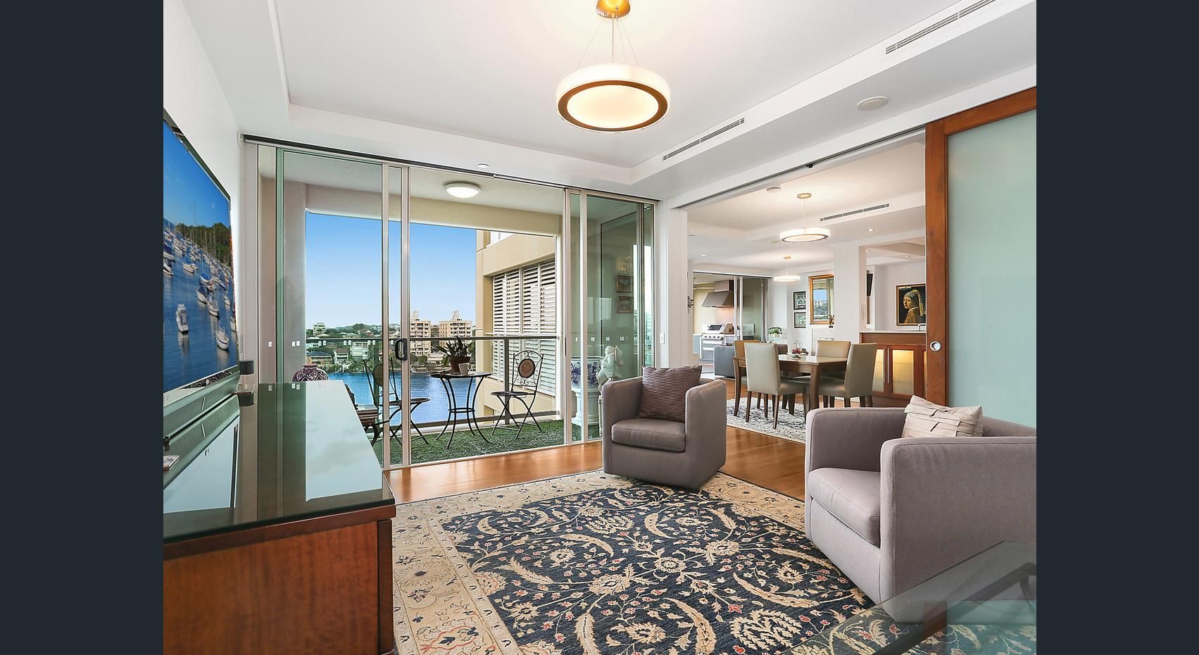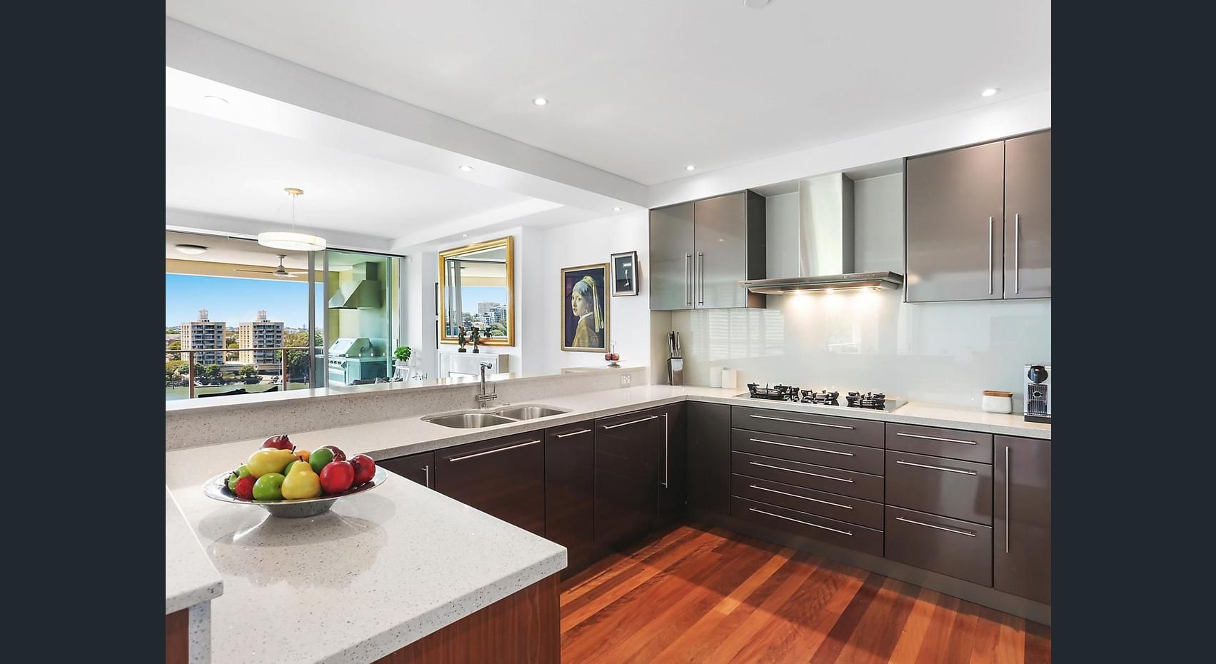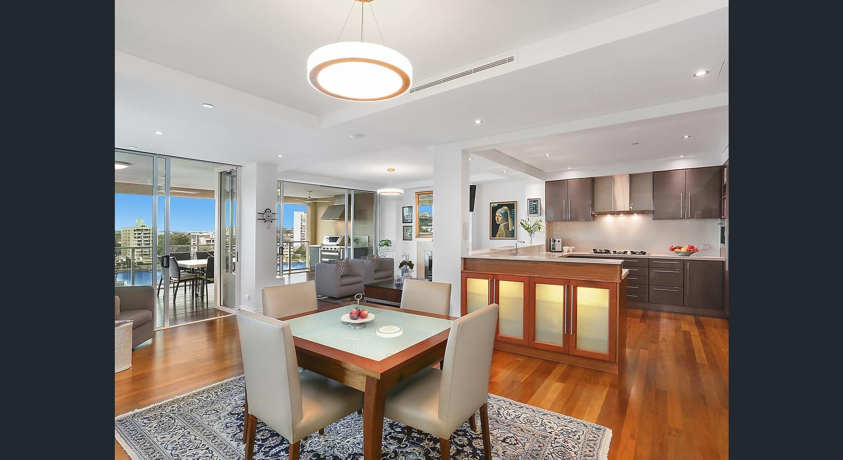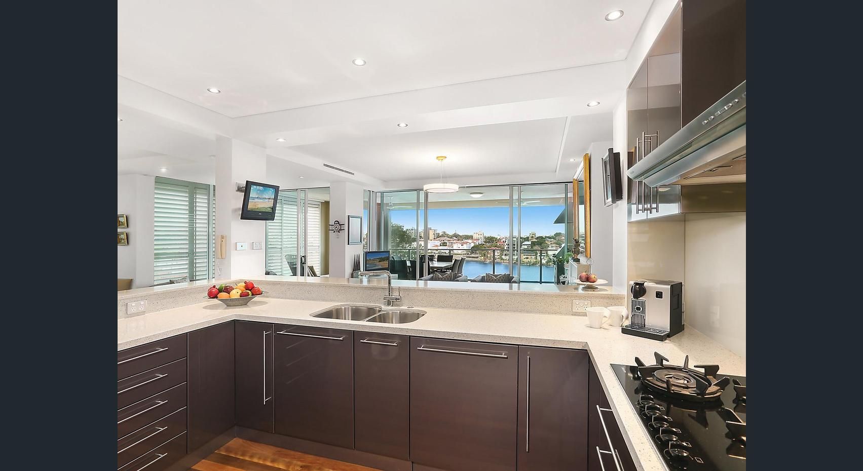 Features include: - Deluxe gourmet kitchen with sleek cabinetry including Integrated Miele oven, dishwasher, microwave and coffee machine & Caesar stone bench tops. - Marble Ensuite - Gas Fireplace - Cbus lighting - Ducted air conditioning - Only Two apartments per floor - 4 Balconies - Double Lock up garage with additional storage space moulded floor and shelving - Marina berth included - New apartment lights upgraded to LED - New window furnishings - Repainted - Built in wall unit in the living area and TV Unit in lounge - Master bedroom robe has additional shelving - Balcony BBQ built in with bar fridge