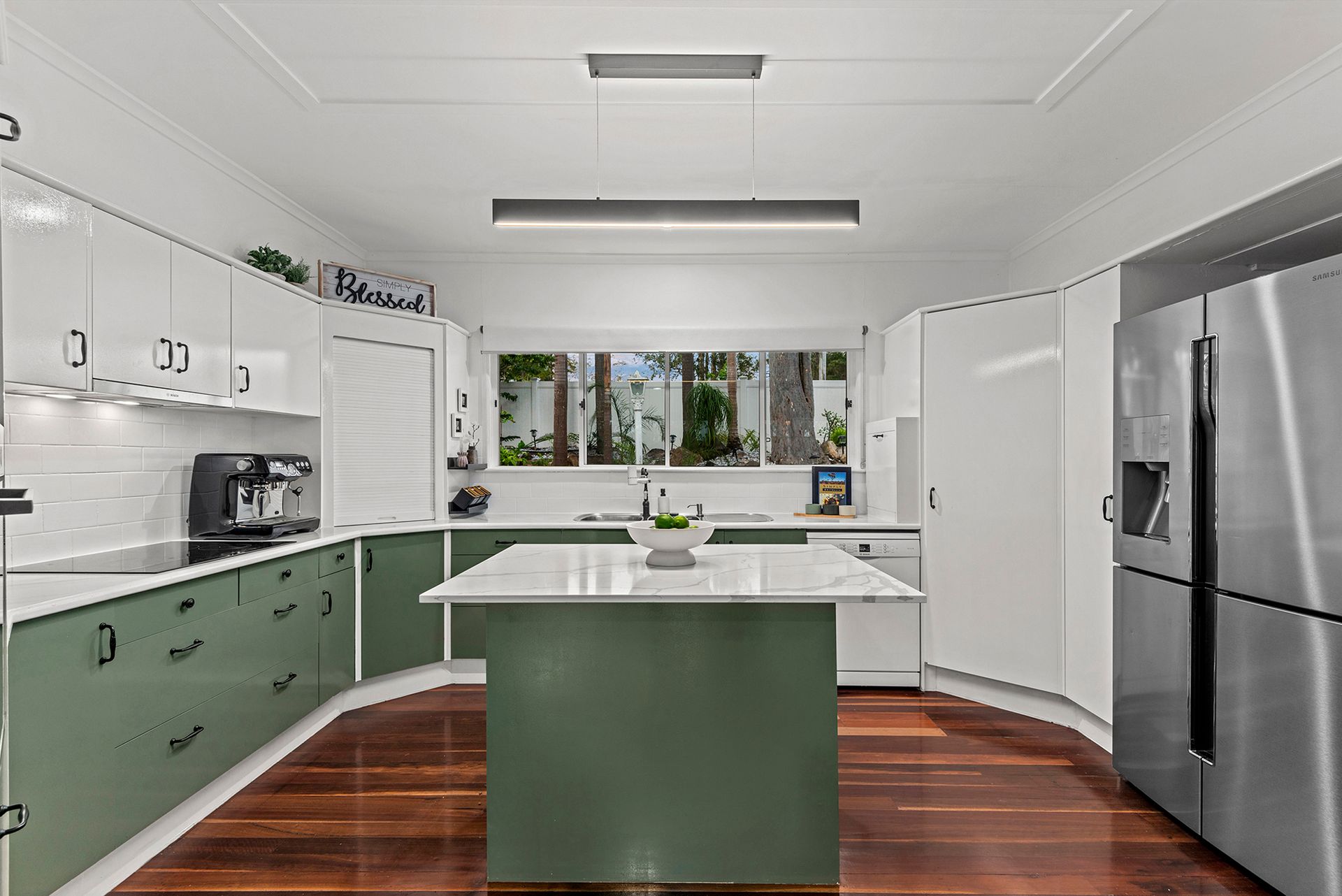 Elevated and strategically positioned, the residence boasts a spacious verandah that embraces sweeping treetop panoramas. The lower level provides a self-contained multi-purpose area, offering ample storage, room for DIY enthusiasts, or the option for expansion. In its current well-maintained state, this property serves as your secluded haven, just moments away from the bus stop, Chapel Hill State School, and Kenmore shopping.