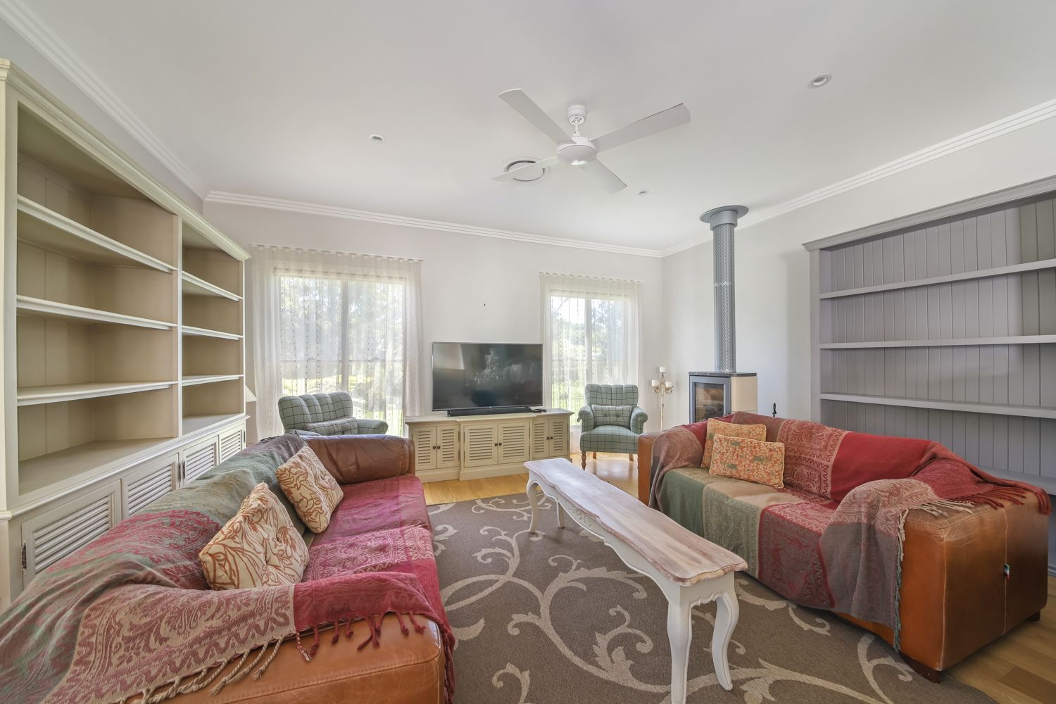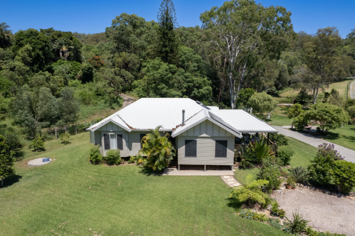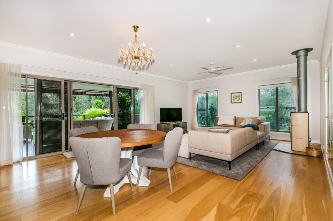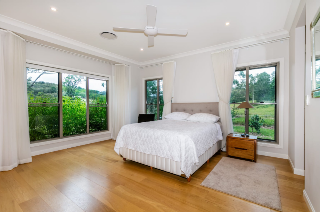 • High Ceilings • Beautiful open plan kitchen with stone benchtop • Steel Frame • 2 bedrooms with built-in wardrobes, sharing a spacious bathroom with a waterfall shower head • Large Master bedroom with bay windows, a large walk-in wardrobe and ensuite with his and her vanity • Luxury chandeliers & dim lighting in all rooms • Polished wood flooring • Private dam with a pump • Electric gates • Fenced back paddock • Security system • Native gardens • Fruit trees • Double lock-up garage • Extra high carport off the garage for storage of a boat, truck or caravan