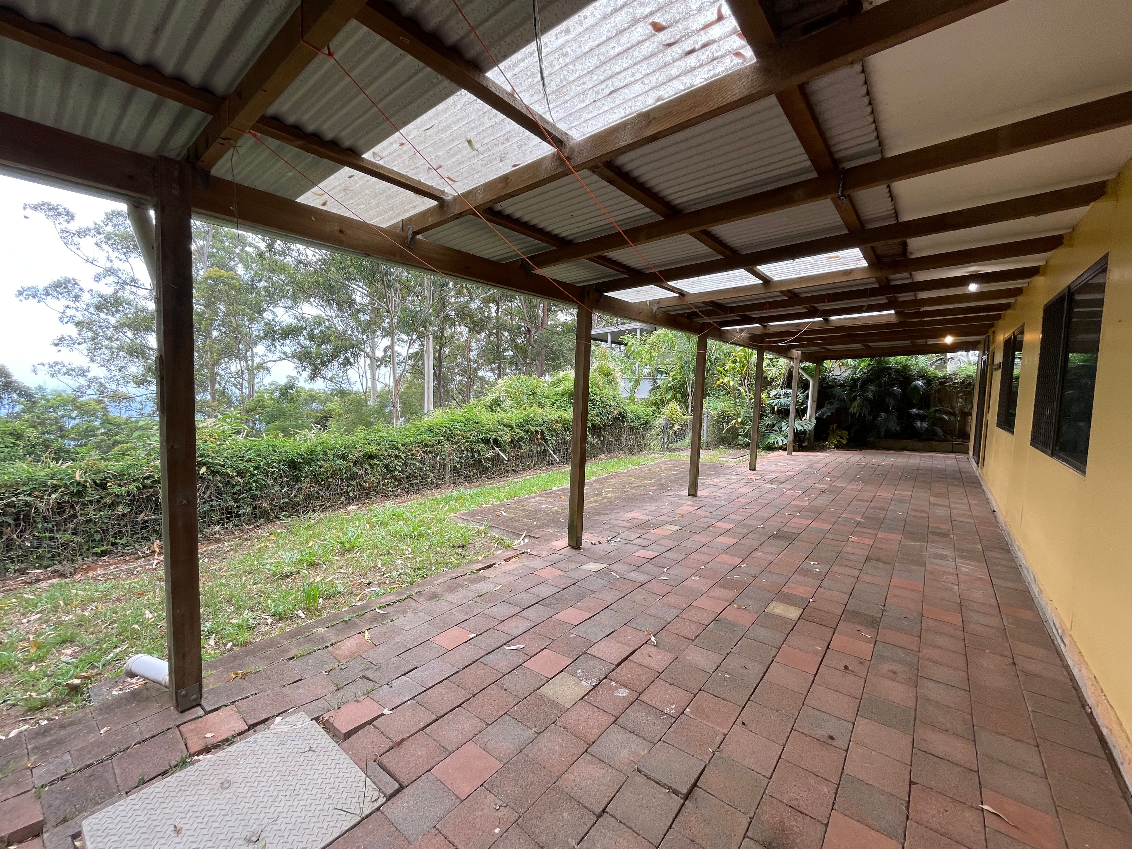 Tucked away in a country lane is an opportunity to live life and enjoy the outlook. The Carport is at road level and down the stairs is where your home awaits. Featuring an open plan living and dining area. Good size kitchen with ample cupboard space and bench space. There are three good size bedrooms and another room where you can have it set up as a reading room or study. The front undercover area is where you can enjoy entertaining family friends or sit and relax and enjoy the beautiful outlook of the hinterland and views of the Gold Coast. The double carport and storage room complete the picture.