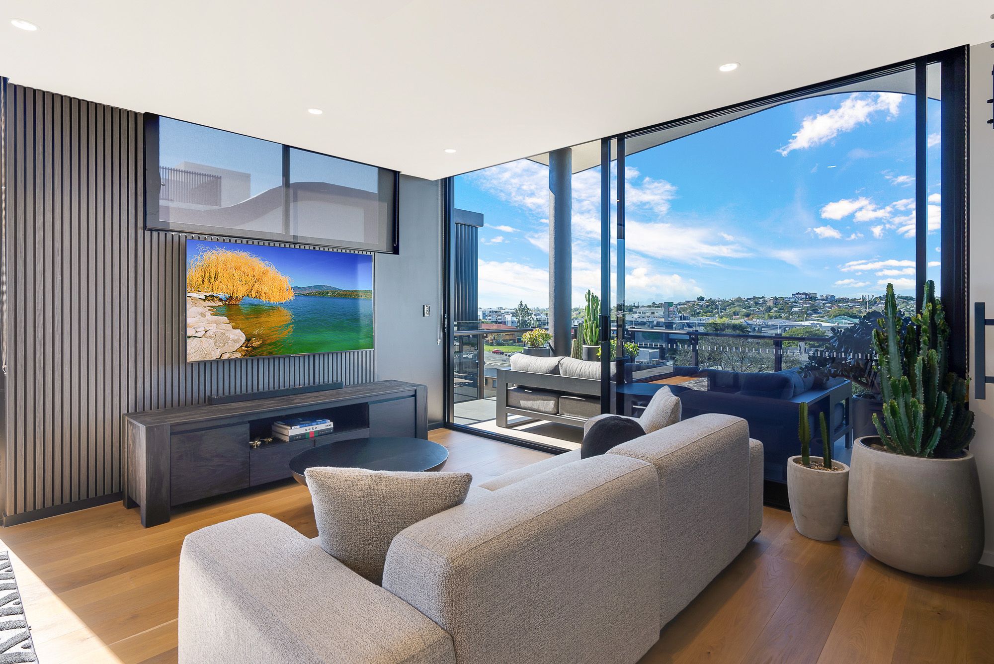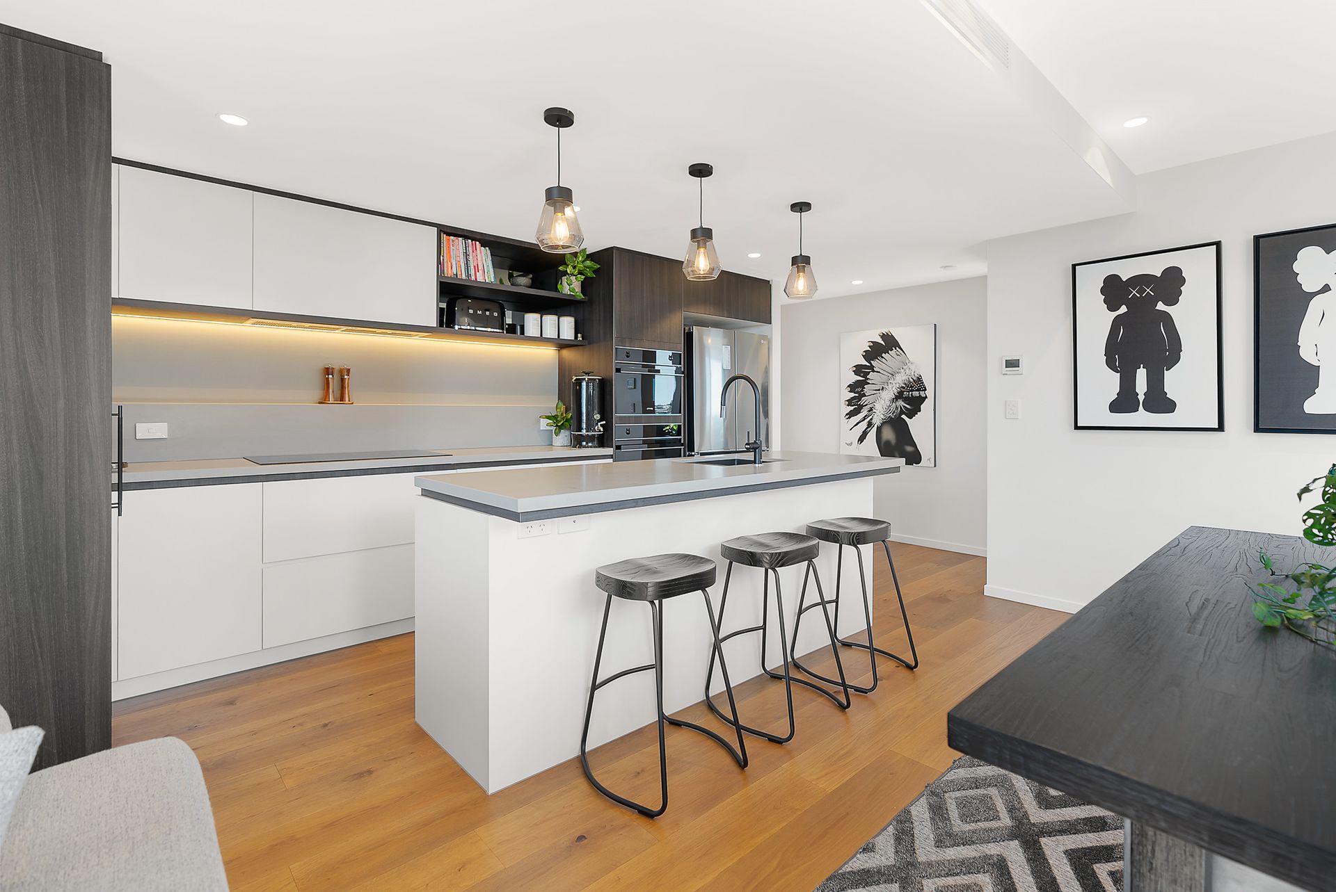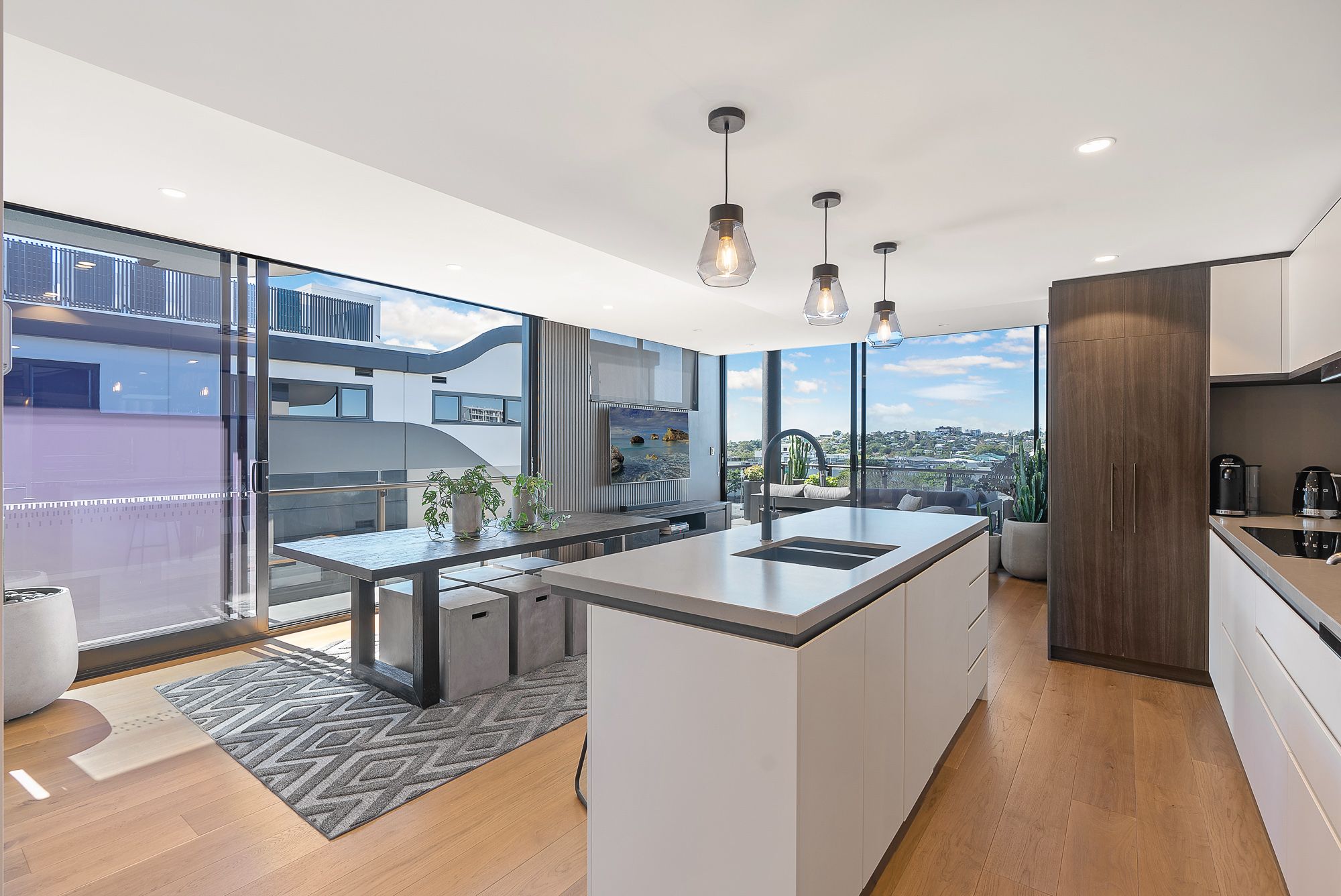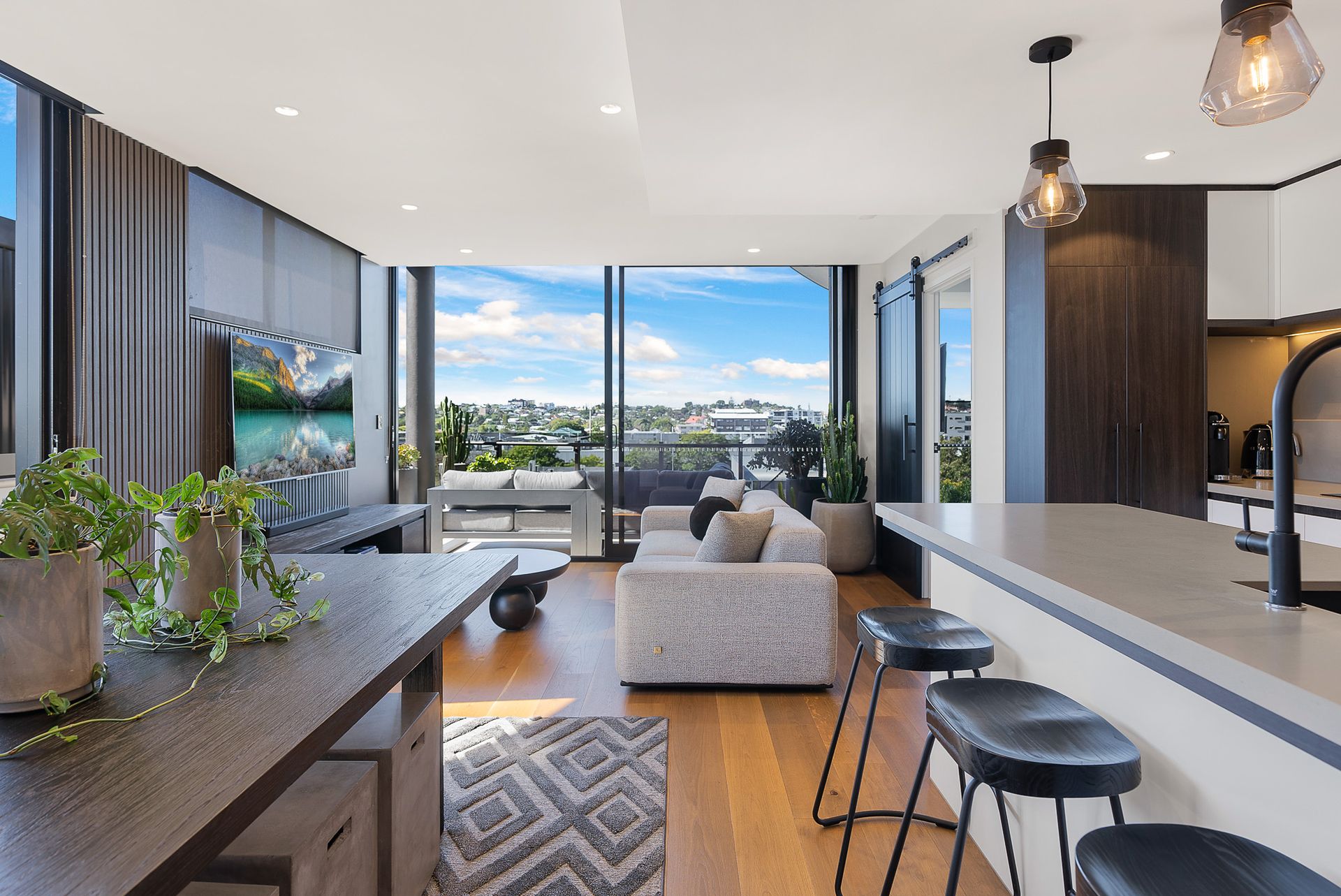 A contemporary apartment, it has a thoughtful floor plan with two bedrooms separated from the master suite by the kitchen and living areas which open onto a large covered balcony that wraps around two sides of the apartment with a prized north-easterly aspect.