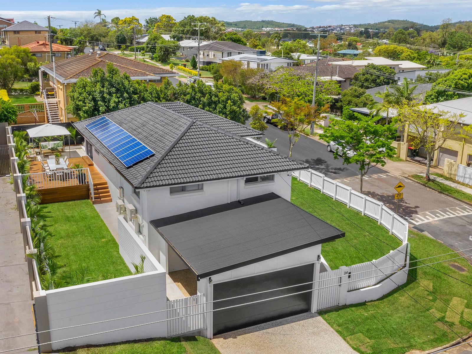 * Comfortable two story layout, separate living/dining areas across both * Private entertaining terrace overlooks fully enclosed low maintenance yard * Stylishly finished kitchen includes 40mm Caesar stone benches, stainless Meile gas appliances, butler's pantry, soft close doors and under mount lighting. * 5kw solar system * Five spacious bedrooms with built-ins, over two levels * Modern family bathroom tiled floor-to-ceiling, additional w/c * Air conditioning, plantation shutters, easycare lacquered floors * Metres from city buses, stroll to shops or quality schools * Inside the highly sort Mansfield High Catchment area * Formal living flows to front deck and rear blackbutt deck as well as paved alfresco areas * Master includes walk-in robe & ensuite with rain shower * Updated bathroom with stunning design and tiled floor-to-ceiling * Hard wood floors * Double lock-up carport, huge storage inside and out