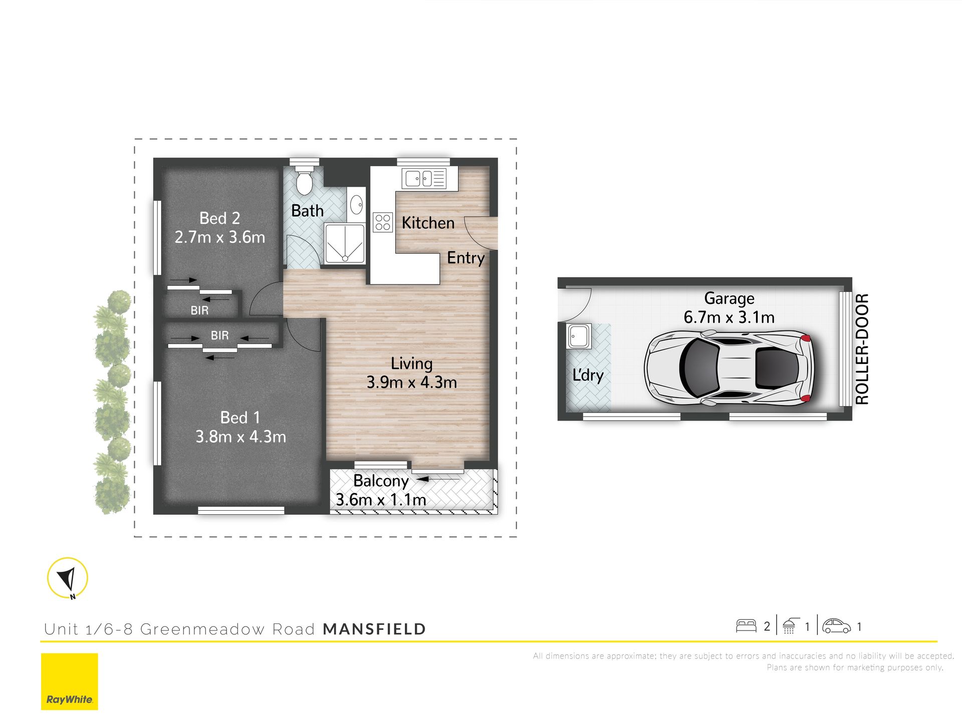 Unit 1 • Two Generous Bedrooms • One Bathroom • Large Kitchen • One Secure Parking