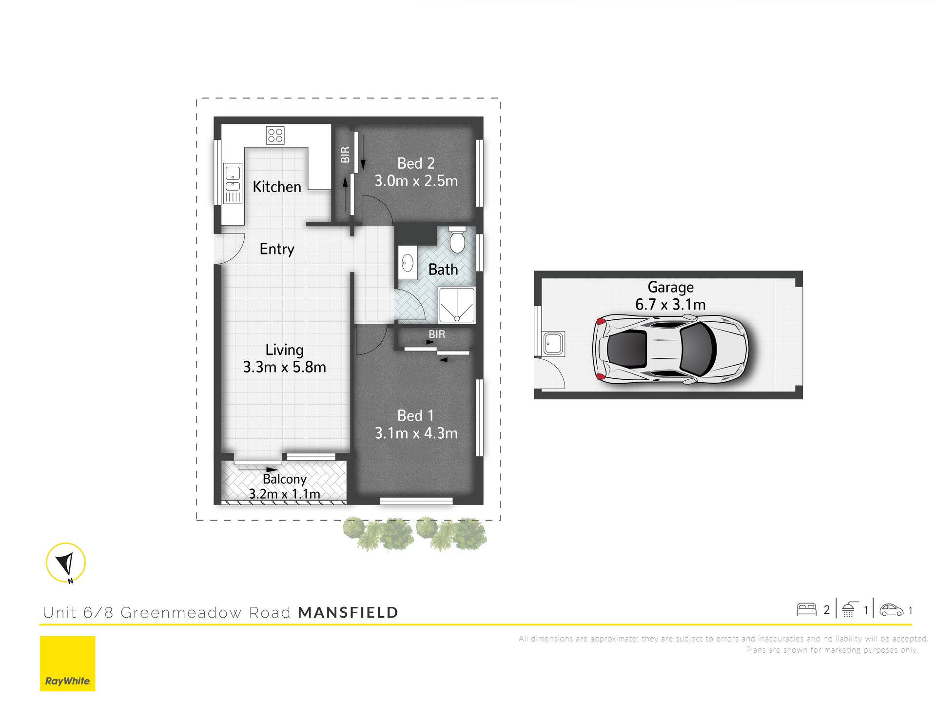 Unit 6 • Two Generous Bedrooms • One Bathroom • Large Kitchen • One Secure Parking